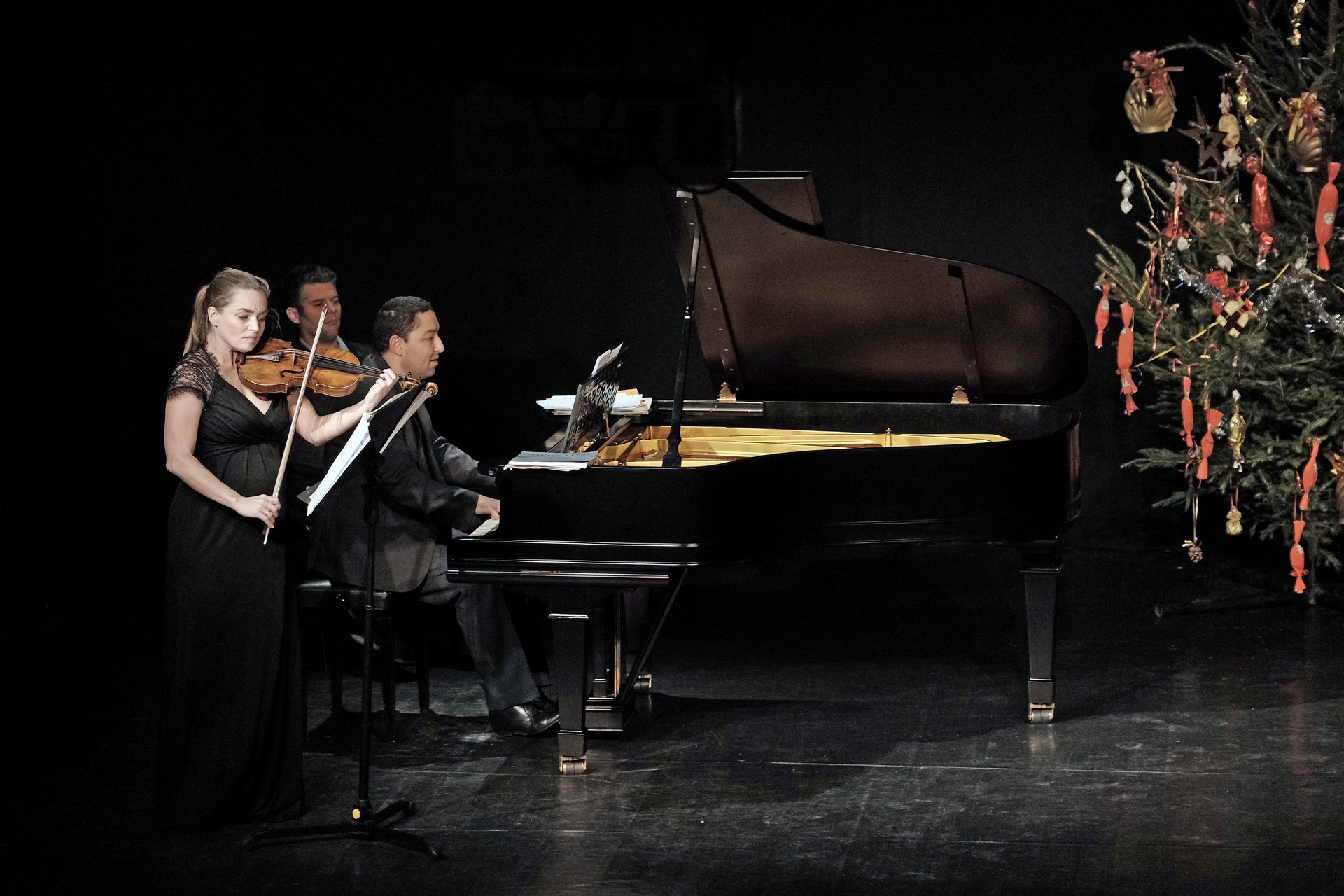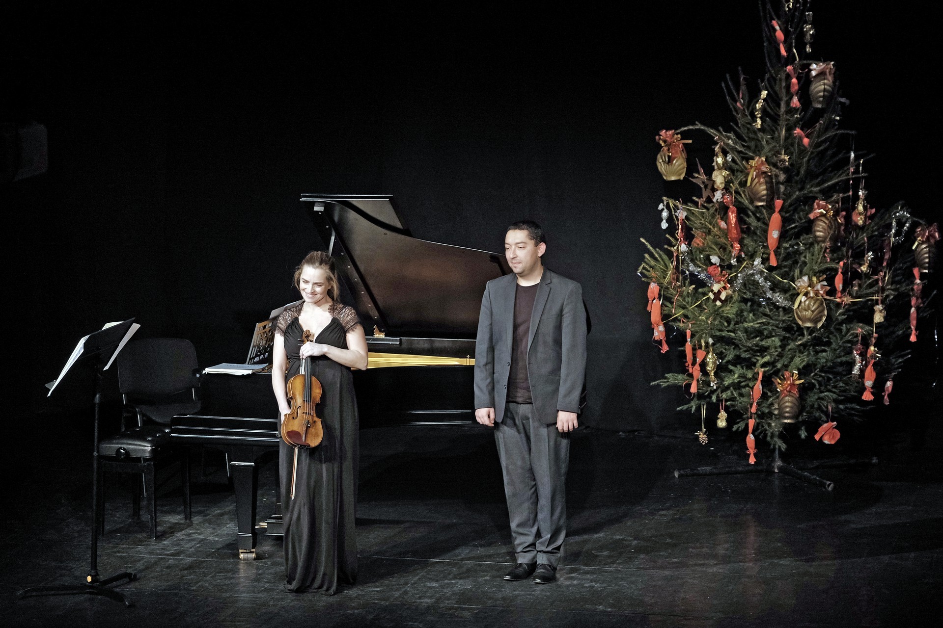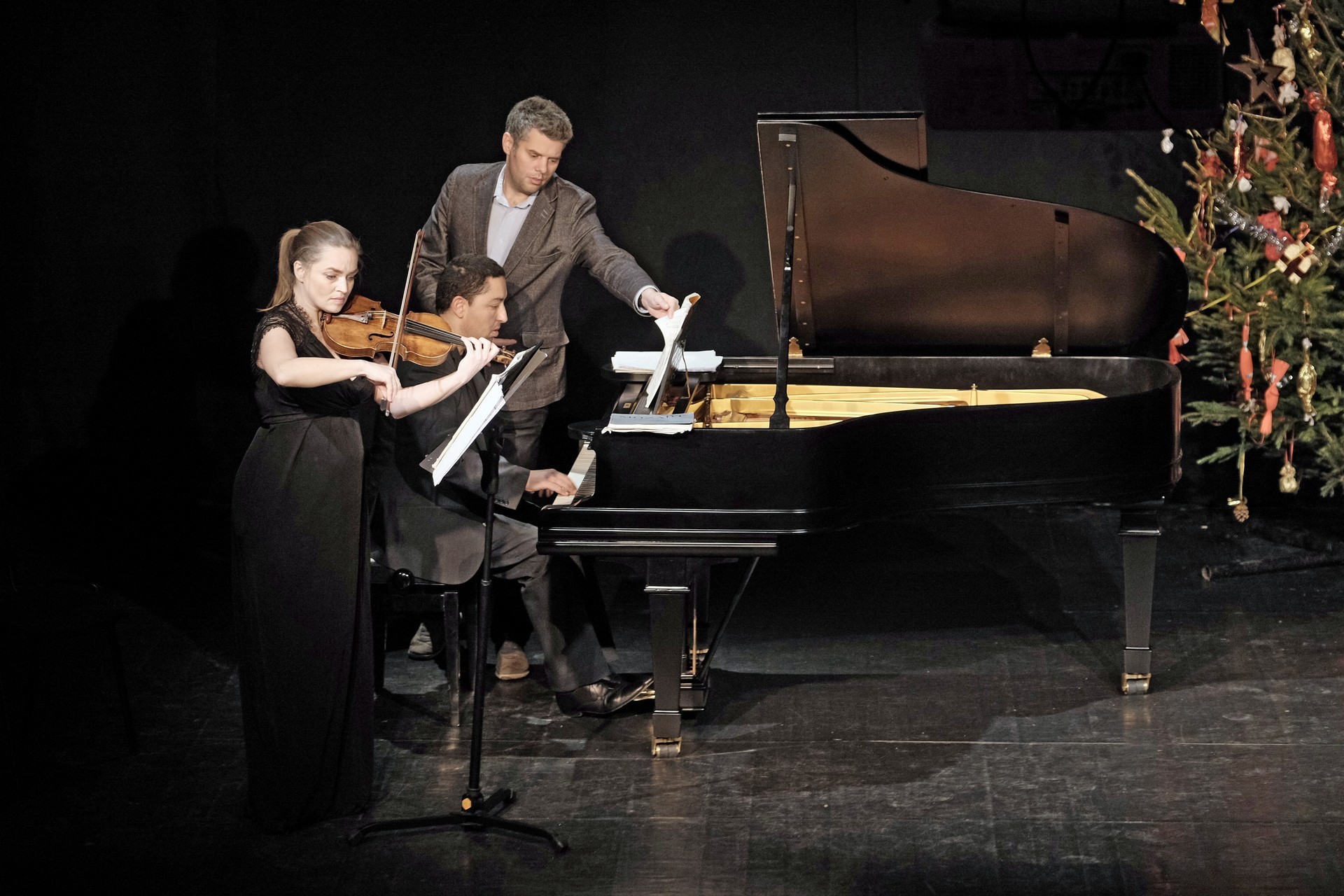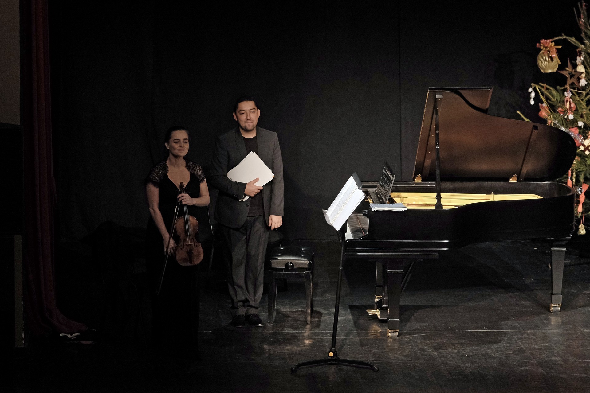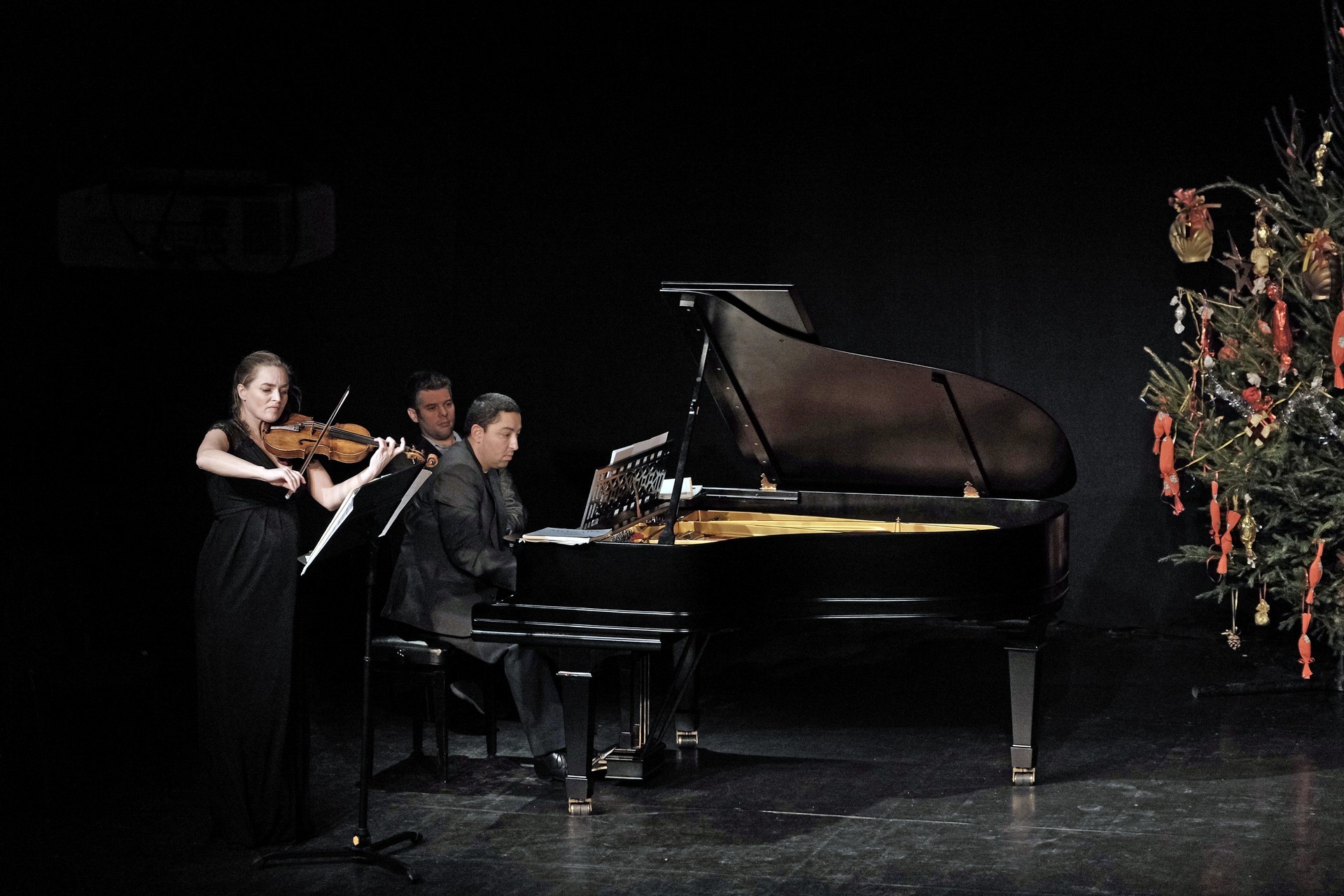 Kokas Katalin és Balog József szünet nélkül játszotta el a három darabot, amelyekből összeállt a koncert. Mozart E-moll szonátája után, Debussy Szonátája következett, végül Bartók I. szonátája zárta az előadást. Monumentális darabok követték egymást, az első kettő lágysága után, Bartók zenéje szinte disszonánsnak hatott, de a szomorkásabb hangzású dallam szép lezárást adott a páros koncertjének.