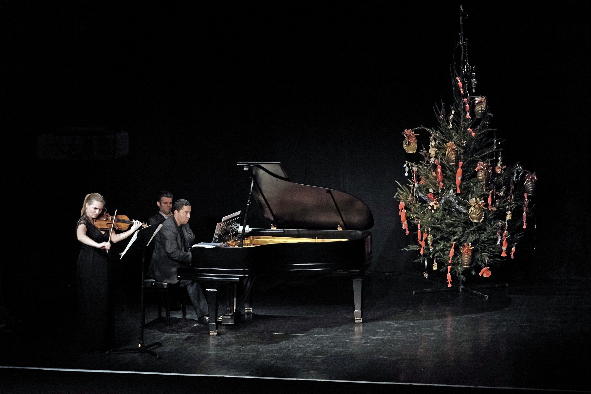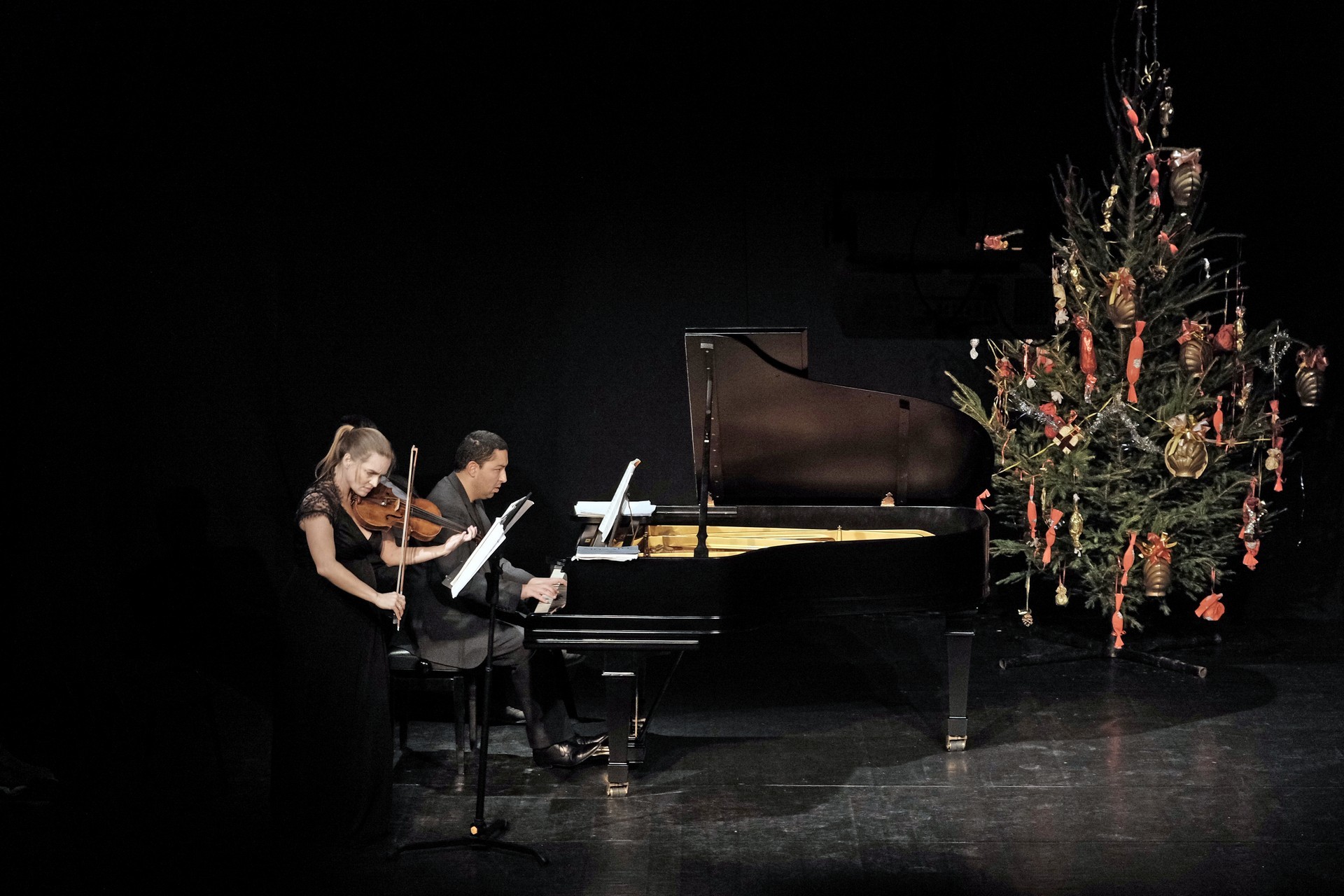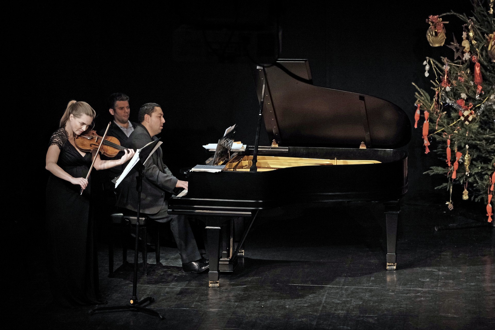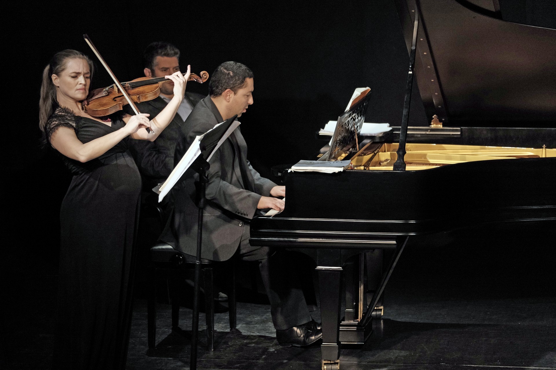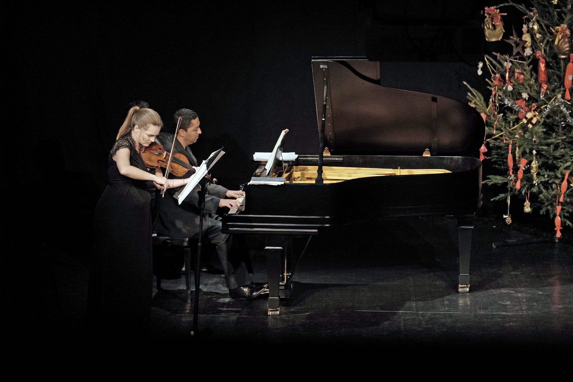 Kokas Katalin és Balog József szünet nélkül játszotta el a három darabot, amelyekből összeállt a koncert. Mozart E-moll szonátája után, Debussy Szonátája következett, végül Bartók I. szonátája zárta az előadást. Monumentális darabok követték egymást, az első kettő lágysága után, Bartók zenéje szinte disszonánsnak hatott, de a szomorkásabb hangzású dallam szép lezárást adott a páros koncertjének.