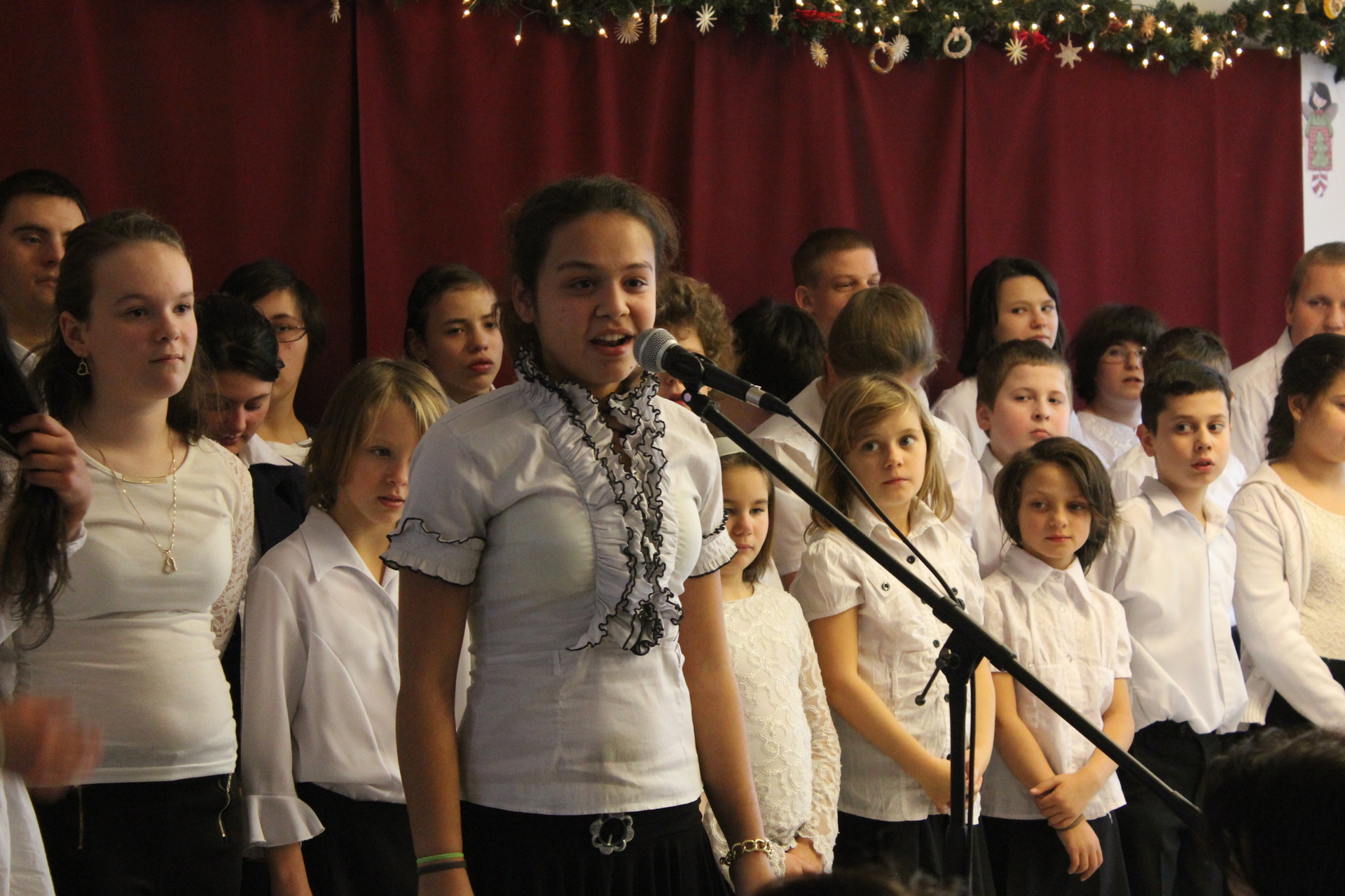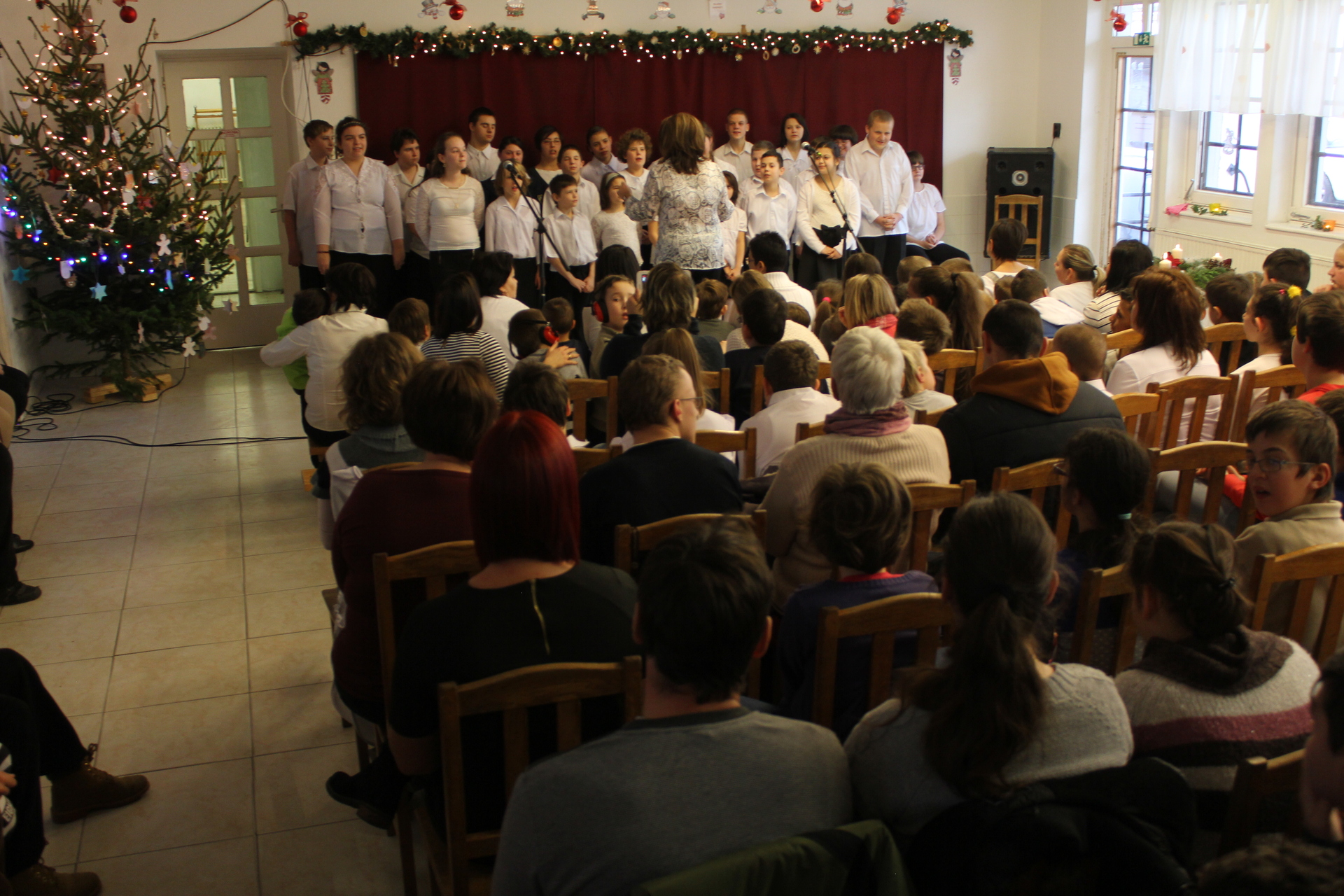 A mintegy fél órás programra legalább százan összegyűltek az iskola földszinti nagytermében, ahol a diákok gyönyörű karácsonyi dalokat énekeltek. A produkciót vastaps fogadta, a kis művészek pedig szerényen vették tudomásul a zajos sikert.