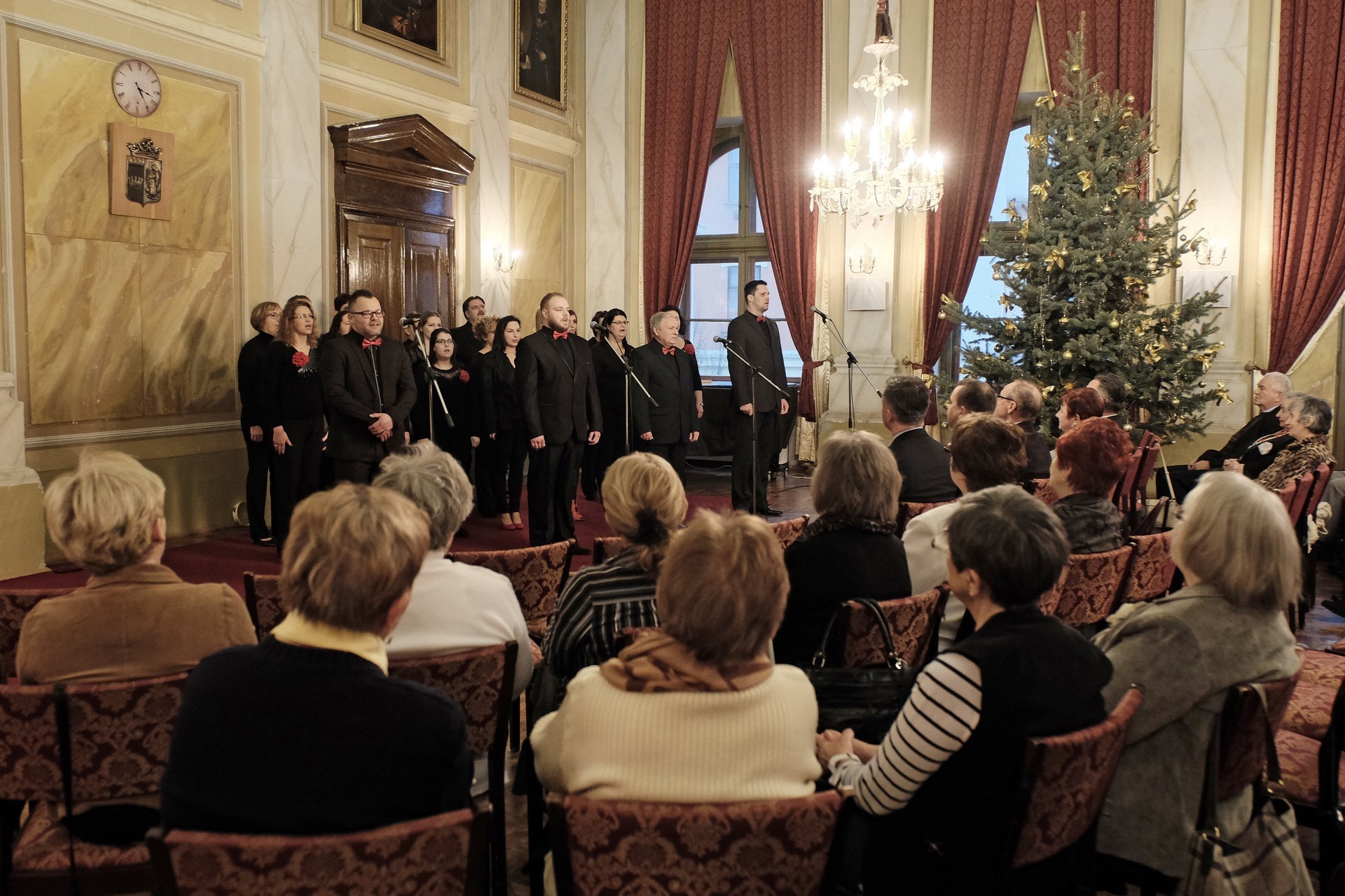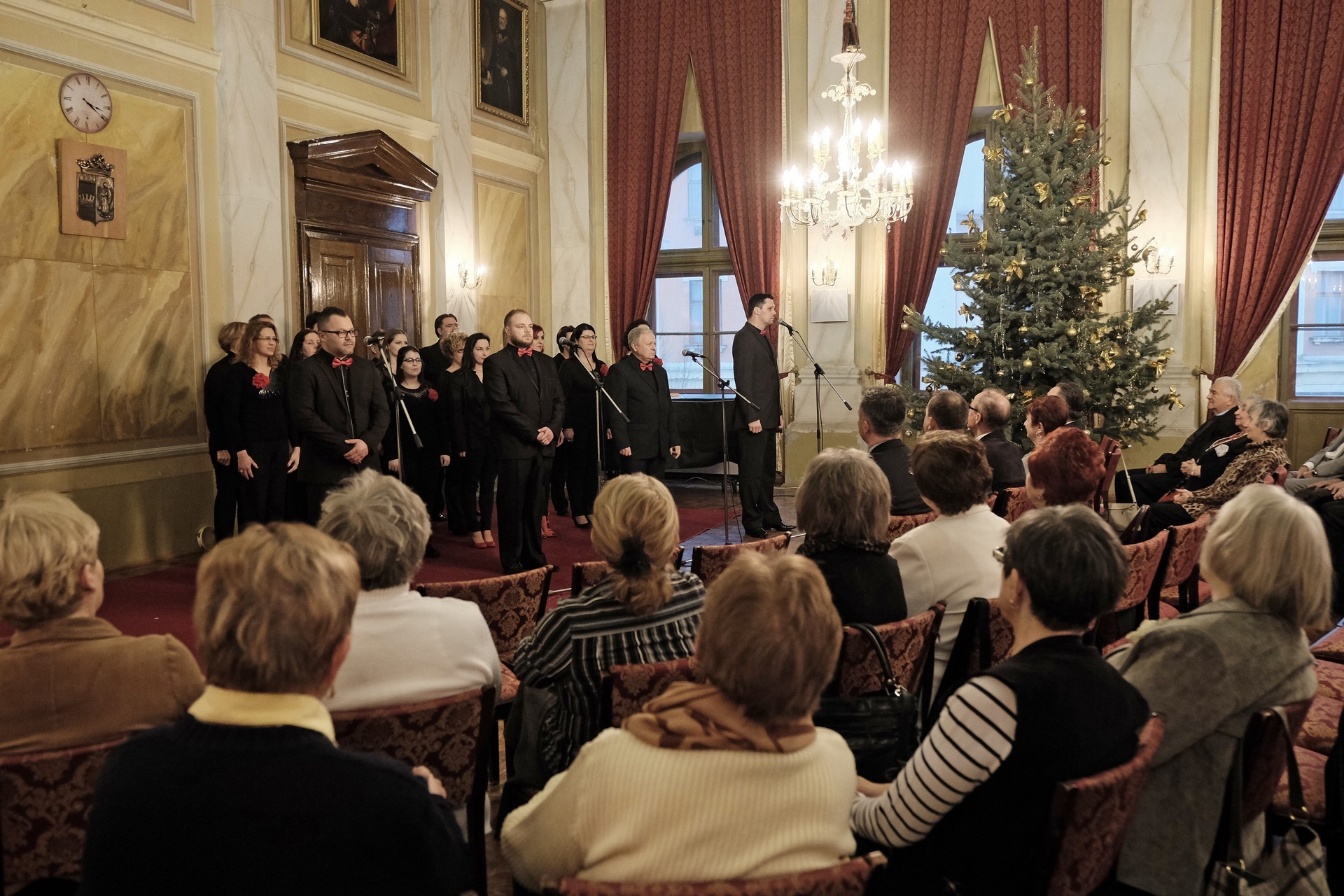 A polgármester Pilinszky János gondolataival zárta köszöntőjét, majd kifejtette, hogy ezúttal nem óvodások vagy iskolások adnak át ajándékként egy előadást, hanem a polgármesteri hivatal dolgozói. Az intézmény munkatársai versekkel és karácsonyi dalokkal szórakoztatták a közönséget, a nyugdíjasok az előadás végén vissza is tapsolták őket egy plusz szám erejéig.