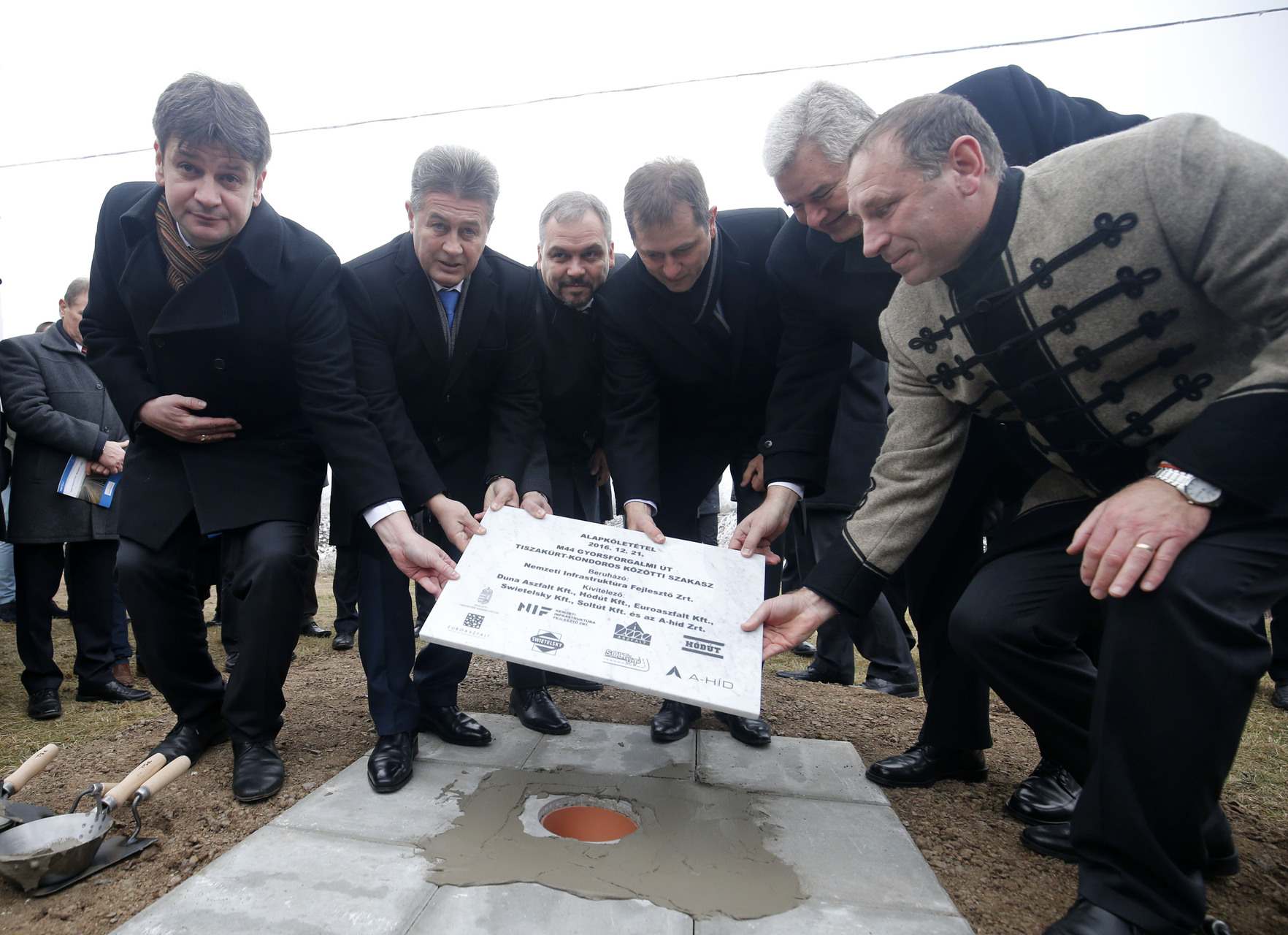 Letették az M44-es gyorsforgalmi út Tiszakürt és Kondoros közötti szakaszának alapkövét december 21-én. A 144 milliárdos beruházás várhatóan 2019 harmadik negyedévére készül el.