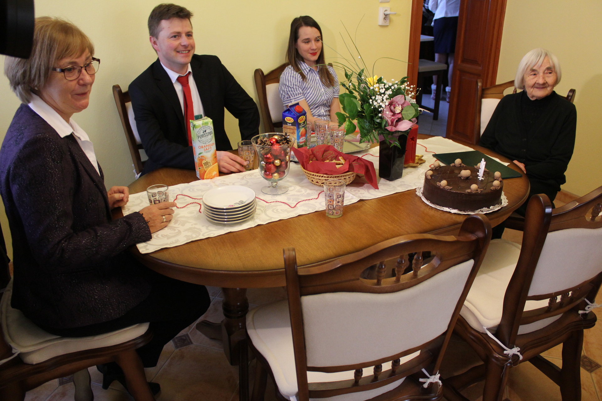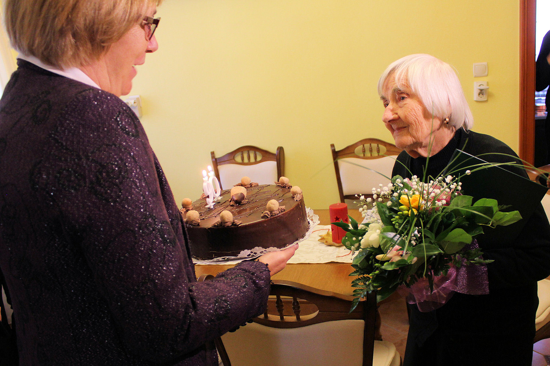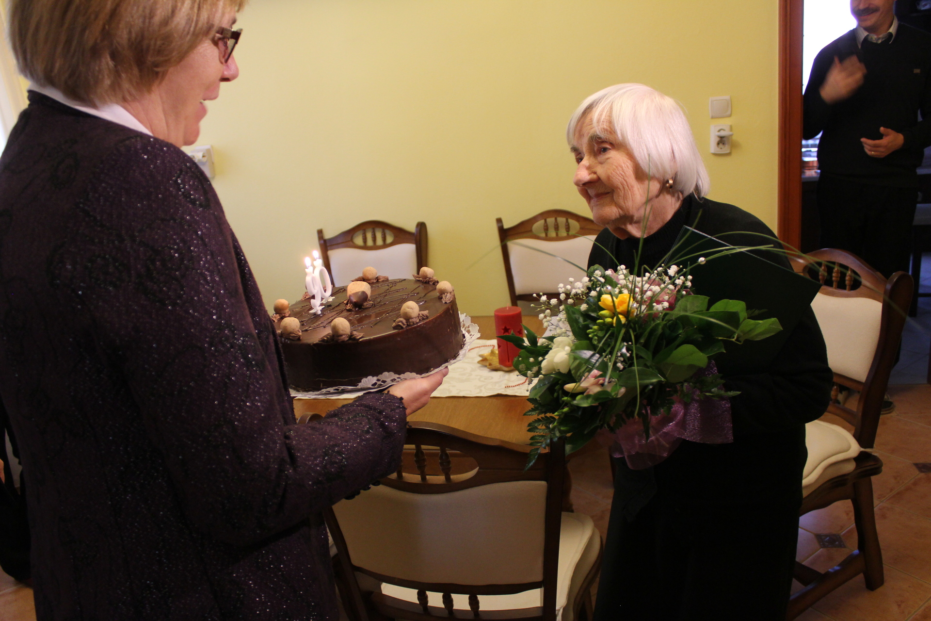Csáki Dezsőnéhez látogatott el a gyulai városvezetés december 27-én. Az idős hölgy családja körében ünnepelte 90. születésnapját, és ajándékait Alt Norbert alpolgármester és dr. Varga Erzsébet tortával, virágcsokorral és ünnepi emléklappal egészítette ki.