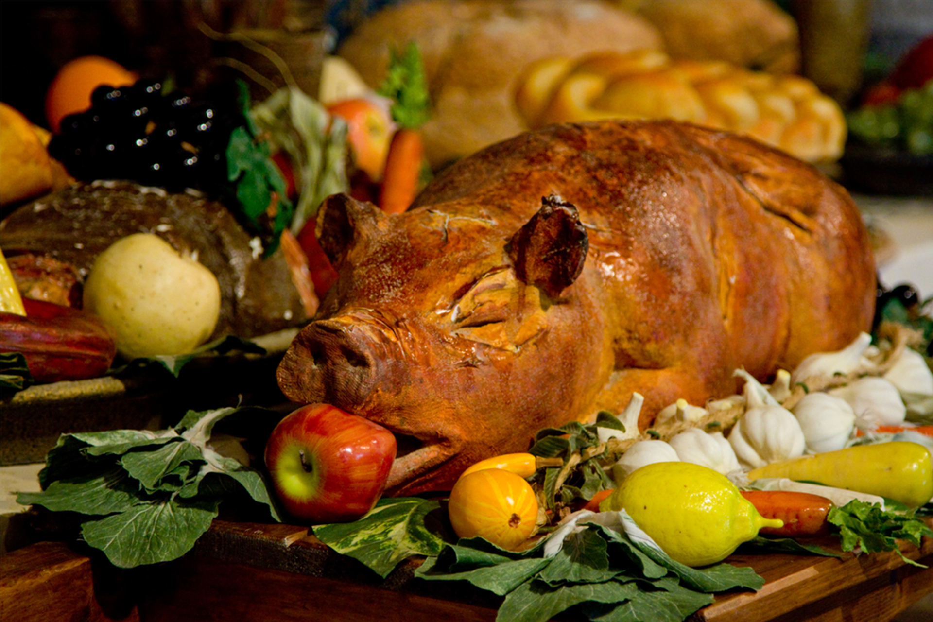 Az év utolsó napján fontos szerepet kapnak az ételek. Leggyakrabban malacsült kerül az asztalra, hiszen a négylevelű lóherét tartó malac az egyik legfontosabb szerencseszimbólum. Tilos a csirke és a pulyka fogyasztása, mert ezek az állatok – ahogy eleink tartották – „elkaparják” a szerencsét. A hallal is jobb óvatosnak lenni! Folyó menti vidékeken ugyan szerencsét hoz (ahány pikkely, annyi pénz), máshol viszont baljós állat, hiszen vele elúszik a háziak szerencséje. Úgy tartják, aki az újév első napján apró szemes ételt, lencsét vagy babot fogyaszt, az sok pénzt várhat az újévben.