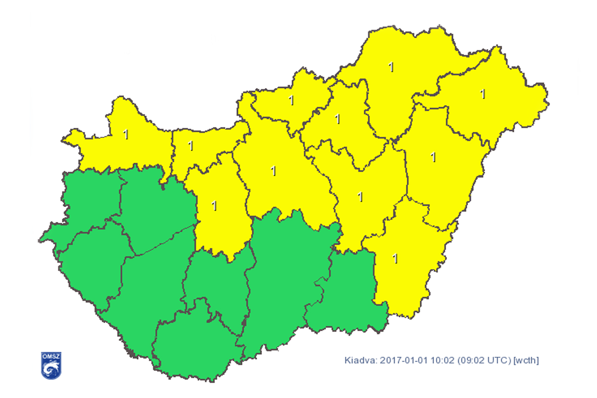 Figyelmeztető előrejelzést adott ki ma Magyarország területére hétfői éjfélig (2017.01.02.) az Országos Meteorológiai Szolgálat.