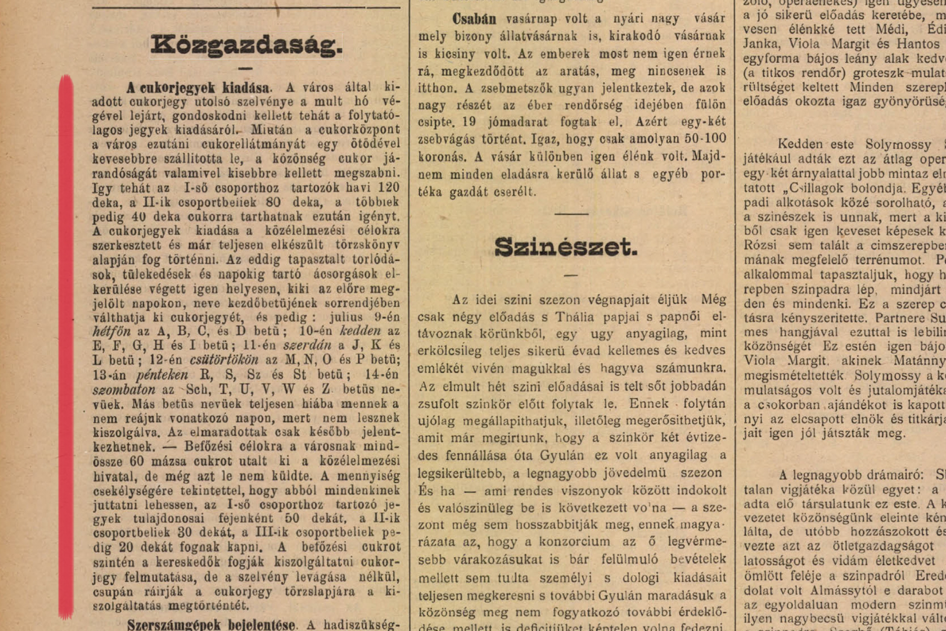 Időutazás Gyulán – 100 évvel ezelőtt kezdték el a cukorjegyek kiosztását