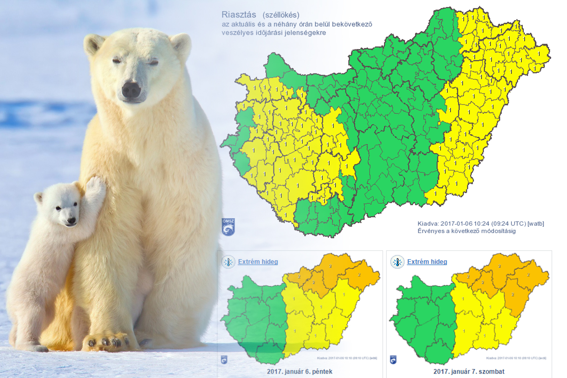 Ma a Dunántúl nyugati felén, illetve a Tiszántúlon 60–90 km/h-s széllökések kísérhetik az északias irányú szelet. A 80–90 km/h körüli maximális széllökések napközben valószínűbbek. Szombaton már mérséklődni kezd a szél, de 70 km/h körüli széllökések még a Dunántúlon és északkeleten előfordulhatnak. Északkeleten, keleten a viharos szél hordhatja a havat.