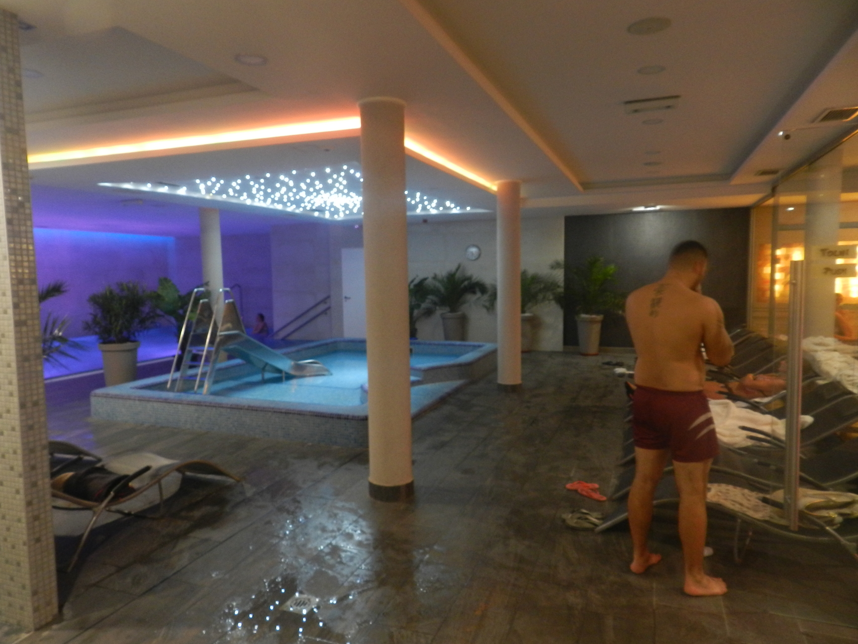 A december 30-i alkalommal két finnszaunás és egy gőzkabinos felöntést izzadhattak végig a Munkácsy Hotel vendégei. Az első szeánszon egy édes és egy fanyar illat, az ylang-ylang és a teafa találkozott, zárásképpen pedig egy erdei gyümölcs-borsmenta keverék került a kályhára. A gőzkabinban olívaolajas sóval dörzsöltük be a bőrünket, amely agresszív bőrradírként hatott, az olaj E-vitamin-tartalma pedig feszesíti a bőrt. Az utolsó felöntésen a karácsonyi illatok domináltak: a keverékben volt sör, szegfűszeg és narancs.