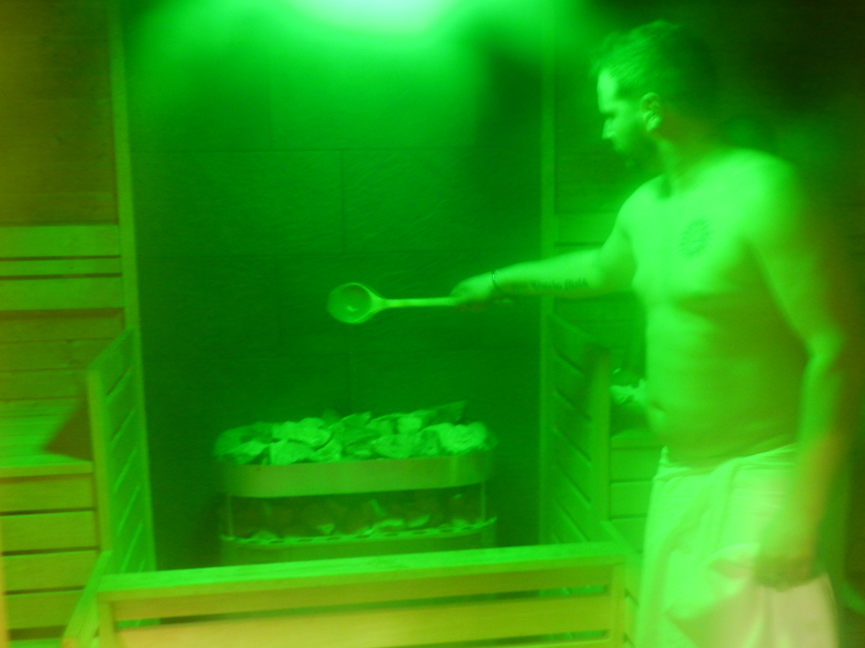 A szaunamester kifejtette, hogy egy szaunamenet nyolcperces bent tartózkodással kezdődik, amelyet a legjobb törökülésben vagy fekvő pozícióban tölteni, hogy a testünk egy szinten melegedjen. Ezután öt percet a szabadlevegőn kell töltenünk, majd újabb tíz-tizenkét perces menet következik, ugyanezekben a pozíciókban, amely után már zuhannyal is hűthetjük a testünket. Az utolsó etapban már víz is éri a kályhát – az ilyenkor keletkező gőzlöketet a finn nyelv löyly-nek, azaz „a parázs leheletének” nevezi –, amely során vízgőz képződik, amely a testünkön csapódik le.