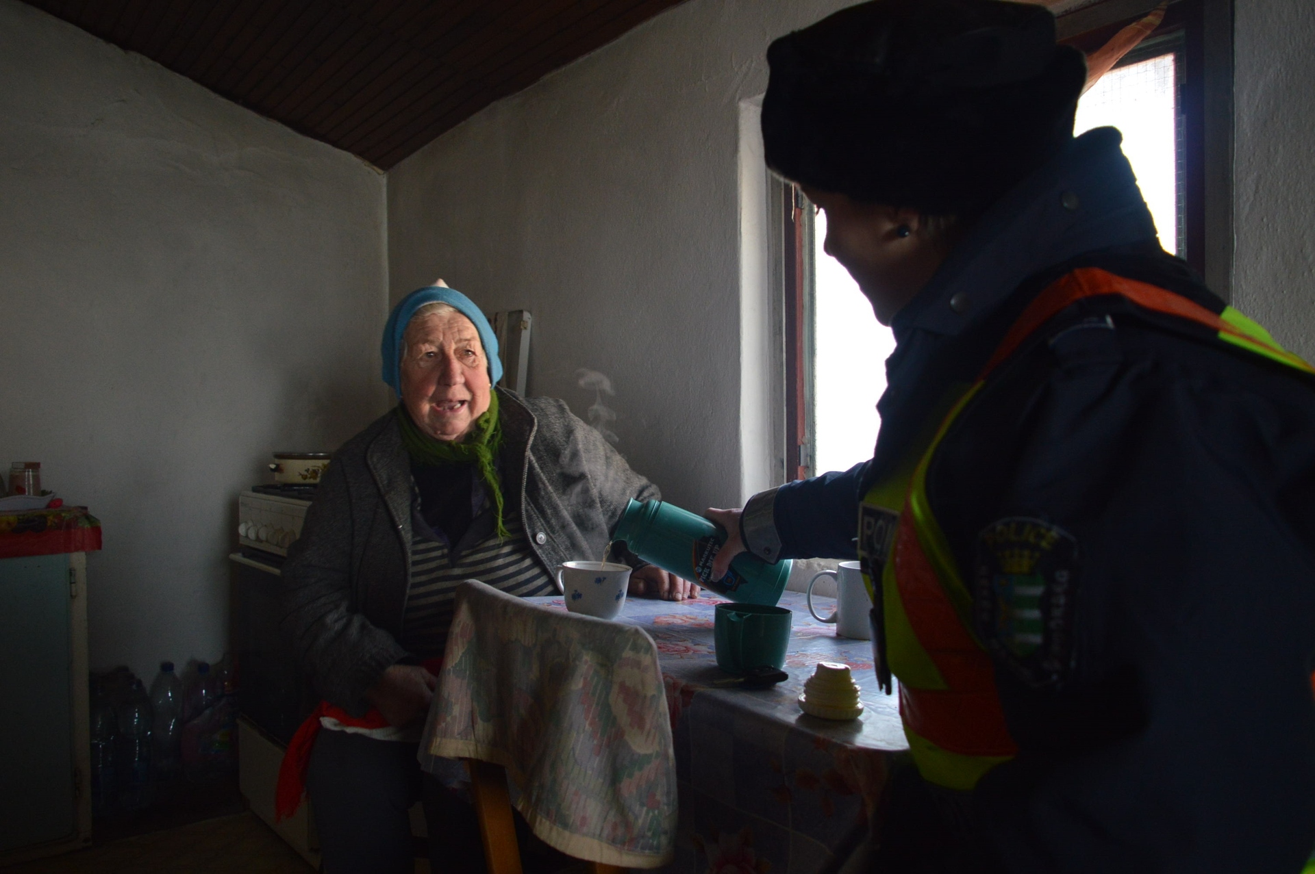 A rendőrök a leghidegebb napokon a települések központjaitól távol eső tanyákon élő időseket is felkeresnek. Az Orosházi Rendőrkapitányság egyik rendőre január 10-én délelőtt is meglátogatott egy idős nőt. Meleg teával kínálta és arról kérdezte, hogy van-e szüksége segítségre.