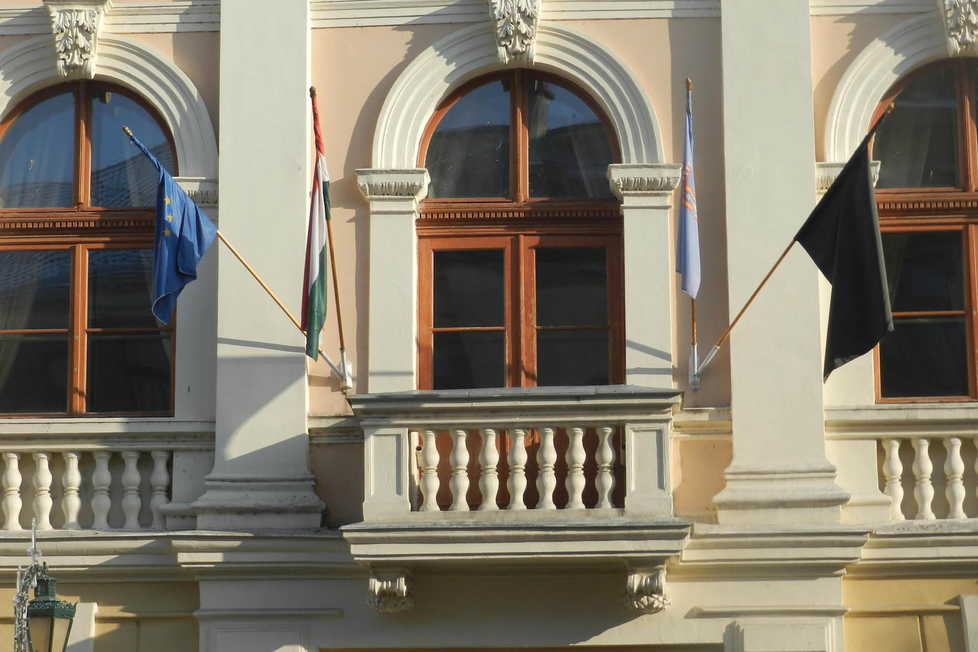 fekete zászló a városházán
