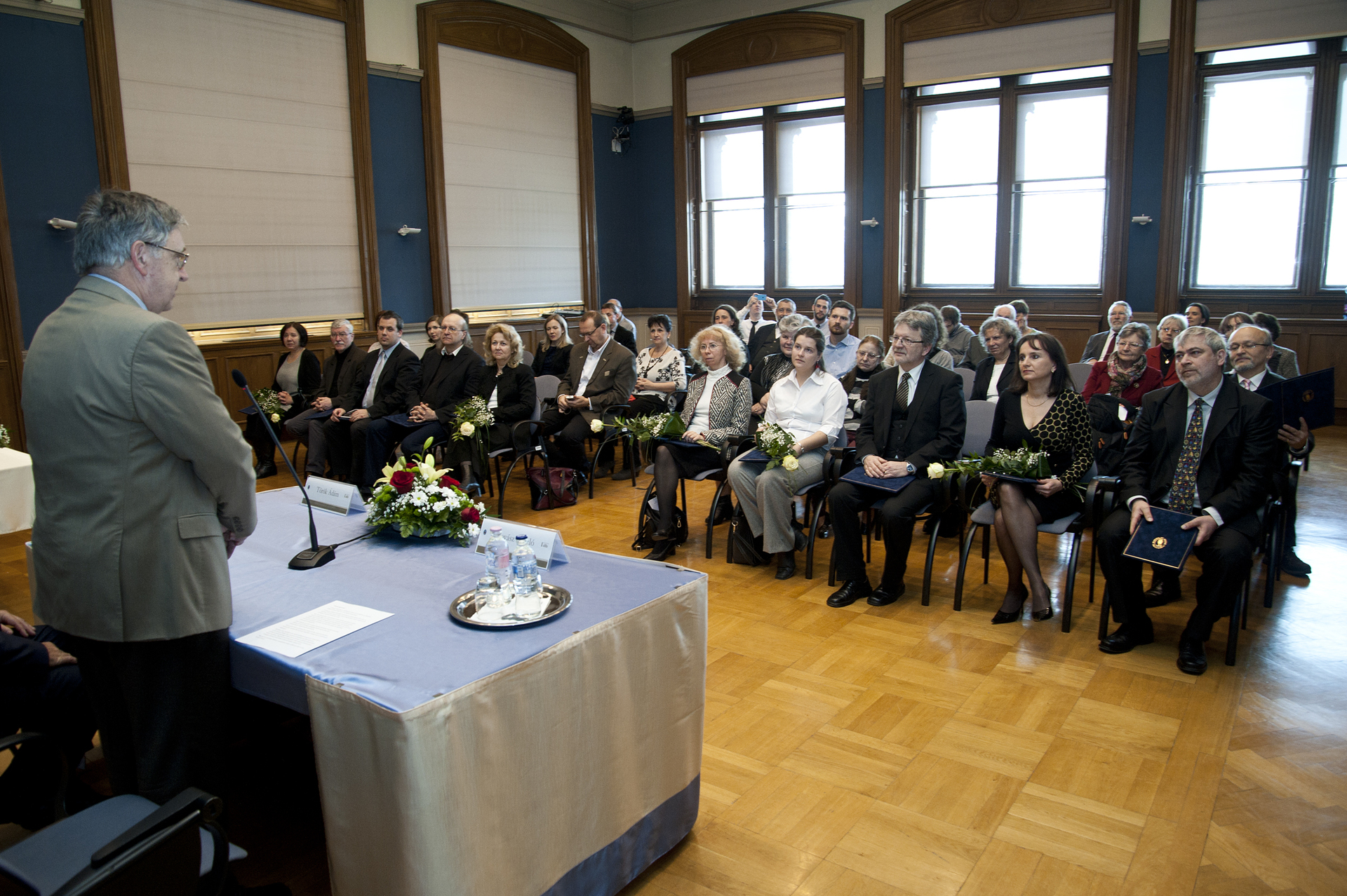 az MTA Székházában Lovász László elnök és TÖRÖK ÁDÁM FŐTITKÁR adta át Kereskényi Miklósnak a kutatói díjat