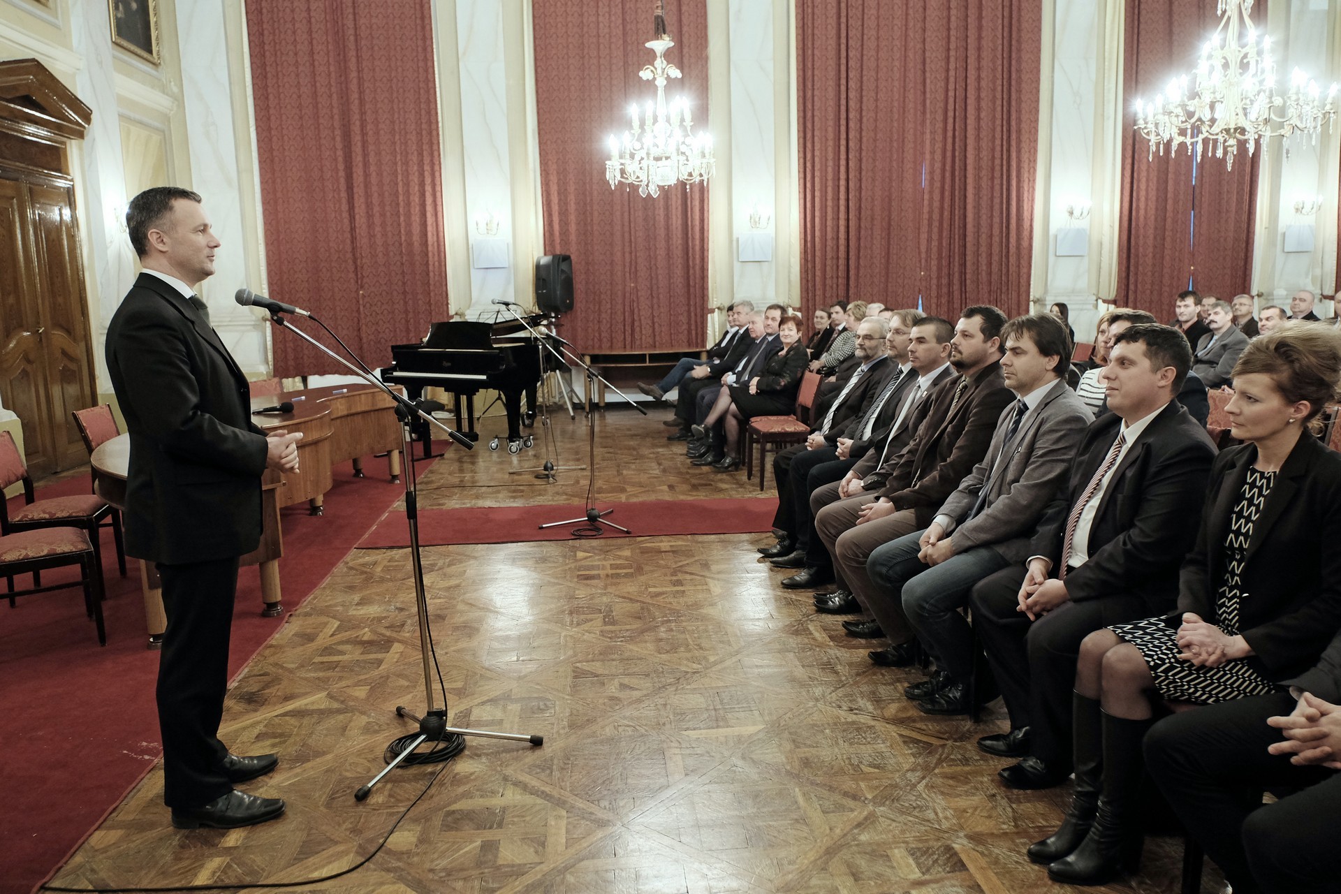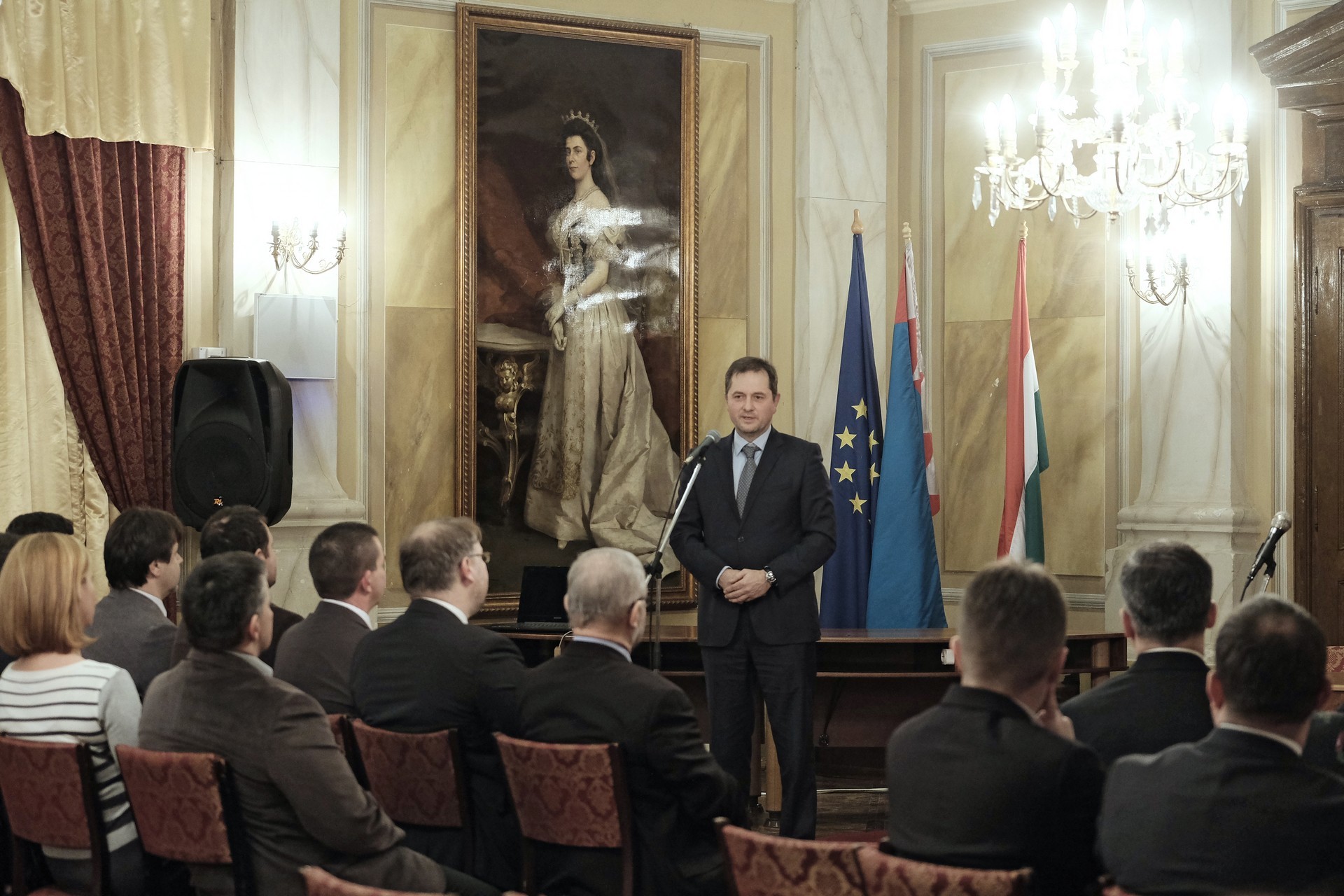 A társaság tagjait és partnereit dr. Görgényi Ernő köszöntötte a gyulai városházán