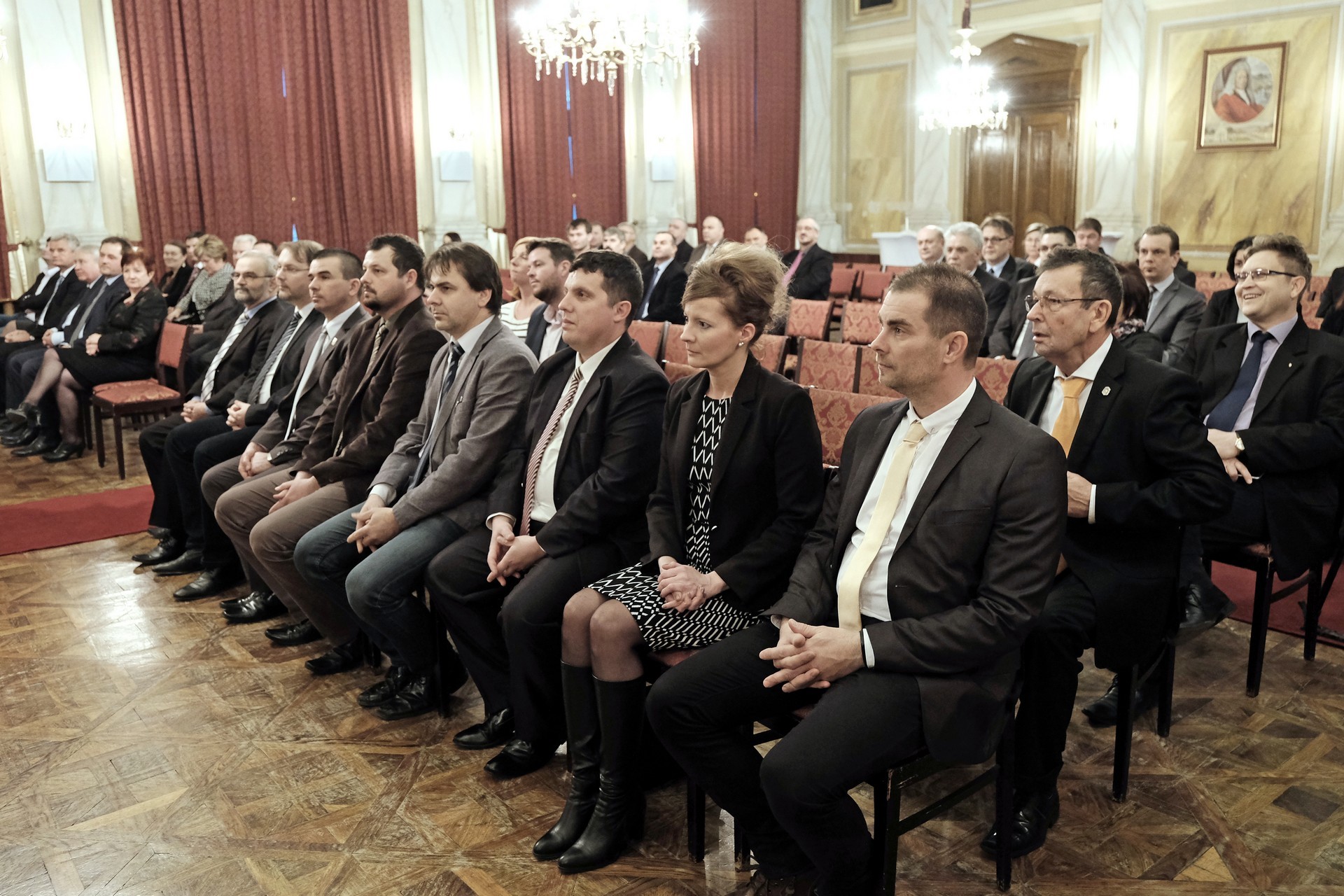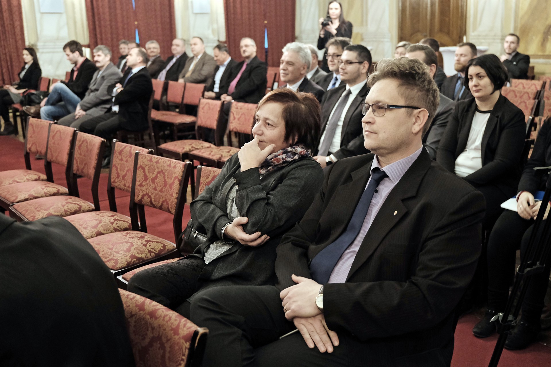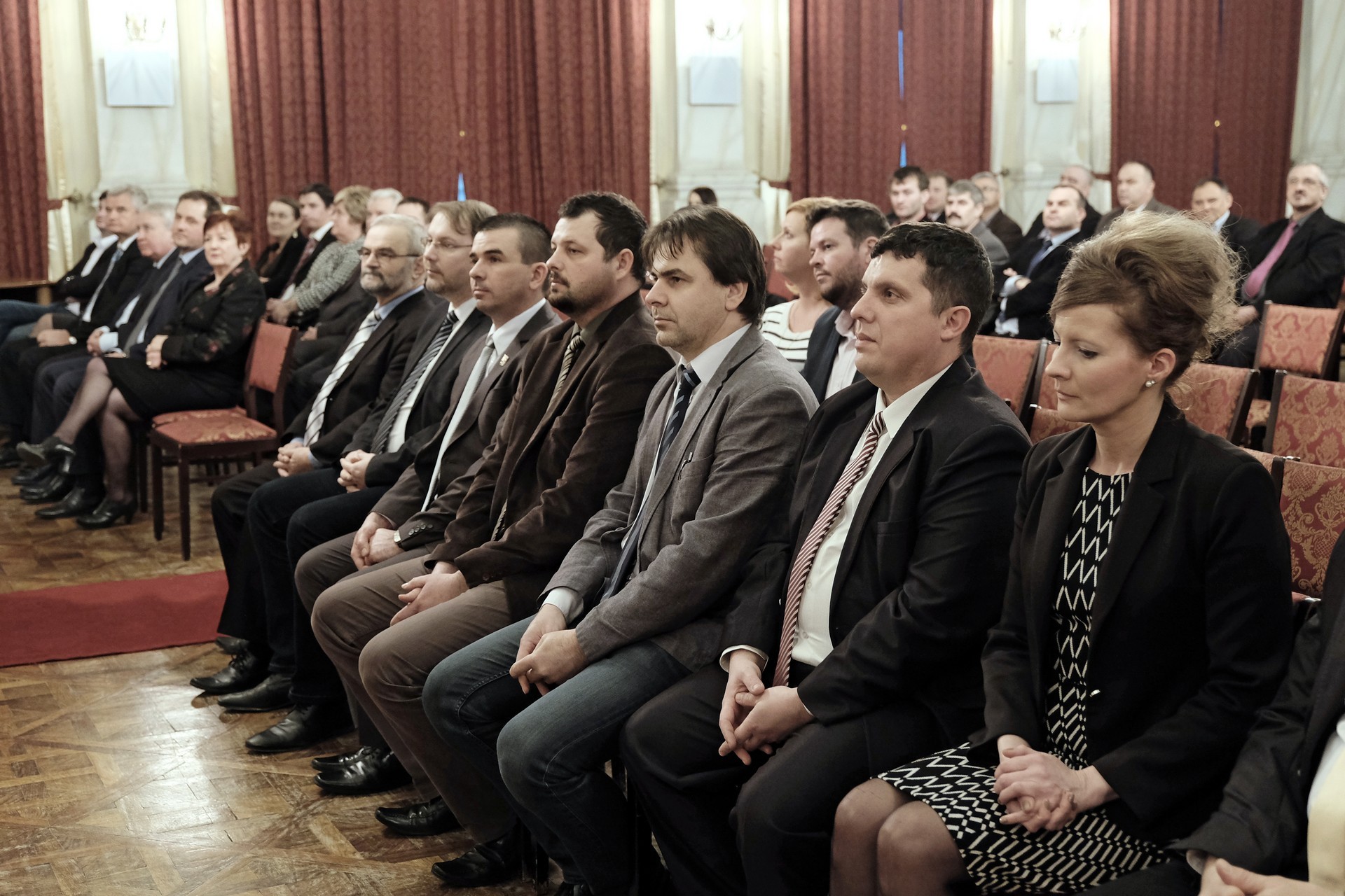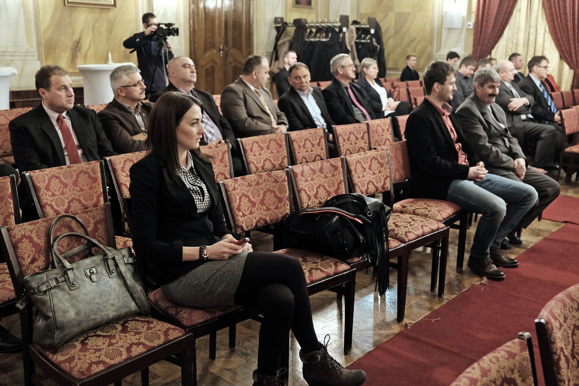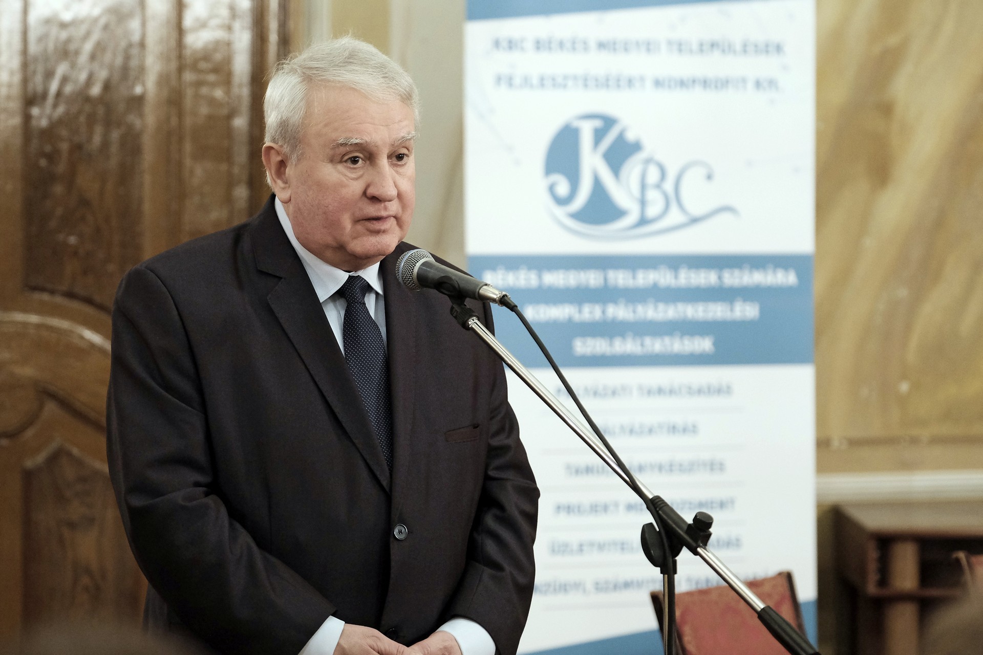 – Megtiszteltetés és bizonyos értelemben szimbolikus, hogy a díszteremben lehetünk ma – fogalmazott dr. Görgényi Ernő. – A Gyulai Városháza egykor a megyeháza volt, idén pedig 140 esztendeje lesz, hogy elkészült ez a díszterem, amelynek a Békés vármegyei települések vannak a mennyezetére festve. Mi, akik itt vagyunk, hiszünk a megyei összefogásban, hiszen mi, akik a KBC-t alkotjuk, szabad akaratunkból egy olyan együttműködési szervezetet hoztunk létre, amelynek az a célja és küldetése, hogy erőforrásainkat egyesítve írjunk pályázatokat, az elnyert pályázatokat pedig menedzseljük településeink fejlődésének érdekében és a polgárok jólétének növelésének céljából.
