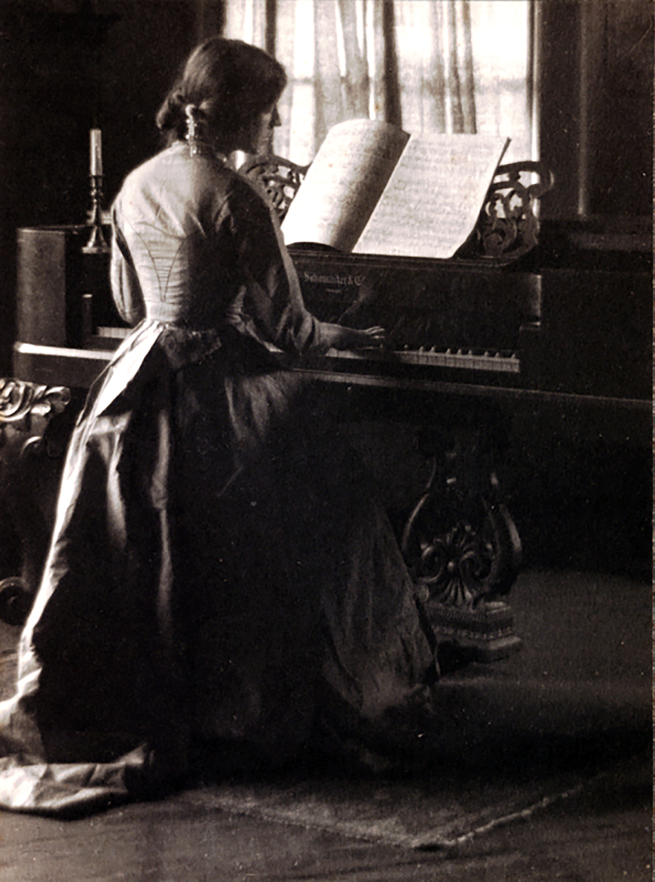 Estszürkület. A szalonban félhomály, a kályhában ég, pattog a tűz, én a zongoránál ülök, grossmama, mint szokta volt, a hátam mögött, a karosszékben. A fűző kényelmetlen, szorít és fáraszt, de klampírozok, közben beszélgetünk. Mama most sem aggódik, de visszahozná a leánykorát. Aztán elcsendesül, belefeledkezünk a parázs vöröses fényébe.