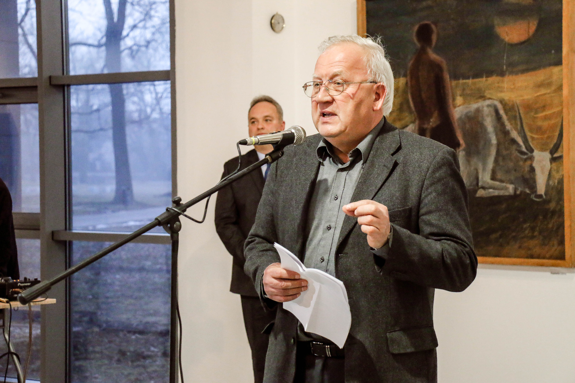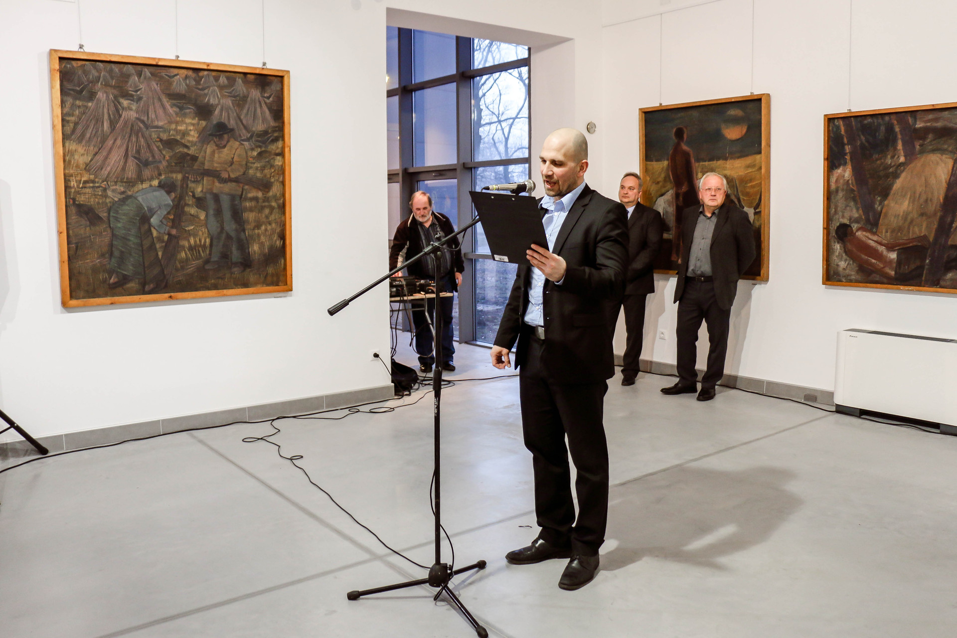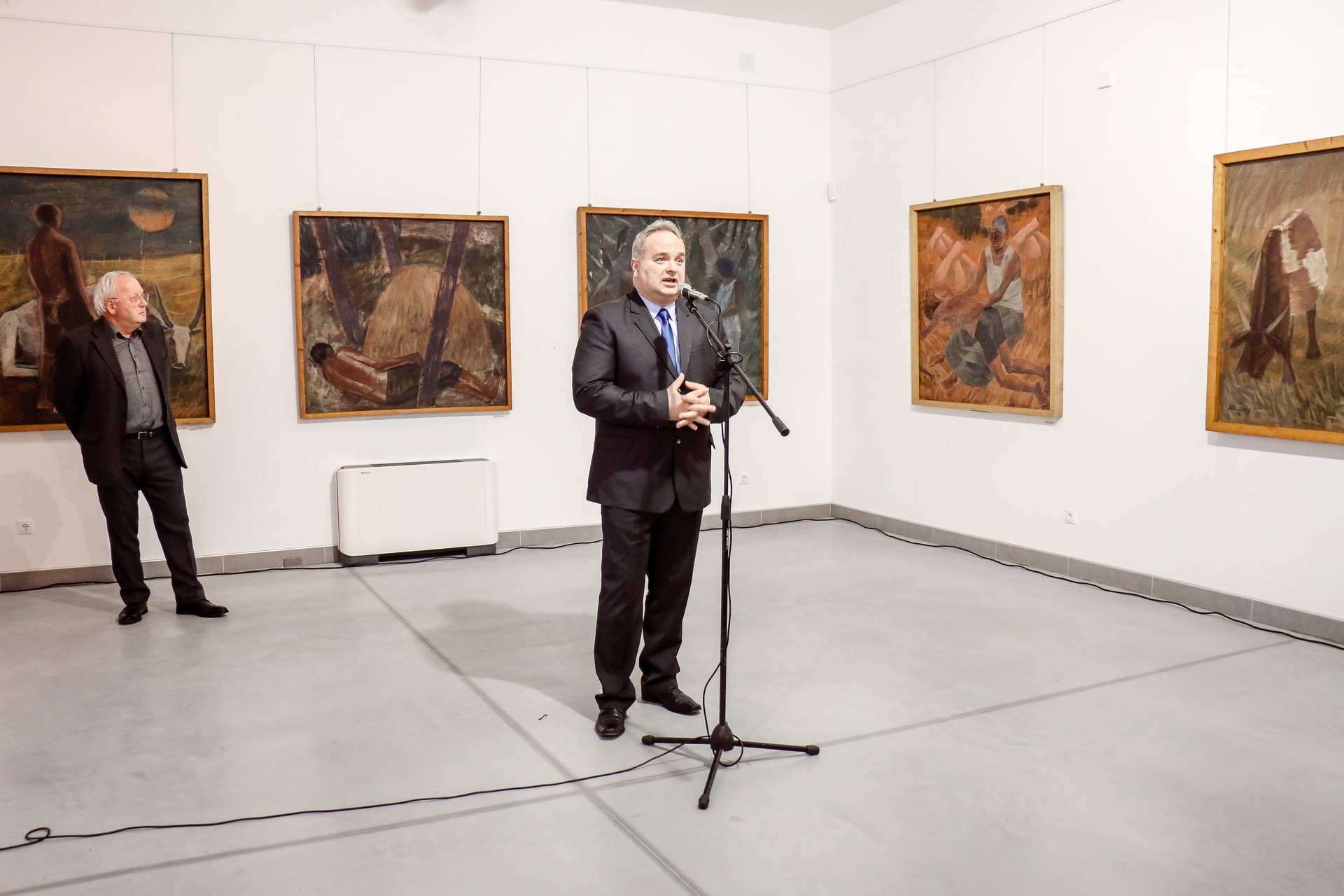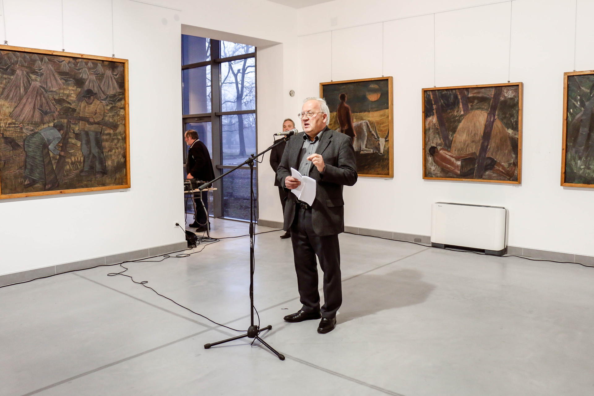 – Az emlékkiállítás keresztmetszetet nyújt Németh József monumentális életművéből – vette át a szót Szilágyi András. – Ő volt az, aki felvette a Kohán György kezéből kiesett ecsetet, de ő már nem a színkontrasztok drámai erejét, hanem a hétköznapok sorsközösség-vállalását és a paraszti lét múlóidejű állandóságát érvényesítette. Ismert, hogy a magyar nemzeti képzőművészet történeti meghatározottsága, jellegadó karaktere a hely szellemére és egyedi vonásaira utal. Ezért az alföldi festészetet is a maga társadalmi, történelmi kontextusában szükséges vizsgálnunk.
