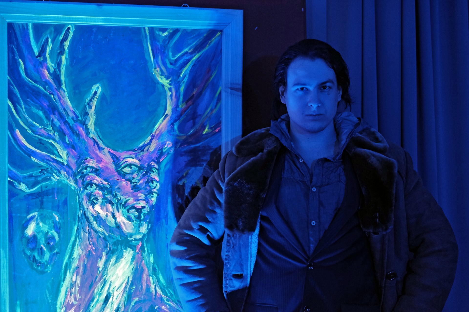 A gyulai alkotó egy több szempontból is különleges tárlattal készült, ugyanis a hagyományos képek mellett ezúttal UV-reagens festményeket is kiállított, igazán egyedi élményt nyújtva a vendégek számára.
