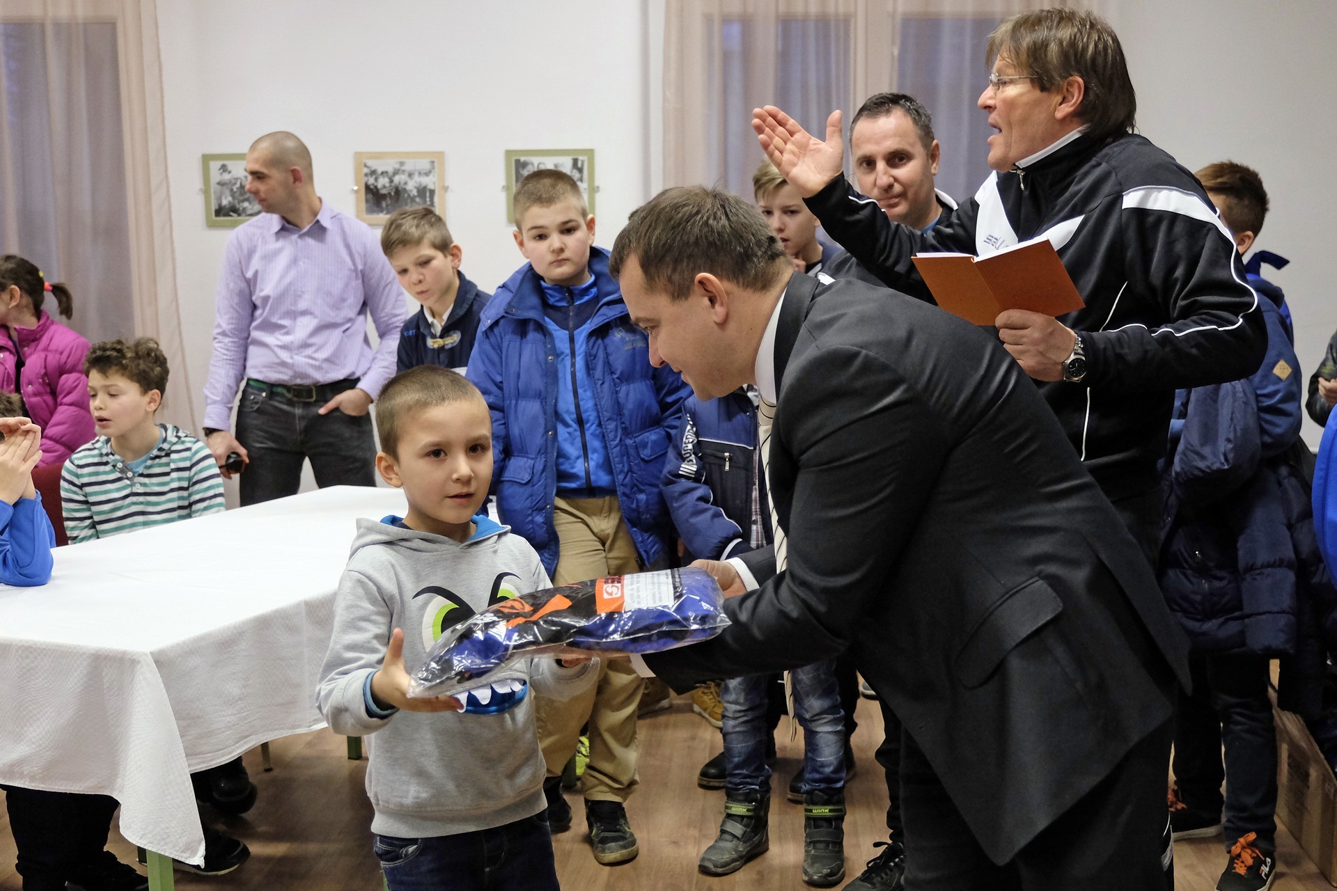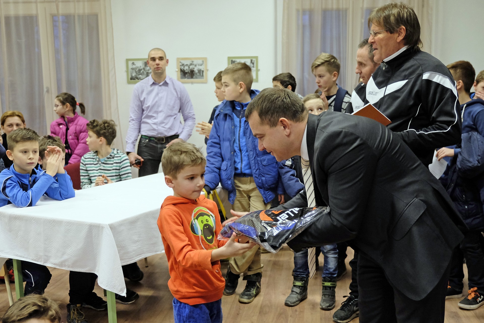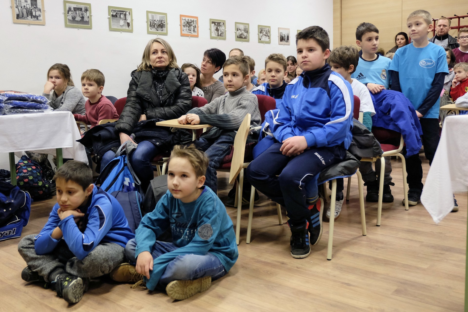 Fiatal labdarúgókkal telt meg az Implom József általános iskola aulája, hiszen az NB III.-as csapat több korosztálya jelen volt a hivatalos átadáson.