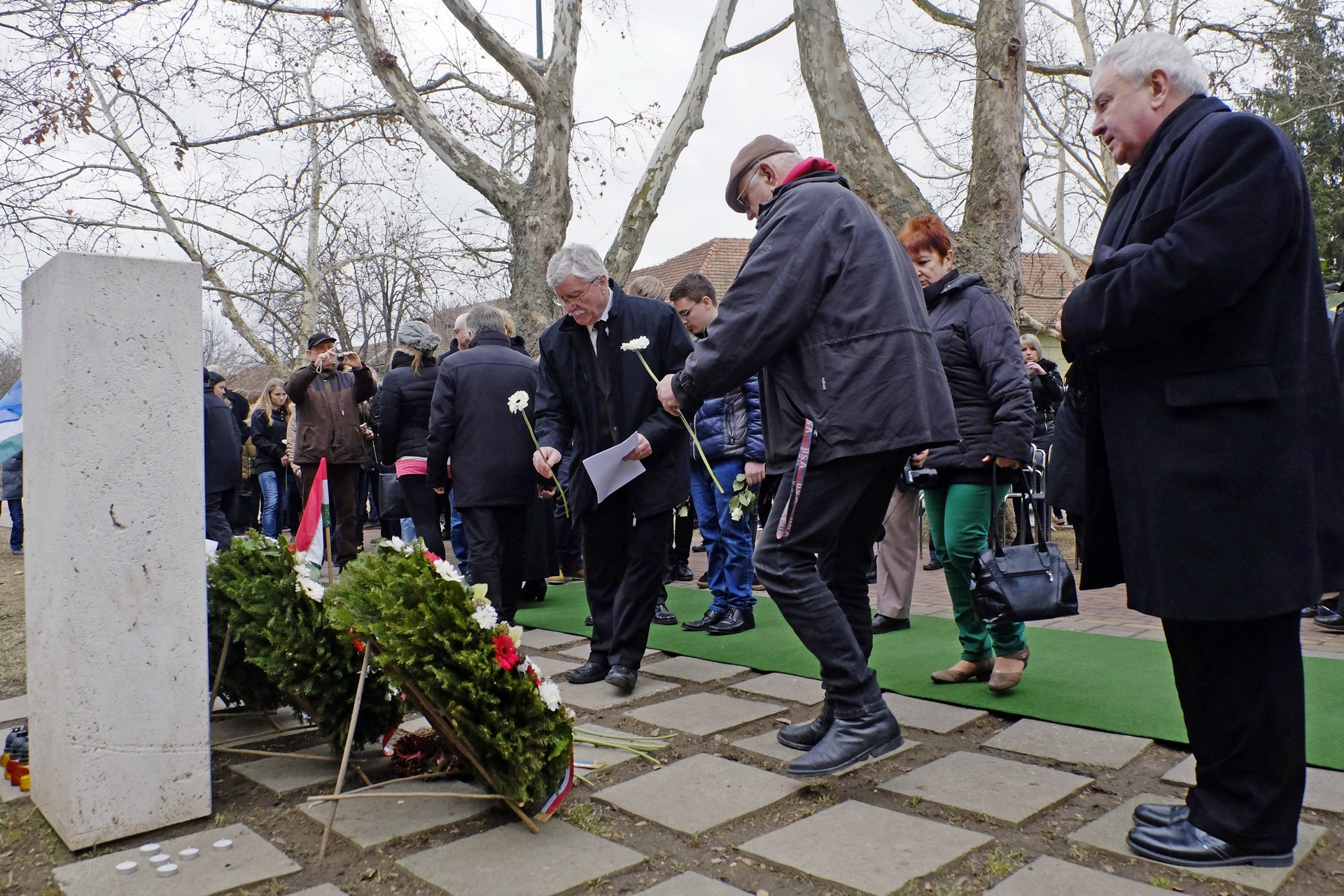 – Kik lehetnek a kommunizmus áldozatainak szerény, de az emlékezésre méltó emlékművénél? – kezdte beszédét dr. Kereskényi Miklós. – Először is az egyre fogyó áldozatok, akiknek átélt valóság, a tömeggyilkosságot is vállaló hamis messiások és bűnös Júdások hangos kiáltása, hogy „Feszítsd meg!” és a skandálást követő kárörvendő nevetés. Számukra a borzalmas múlt felidézése minden ilyen megemlékezés. A kitelepítetteknek, a fogságba hurcolt civileknek, a frontot megjárt katonáknak, a válogatás nélkül fasisztának titulált németeknek és a málenkij robotra elhurcoltakból életben maradottaknak.