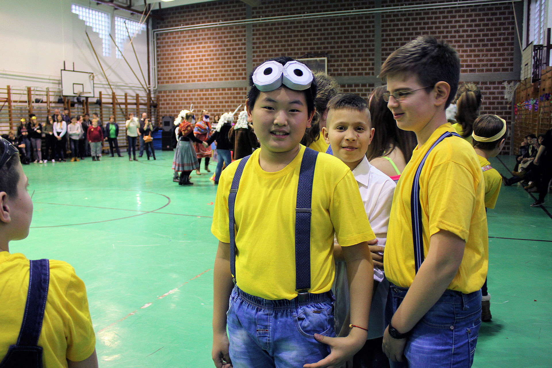 A diákok osztályonként öltöttek színes maskarákat, amik között a szurkolólánynak öltözött fiúcsoport mellett a mesefigurák és egy amerikai futballista csapat is megjelent. A jelmezbe öltözött tanulók felvonulását és műsorát egy közös télűző tánccal zárták az iskola felsős tanulói és tanárai.