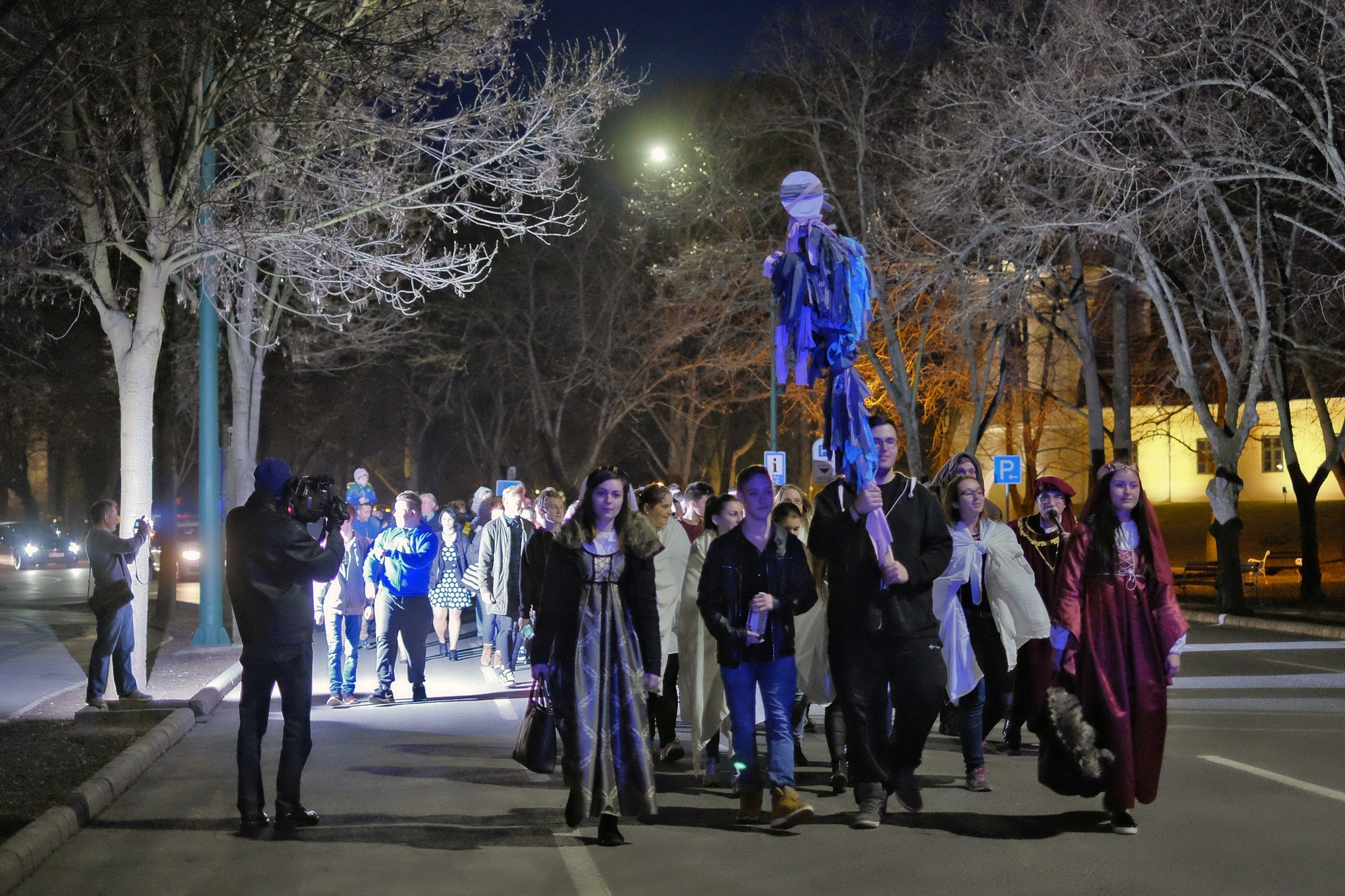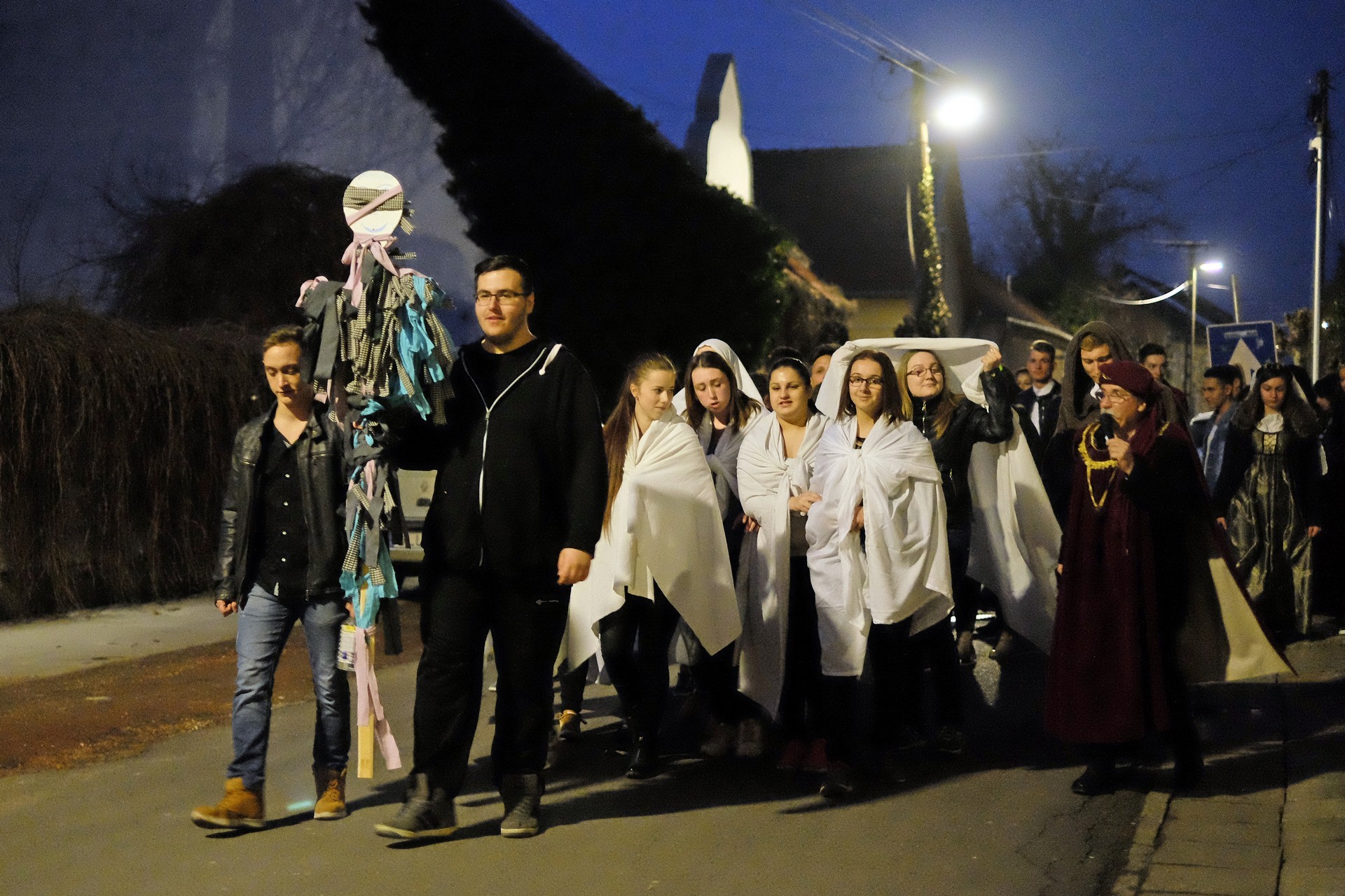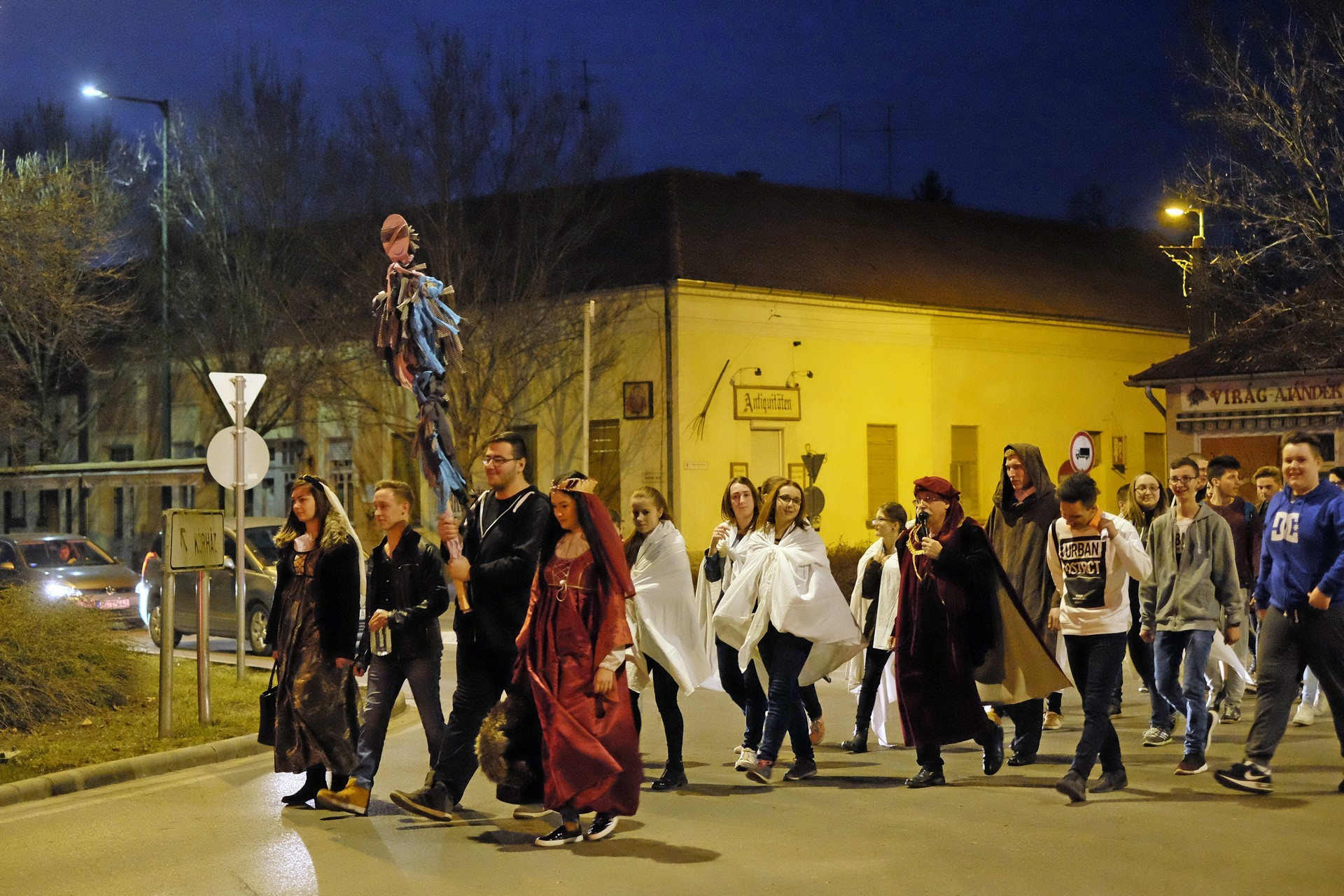 A tanulók a kollégium udvaráról az Élővíz-csatorna hídjához vonultak, ahol egy humoros szöveg keretében számot is adtak a csínyekről: volt iskolakerülés, lustaság, tanórai mobilhasználat, és minden egyéb, amely előfordul egy középiskolában. A bűnök megvallása után a kiszebábot felgyújtották, majd a vízbe dobták, így szimbolikusan a téltől és a problémáktól is megszabadultak.
