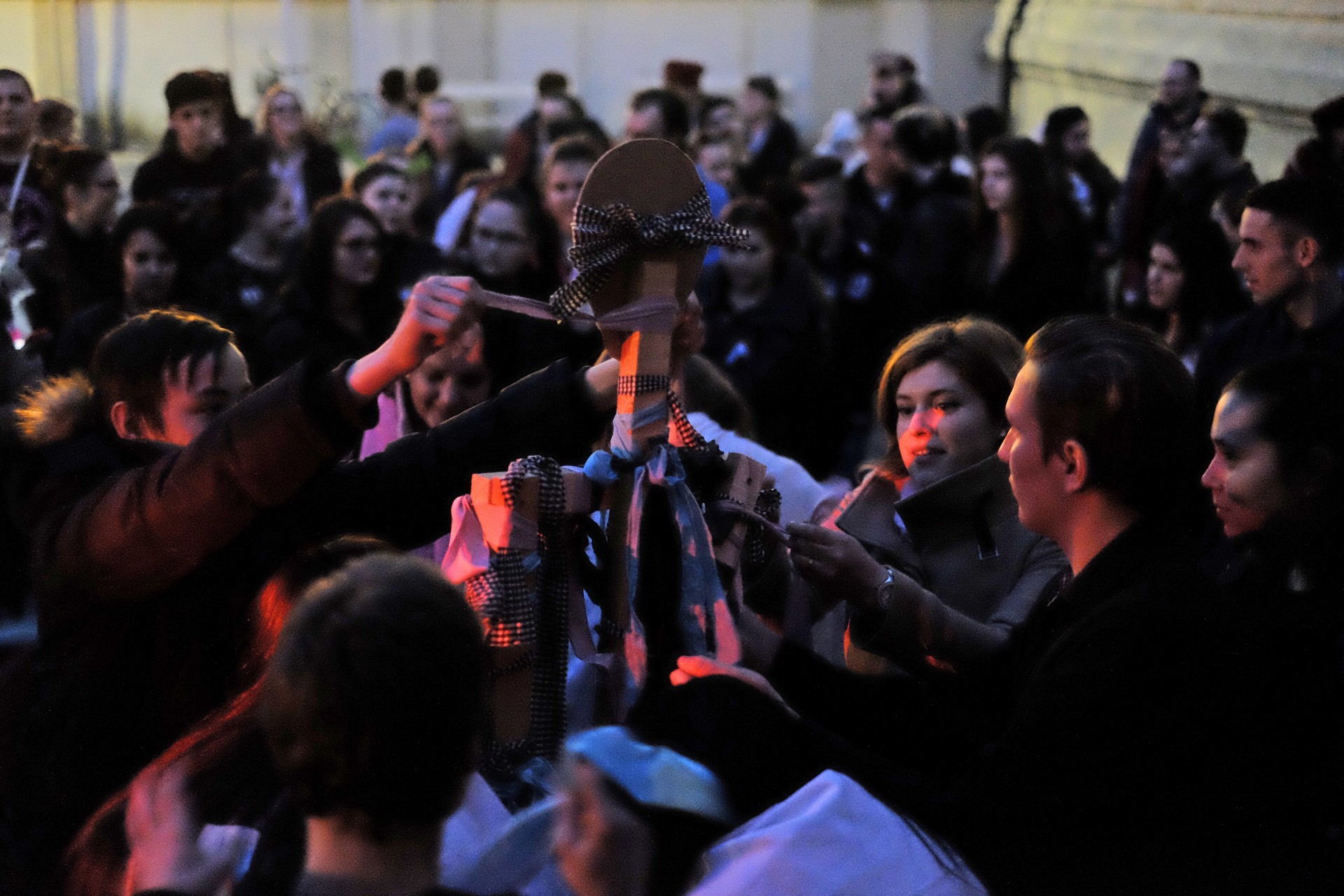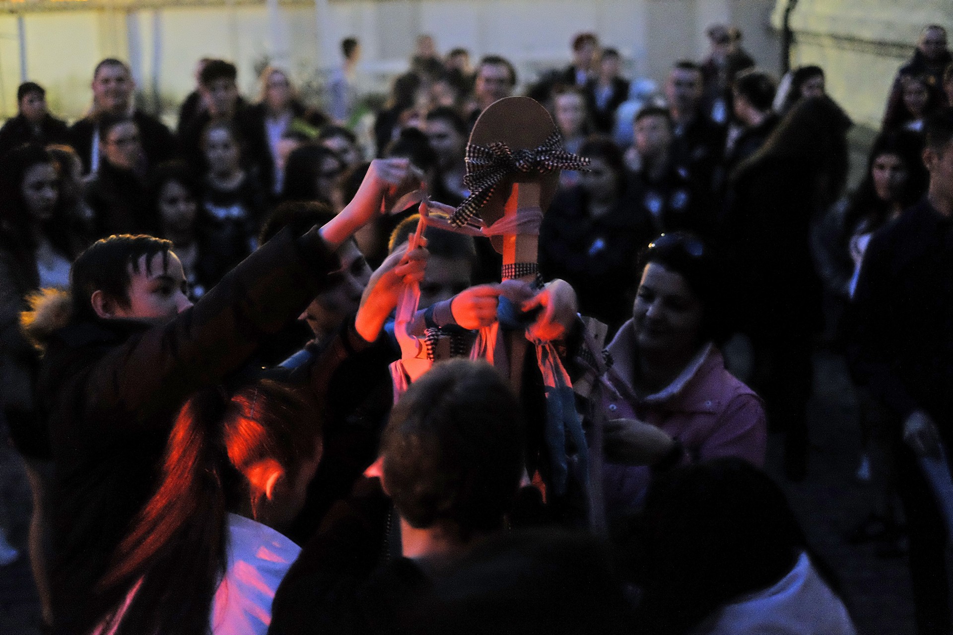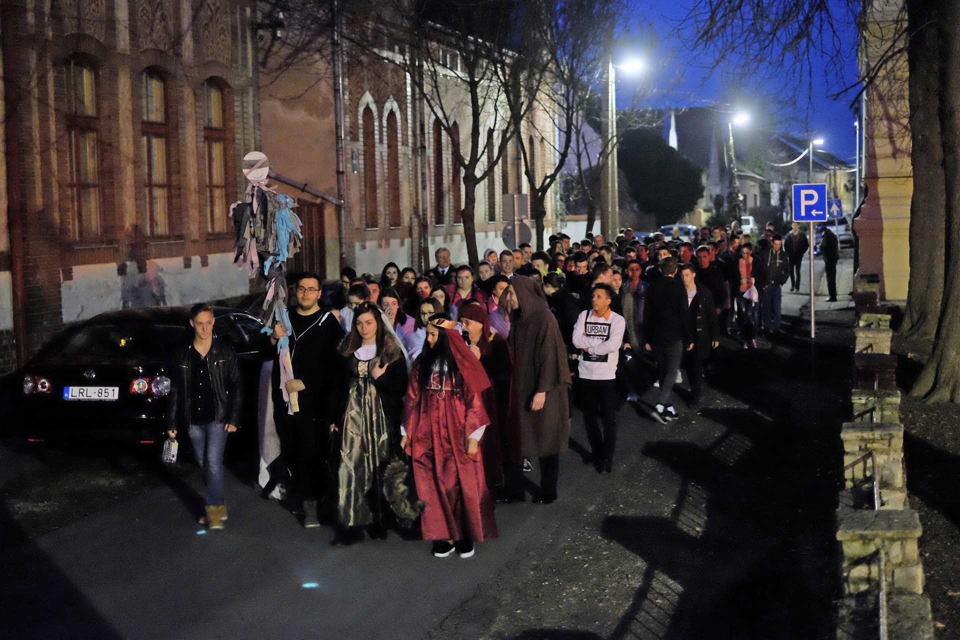 A tanulók a kollégium udvaráról az Élővíz-csatorna hídjához vonultak, ahol egy humoros szöveg keretében számot is adtak a csínyekről: volt iskolakerülés, lustaság, tanórai mobilhasználat, és minden egyéb, amely előfordul egy középiskolában. A bűnök megvallása után a kiszebábot felgyújtották, majd a vízbe dobták, így szimbolikusan a téltől és a problémáktól is megszabadultak.