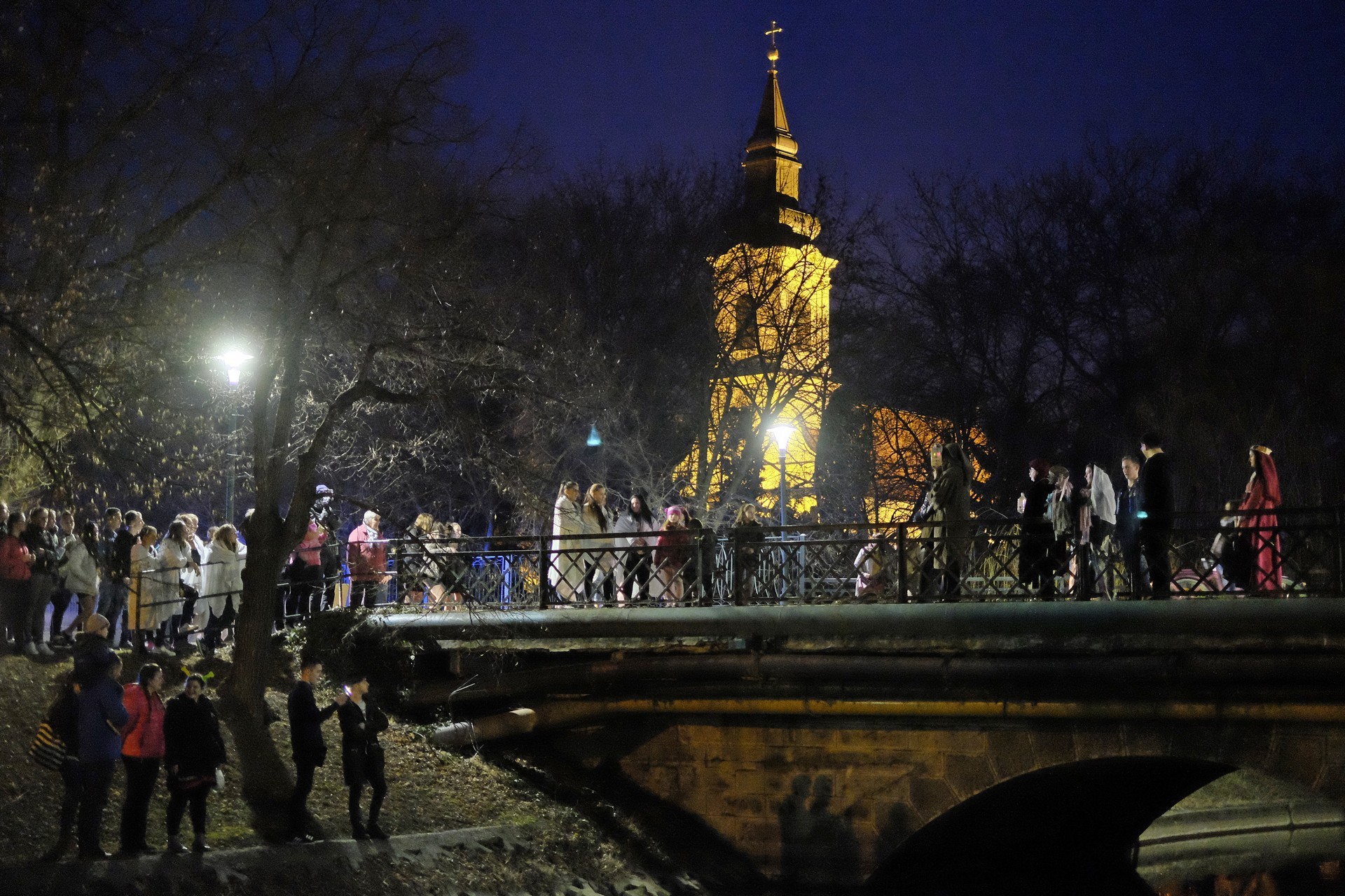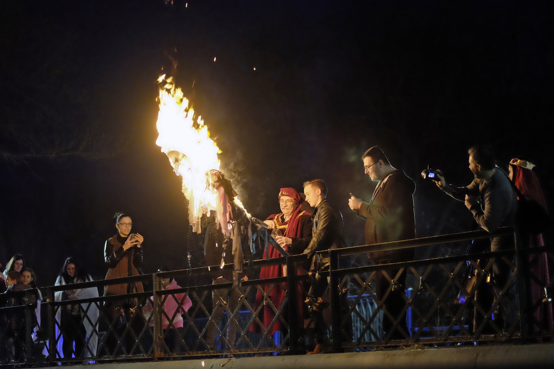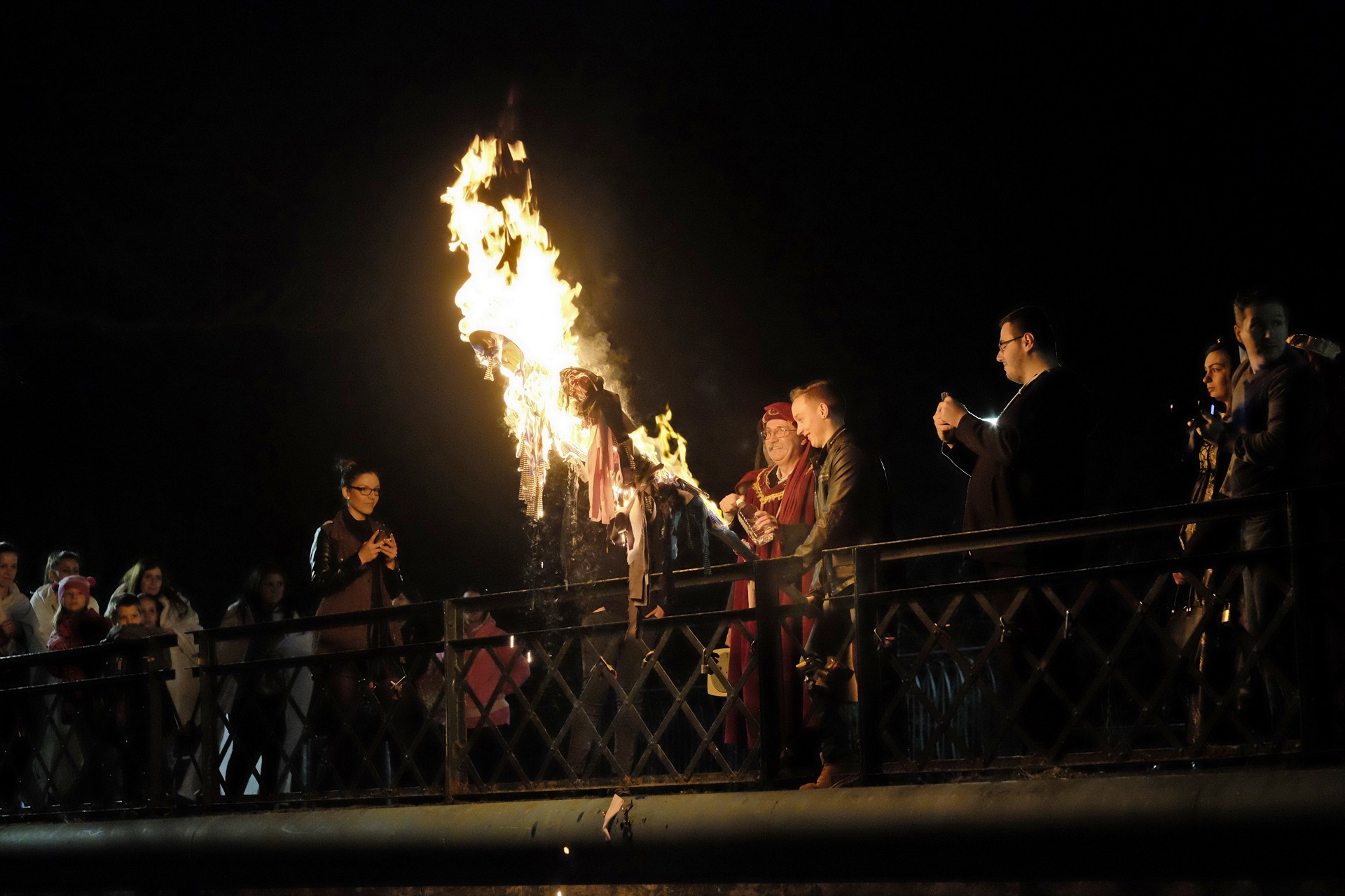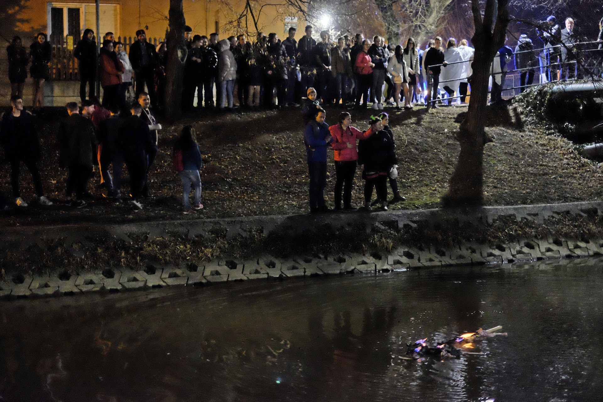 Kiszebábégetés az Élővíz-csatorna hídján