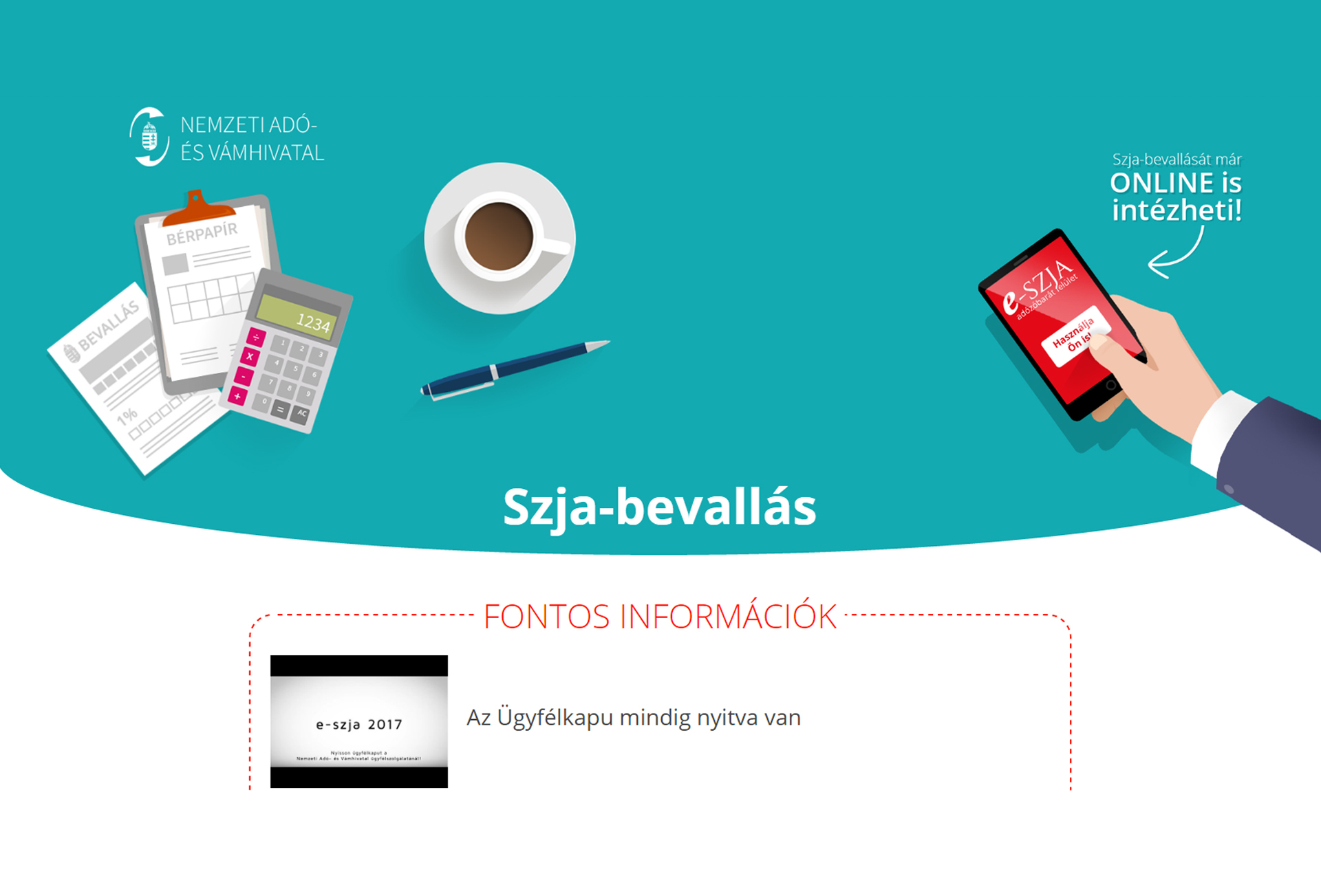 Akinek még nincs ügyfélkapuja, mindenképp érdemes öt percet rászánnia, és a kormányablaknál vagy bármelyik NAV ügyfélszolgálaton nyitni egyet, hiszen az ügyfélkapun keresztül a bevallási tervezeten kívül a közigazgatás számos szolgáltatása elérhetővé válik – javasolta Tamásné Czinege Csilla a közlemény szerint.
