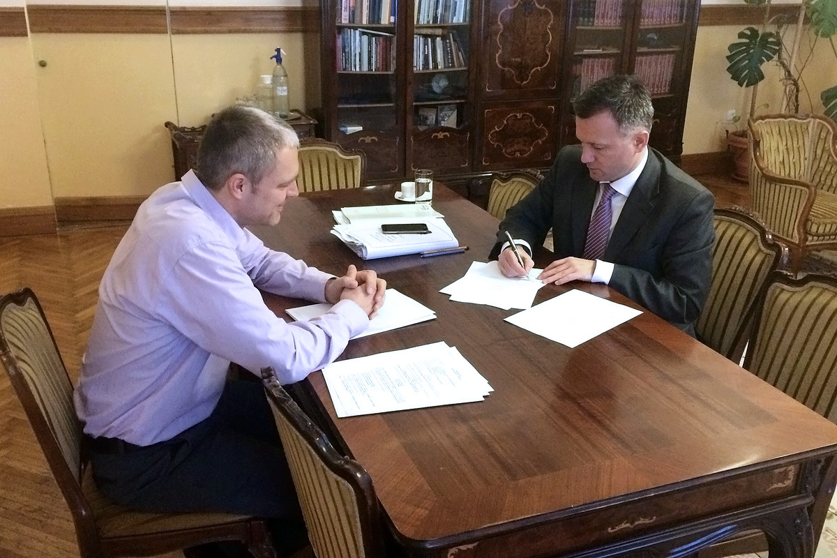 Kun Miklós és Görgényi ERnő a szerződés aláírásakor