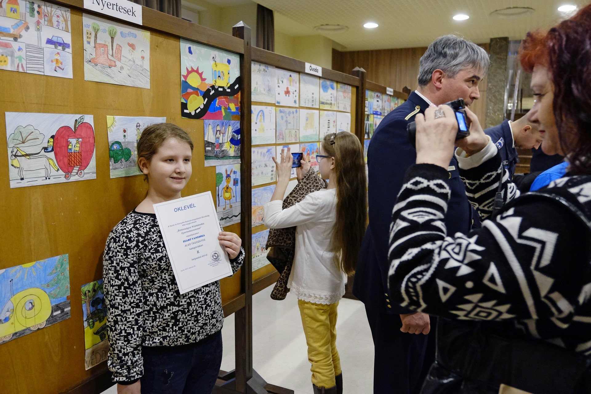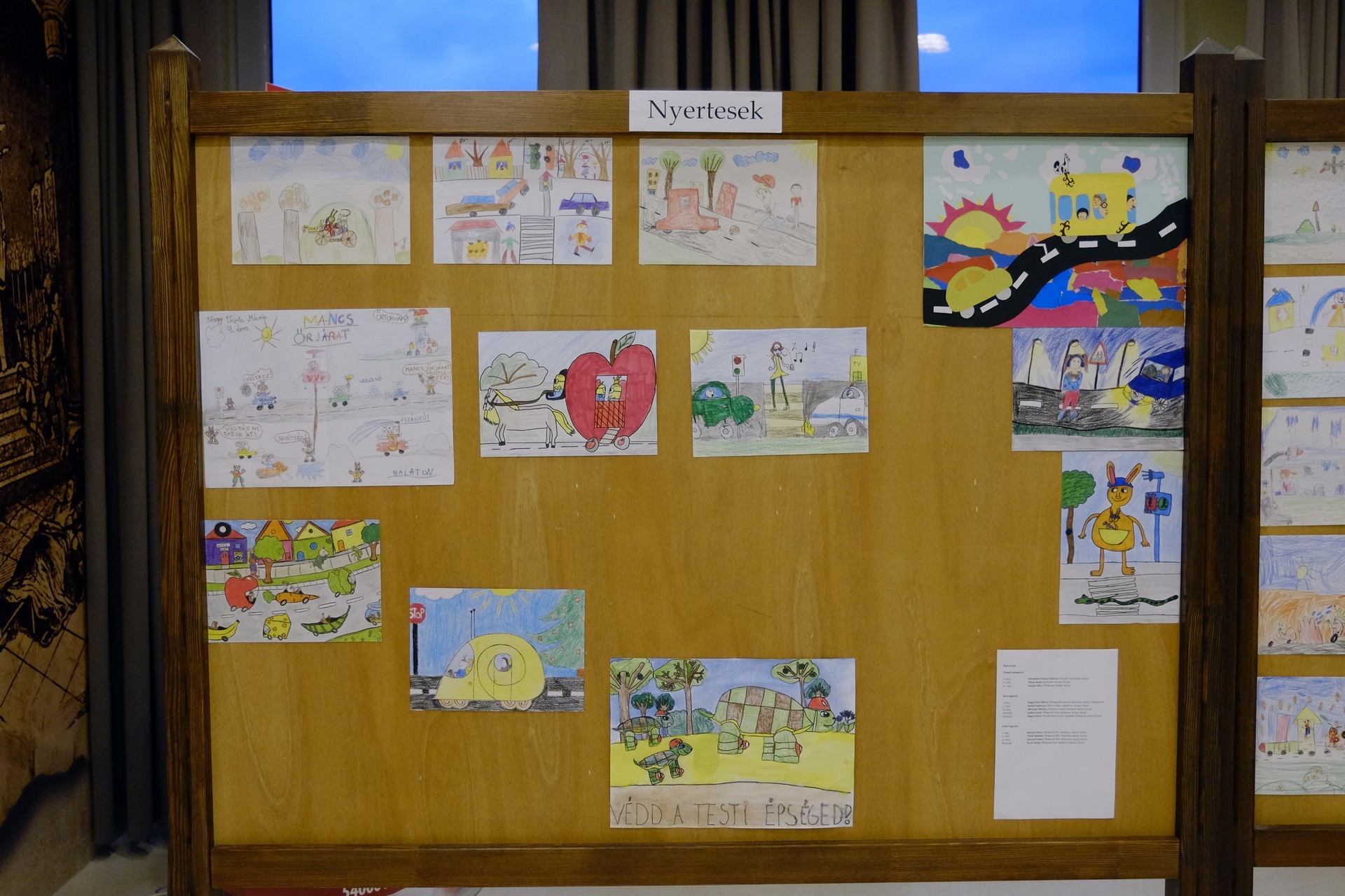 – Fontos, hogy minél fiatalabb korosztályoktól kezdjük a gyerekeket a helyes közlekedésre nevelni – mondta Kolysza Zoltán. – Elsősorban a téma fogott meg minket, hogy a gyermekek hogyan látják ezt a témát. A legjobb pályamunkák számára tárgynyereménnyel készültünk, de az összes kiállított rajzot megtekinthetik március közepéig az érdeklődők. Egy szakmai zsűri bírálta el a beküldött munkákat, amelynek tagjai a témát és a megvalósítást is figyelembe vették.