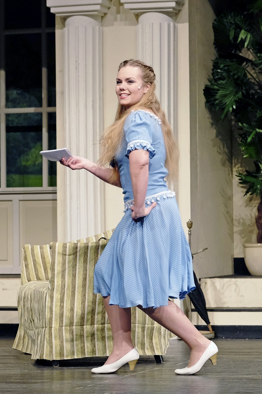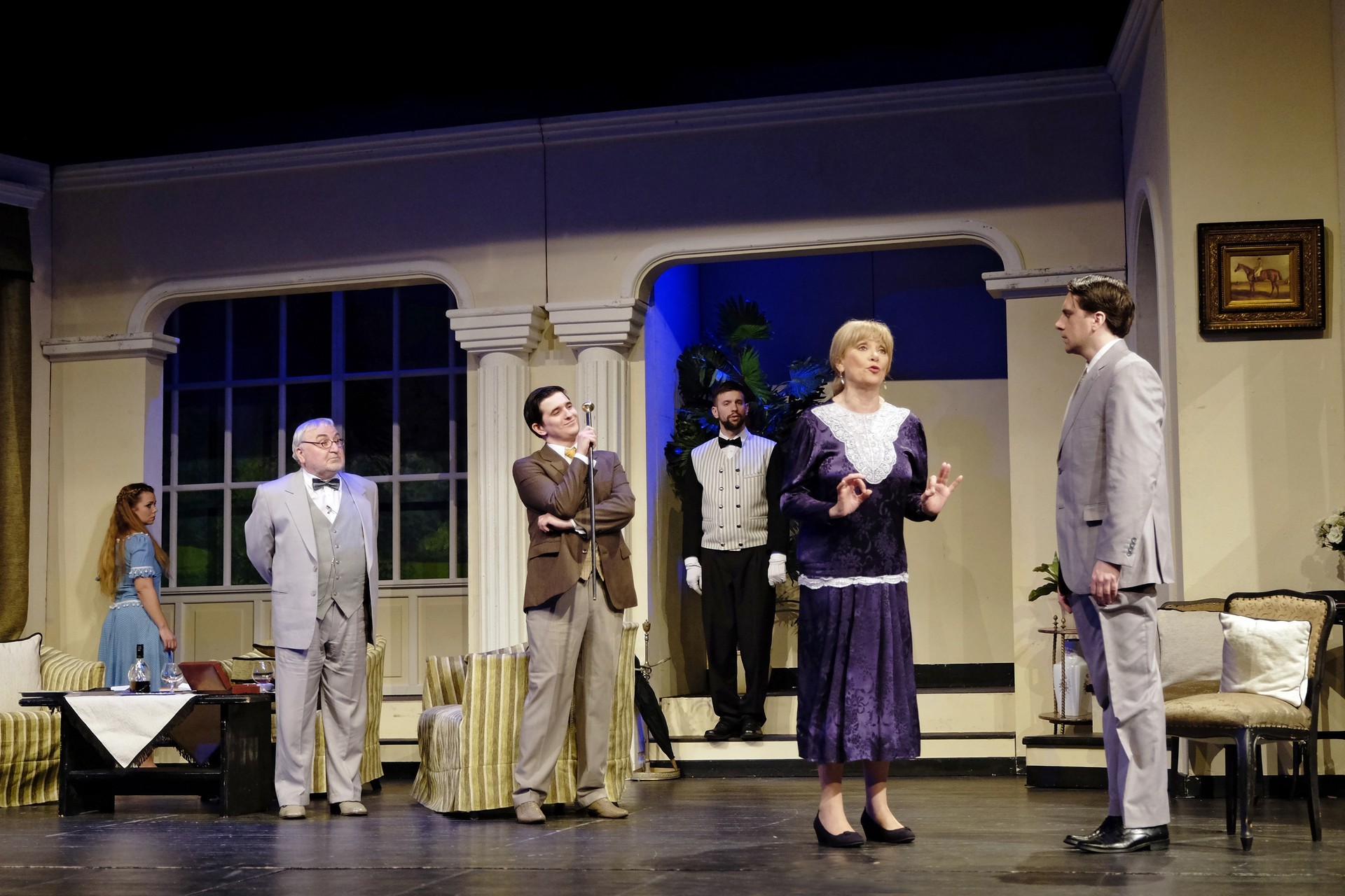Felvetődik tehát a kérdés, mit tud annyira jól a két világháború közti korszak színműirodalma, hogy közel három órán át képes távol tartani az izgalmas mobilapplikációktól az izgatott modern embert? A darab ugyanis a 20. század első évtizedeinek látszólag mézédes világát idézi fel, az akkori társadalom ma már banálisnak számító, elcsépeltnek tűnő poénjait tolmácsolja. Valószínűleg tudatos döntés volt a budapesti teátrum részéről, hogy a szöveget nem íratta át korunk nyelvére, s a díszlettel, a kosztümökkel és a játékmodorral sem idomult hozzá a 21. századi minimalizmushoz. Amit csütörtök este láttunk a művelődési házban, semmiben sem különbözött attól, amin a száz évvel előttünk élők mosolyogtak a párizsi színházakban. Idősíkokon átlépve (most az egyszer) belebújhattunk a bőrükbe, velük együtt nevethettünk azon, hogy Suzy Flute színművésznő előrehaladott kora ellenére még mindig fiatal leányzóként rázza a ronygot, a nem éppen csitri szobalány nagyobb jelentőséget tulajdonít magának a kelleténél, ezért pofátlanul becsapja, átveri a munkaadóját. Kuncoghattunk azon is, hogy az éttermet, ahol nagy lebukás és leleplezés történik, Csacska Macskának hívják (persze csak a magyar fordításban), hogy a menynek való egy bohókásan jópofa-jóforma szöszi, s természetesen azon is heherészhettünk, hogy a kisasszony édesapja pont az ő édesanyját csalja meg a parókás dívával, amiből aztán egész bonyodalom kerekedik. És ott van még a törött kínai vázába kapaszkodó engedelmes kisfiú is, aki persze már nagyfiú, hisz nősülni készül, és akin most mi is röhögtünk, éppúgy mulattunk, mint a párizsi kabarék hajdani bérletesei.