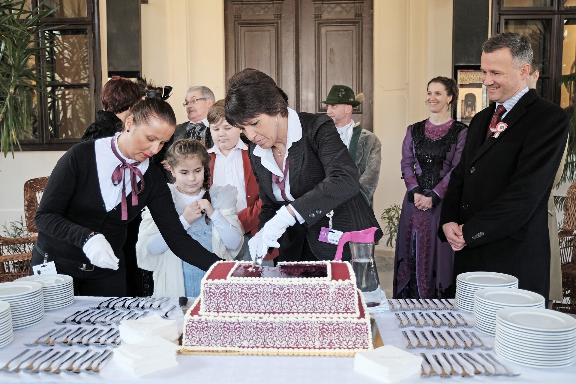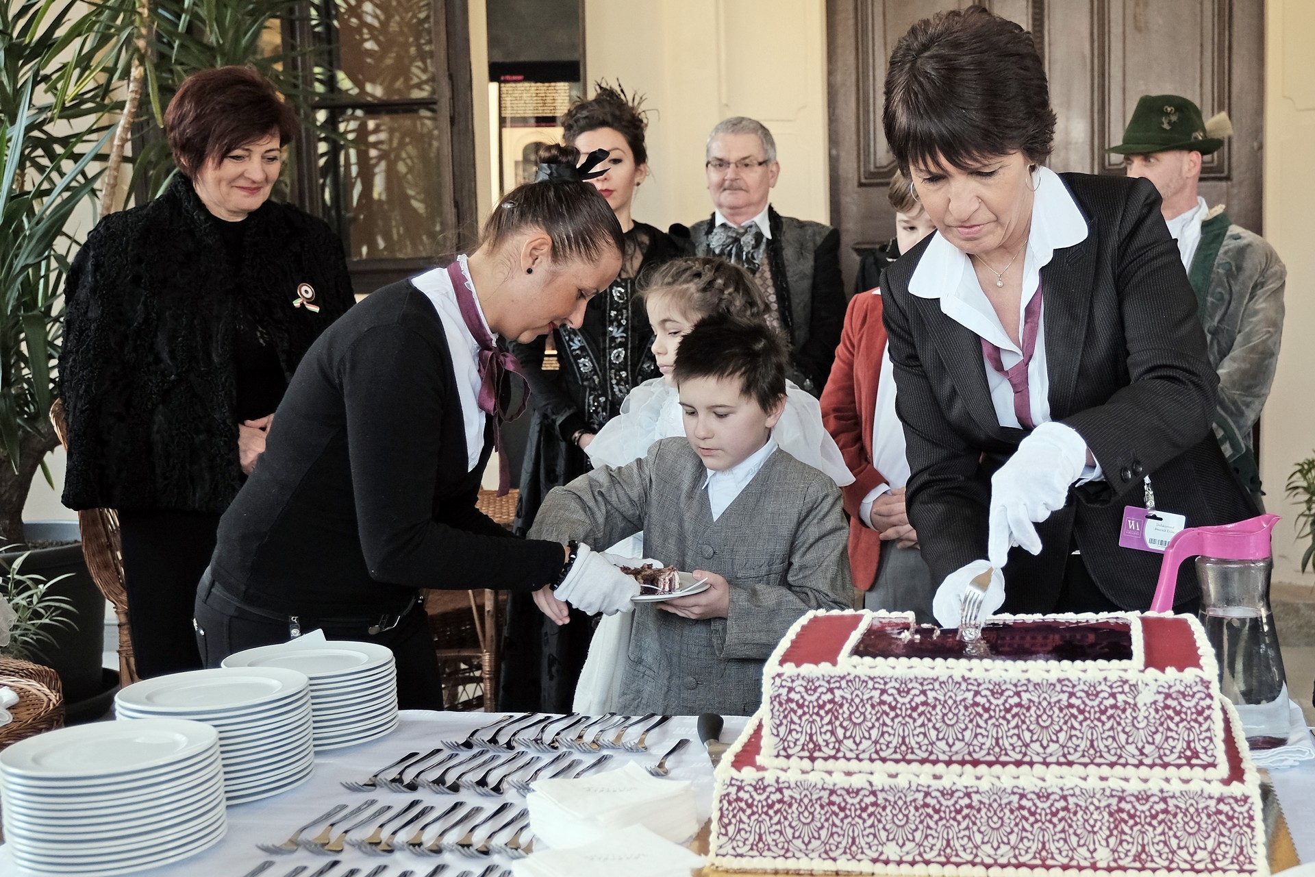 A kastély születésnapi tortáját Dombi Ildikó és dr. Görgényi Ernő vágta fel