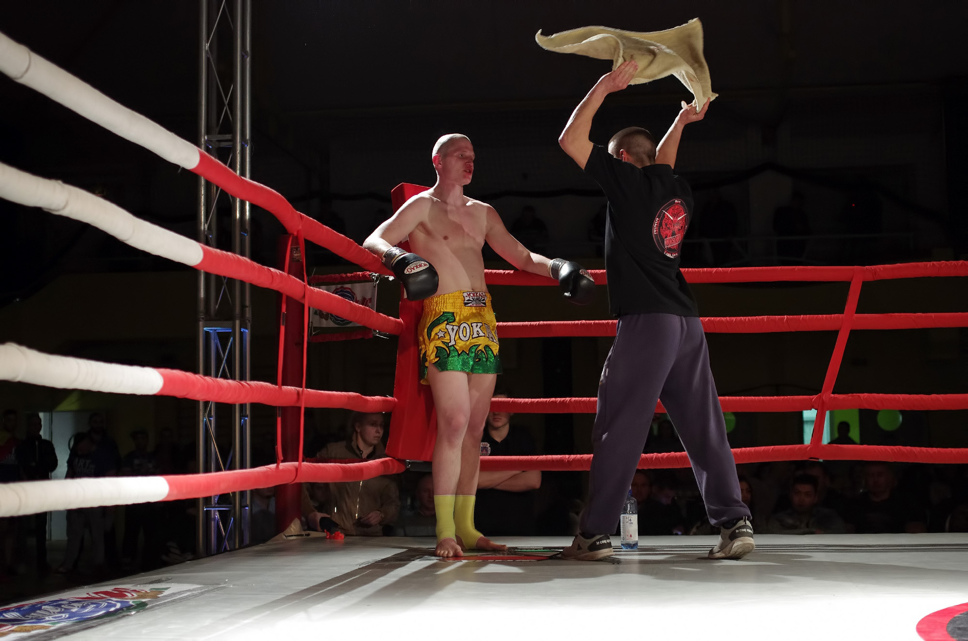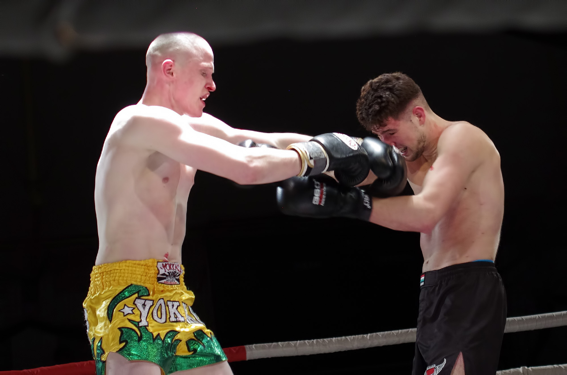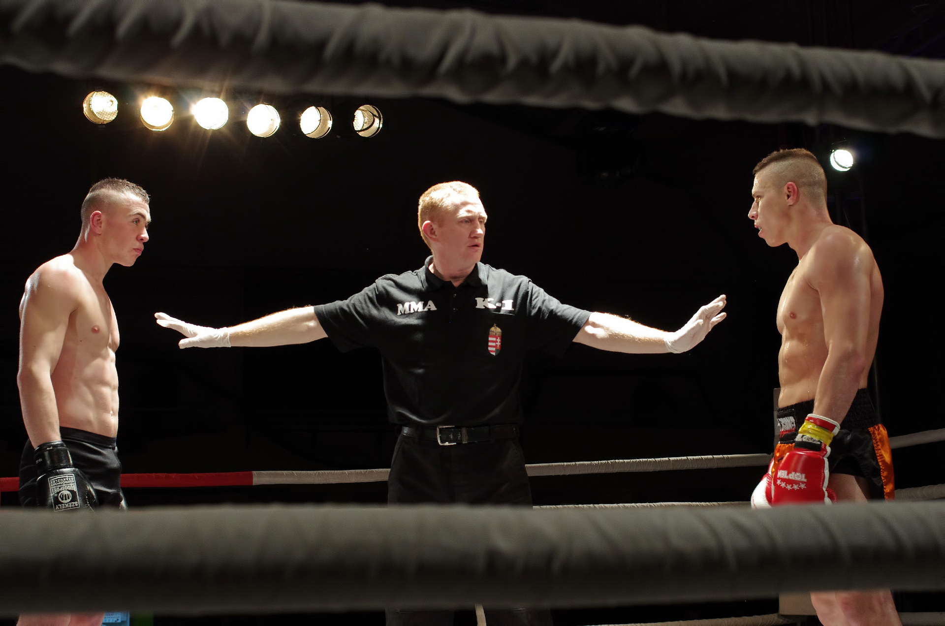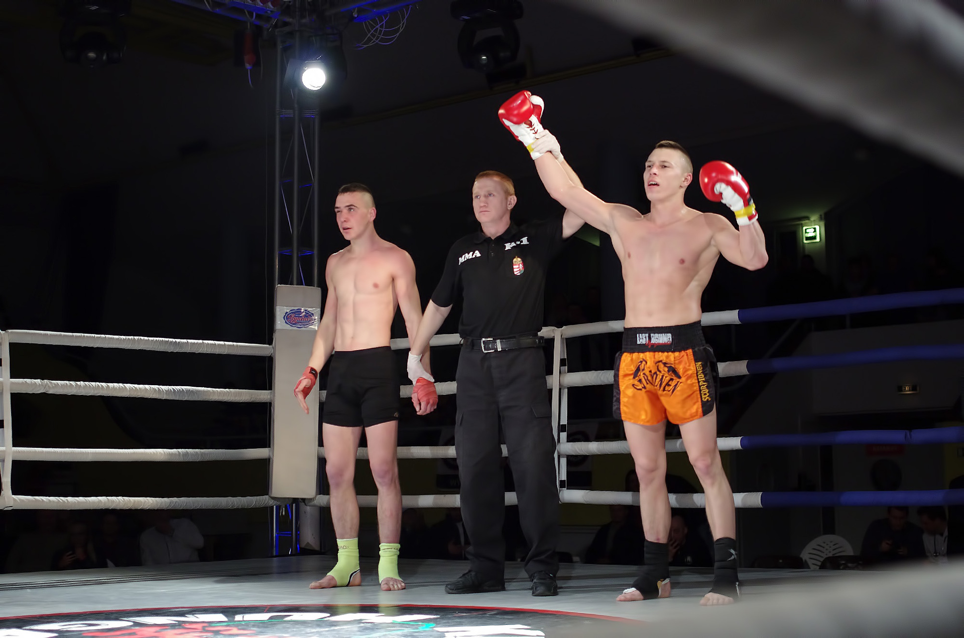 A gyulai Roxin Csaba a mezőtúri Varga Zsolt ellen lépett a kötelek közé. A két fiatal harcos óriási elánnal kezdte a küzdelmet, amiben a tiszta találatok mellett sok ütés és rúgás célt tévesztett. Az ifjak vehemenciája egy idő után megbosszulta magát, hiszen a pörgős ütés-váltás hamar leszívta a sportolók energiáját. Az egyre lassuló ütemű mérkőzésen a valamivel több értékelhető ütést elérő Varga győzelmét hirdették ki. Mindkét fiatalon látszik a technikai képzettség, hiszen a láb mellett komoly fegyverként használták a kéztechnikájukat is. A ringbe lépések kevés száma miatti rutintalanság miatt fordulhattak elő szabálytalanságok vagy éppen a mozgásuk koordinálatlansága, de ha folytatják a megkezdett utat, akkor mindketten nagy jövő elé nézhetnek.
