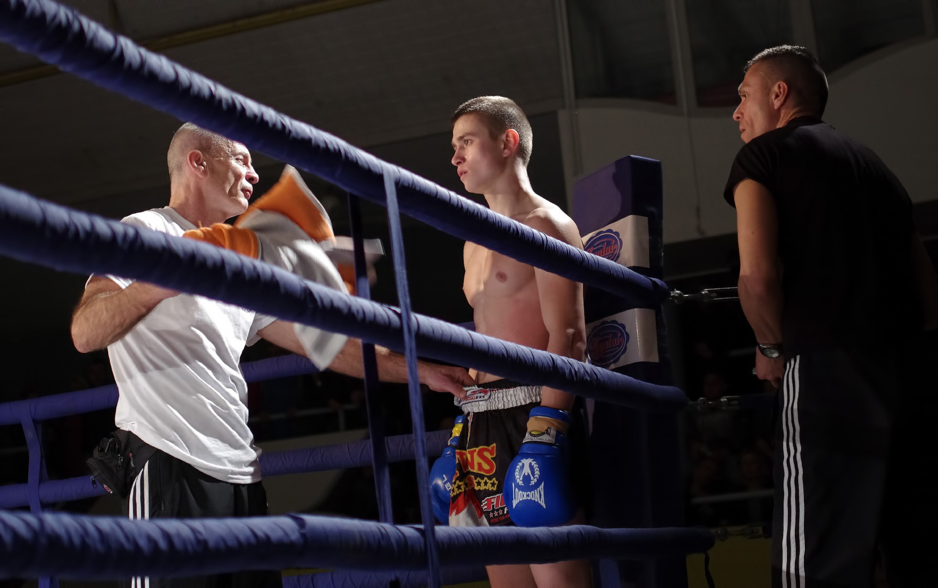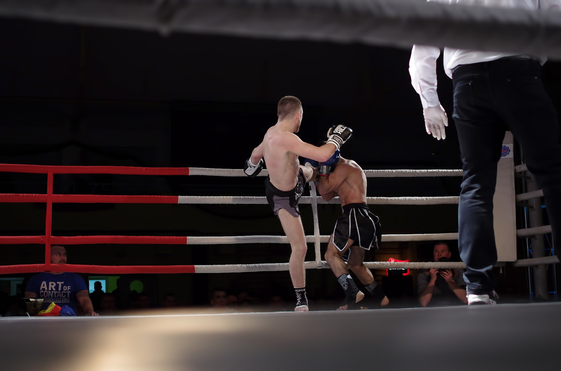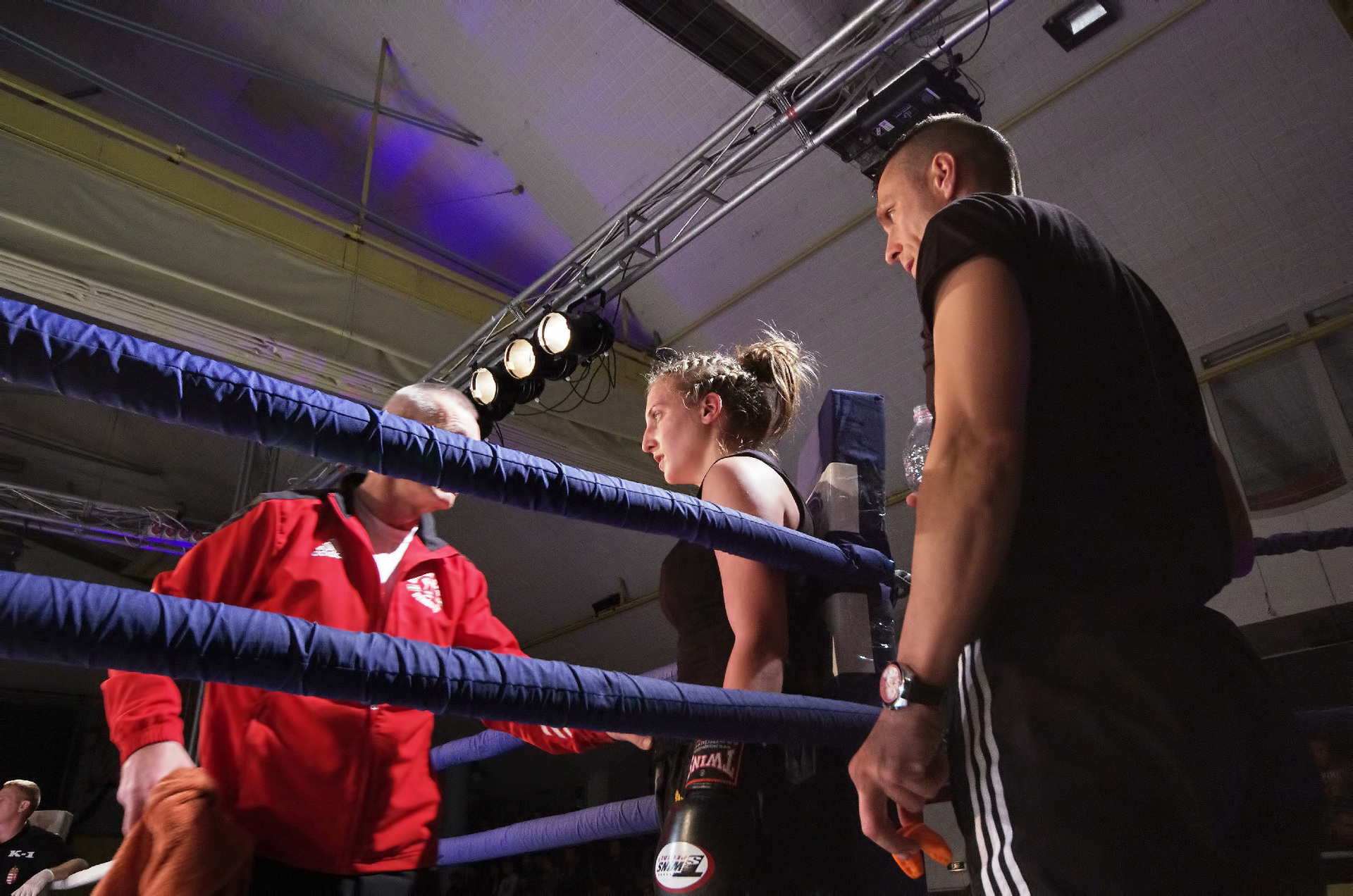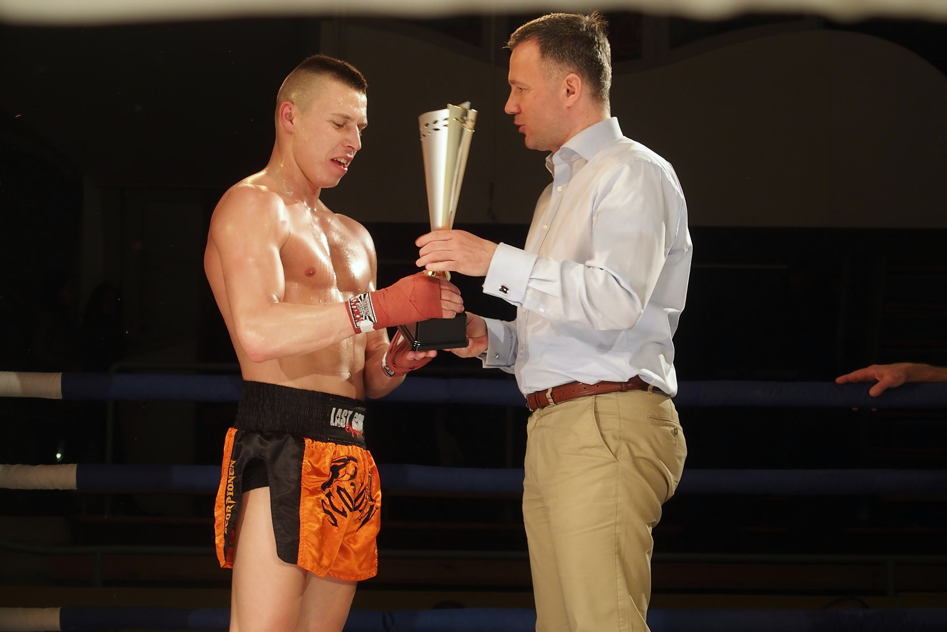 A gyulai Roxin Csaba a mezőtúri Varga Zsolt ellen lépett a kötelek közé. A két fiatal harcos óriási elánnal kezdte a küzdelmet, amiben a tiszta találatok mellett sok ütés és rúgás célt tévesztett. Az ifjak vehemenciája egy idő után megbosszulta magát, hiszen a pörgős ütés-váltás hamar leszívta a sportolók energiáját. Az egyre lassuló ütemű mérkőzésen a valamivel több értékelhető ütést elérő Varga győzelmét hirdették ki. Mindkét fiatalon látszik a technikai képzettség, hiszen a láb mellett komoly fegyverként használták a kéztechnikájukat is. A ringbe lépések kevés száma miatti rutintalanság miatt fordulhattak elő szabálytalanságok vagy éppen a mozgásuk koordinálatlansága, de ha folytatják a megkezdett utat, akkor mindketten nagy jövő elé nézhetnek.