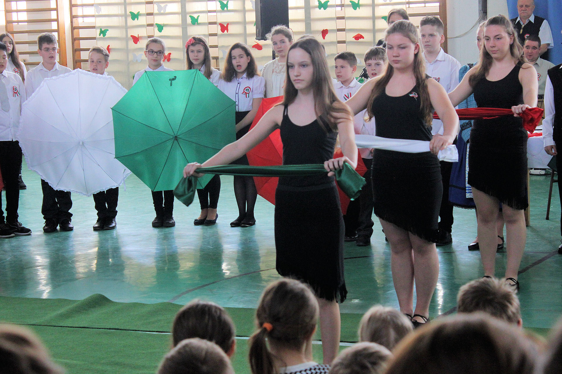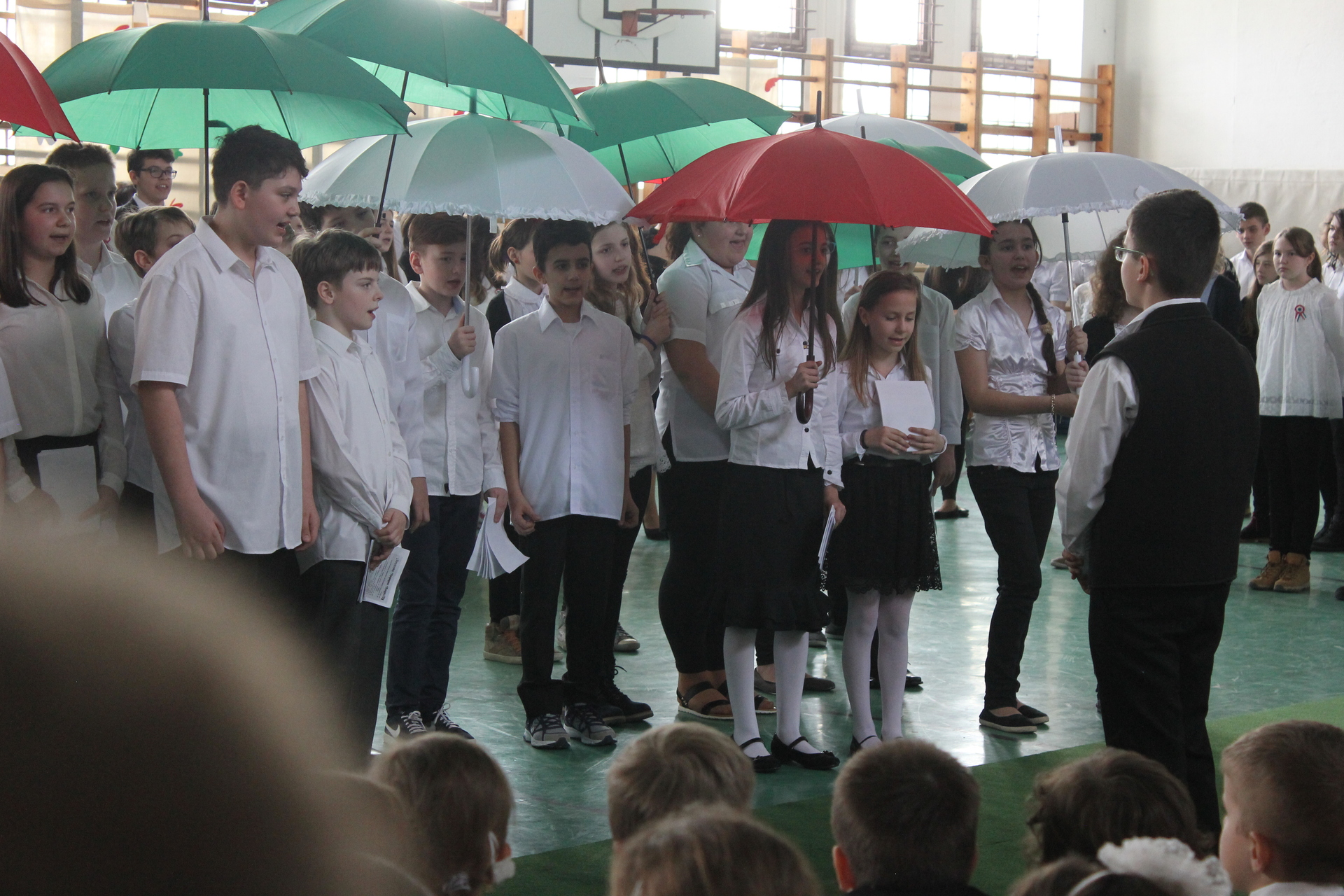 A zenés, verses színdarabban a 12 pontot is felelevenítették a düreres „márciusi ifjak”, majd a Nemzeti dal meghallgatása után közös énekléssel zárult az iskola ünnepi délutánja.