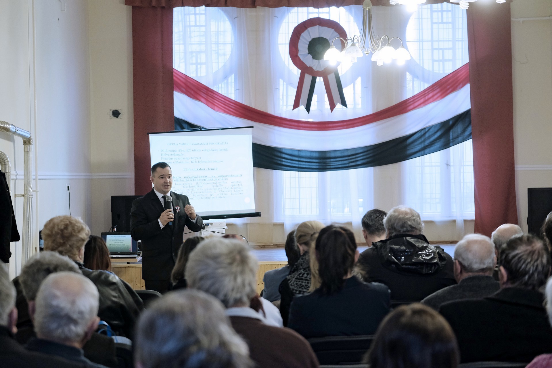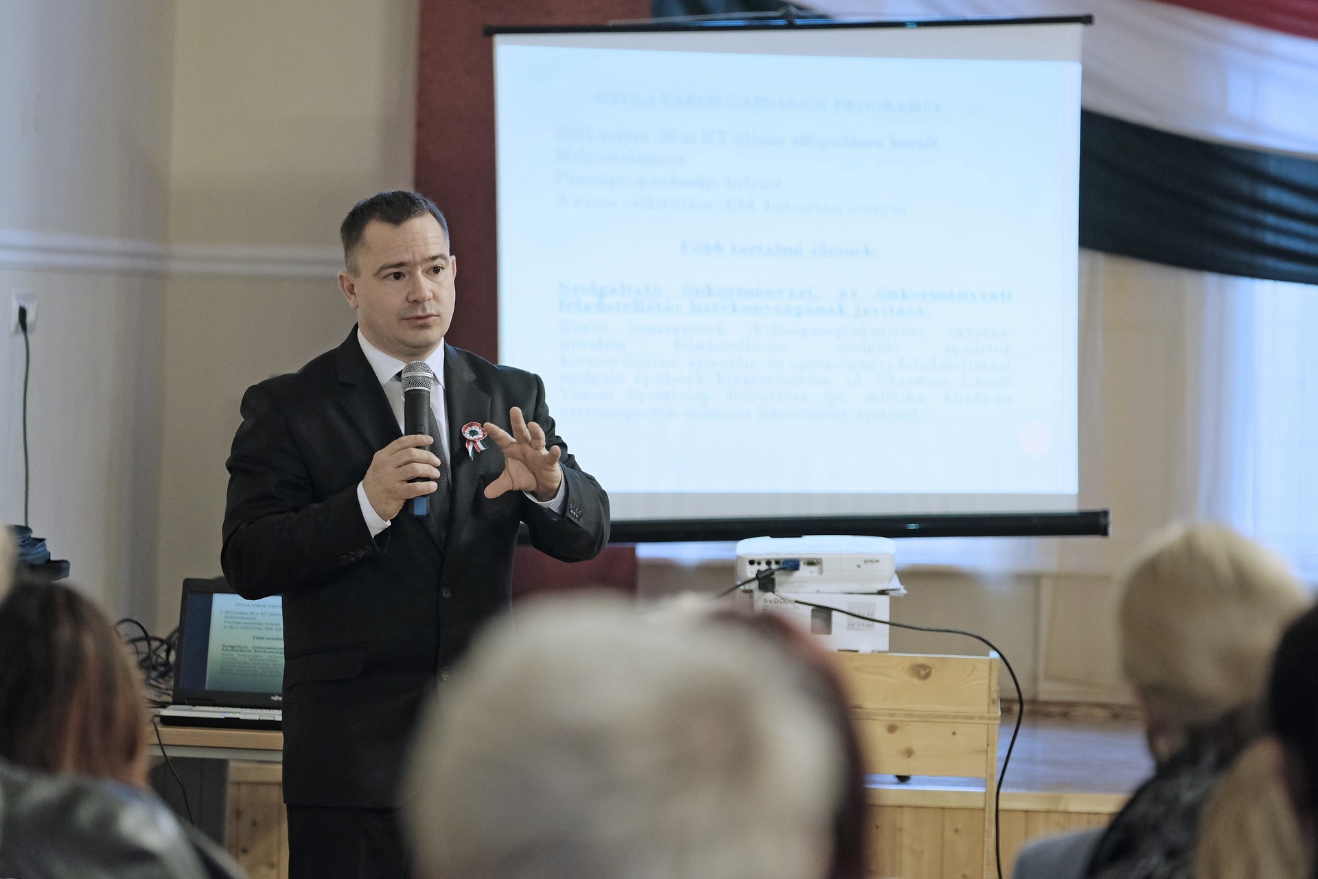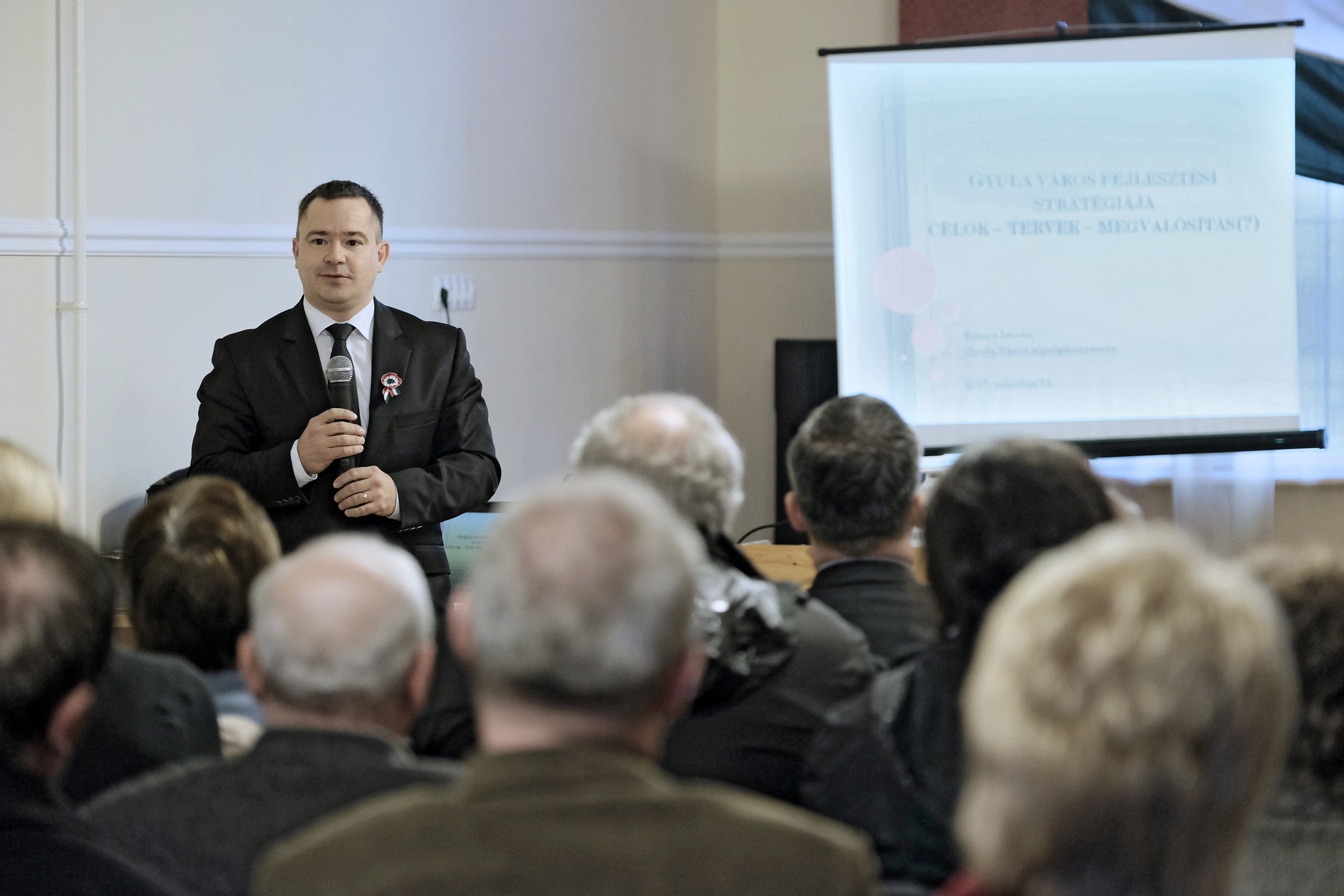 Kónya István alpolgármester Gyula városának fejlesztési stratégiájáról számolt be, melynek a Célok, tervek és megvalósítás alcímet adta.