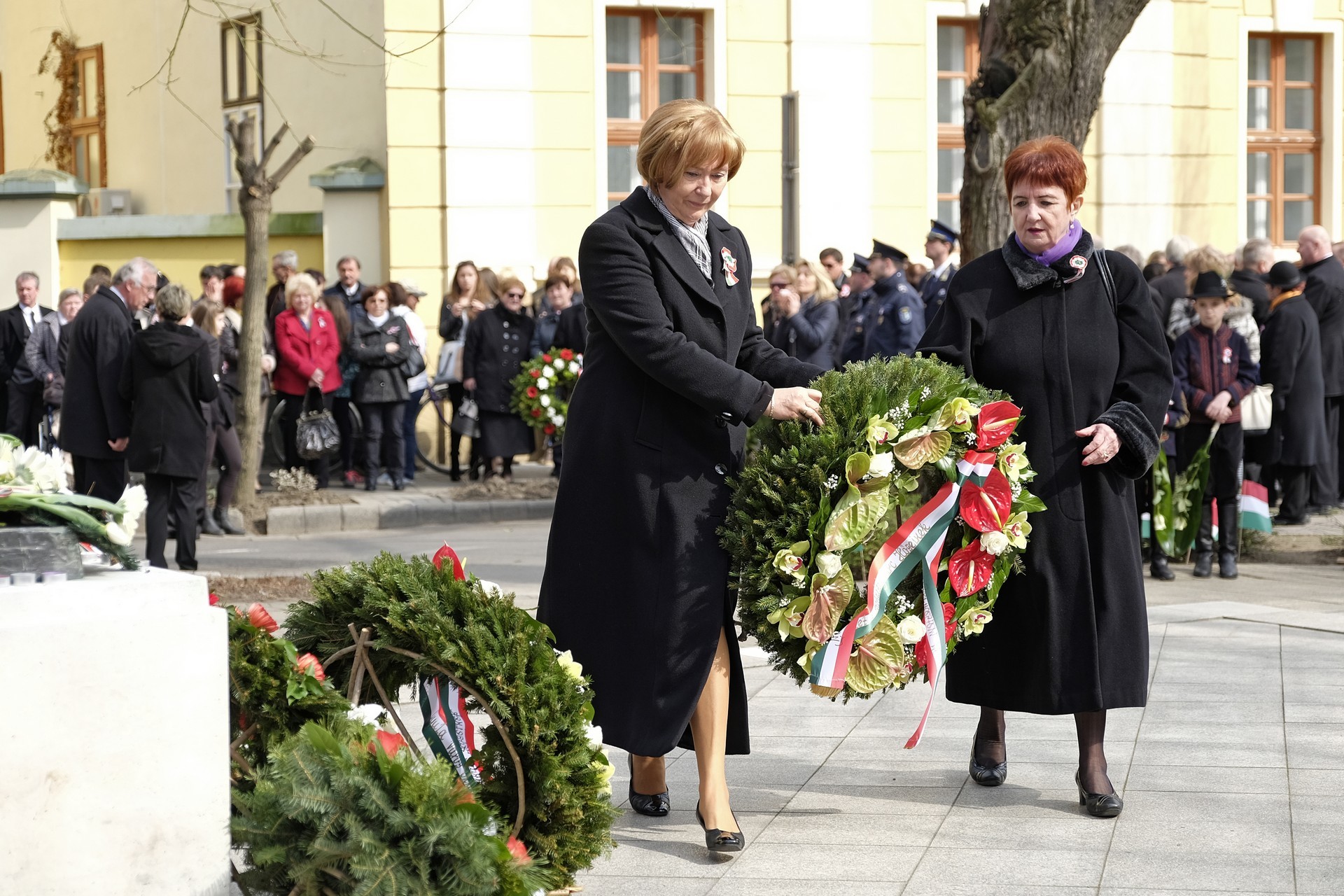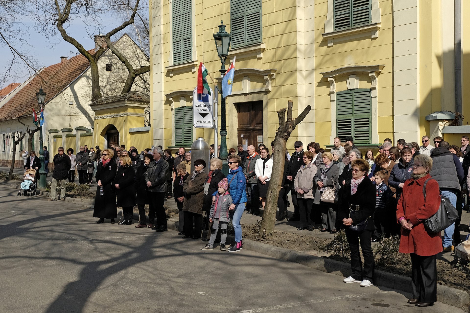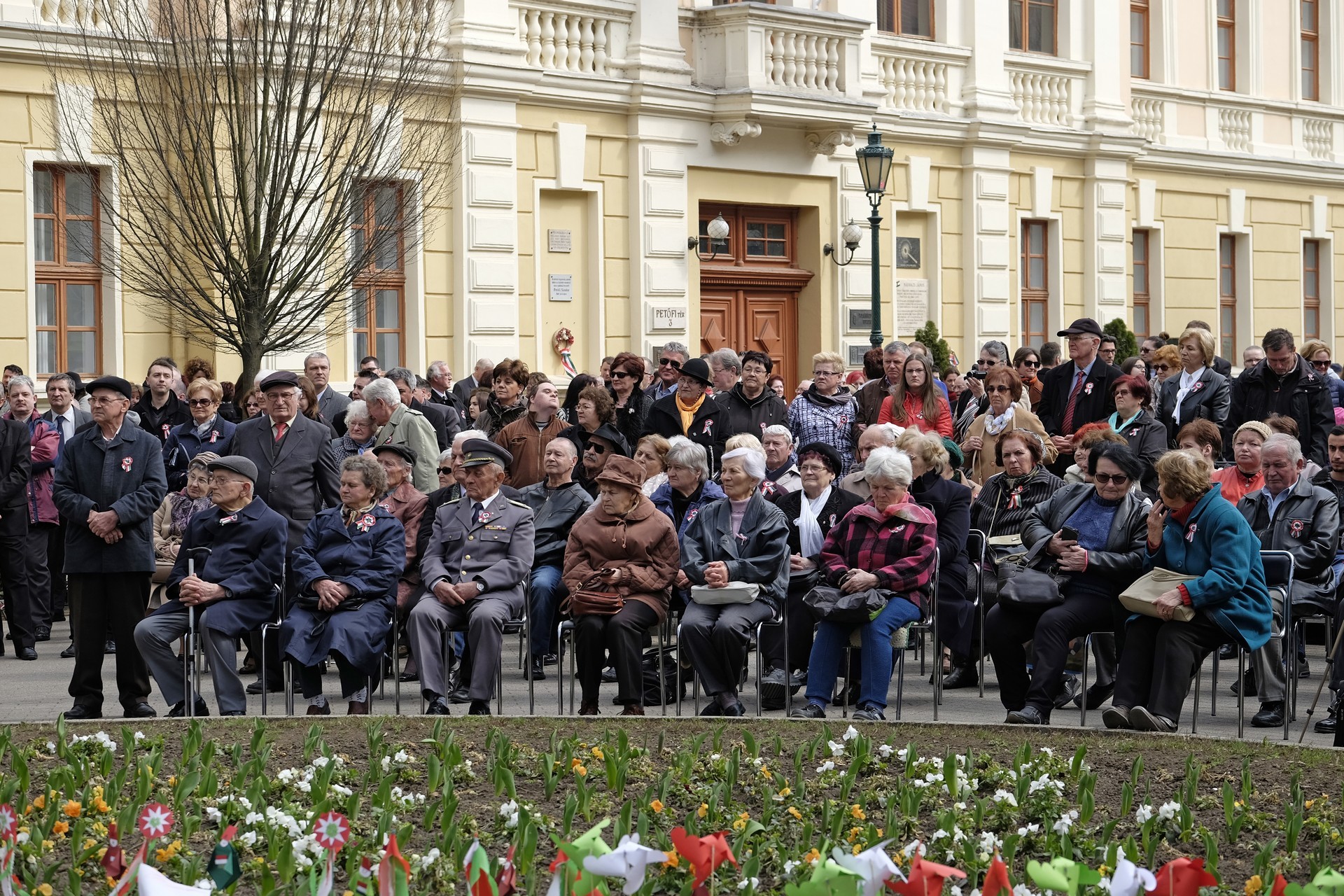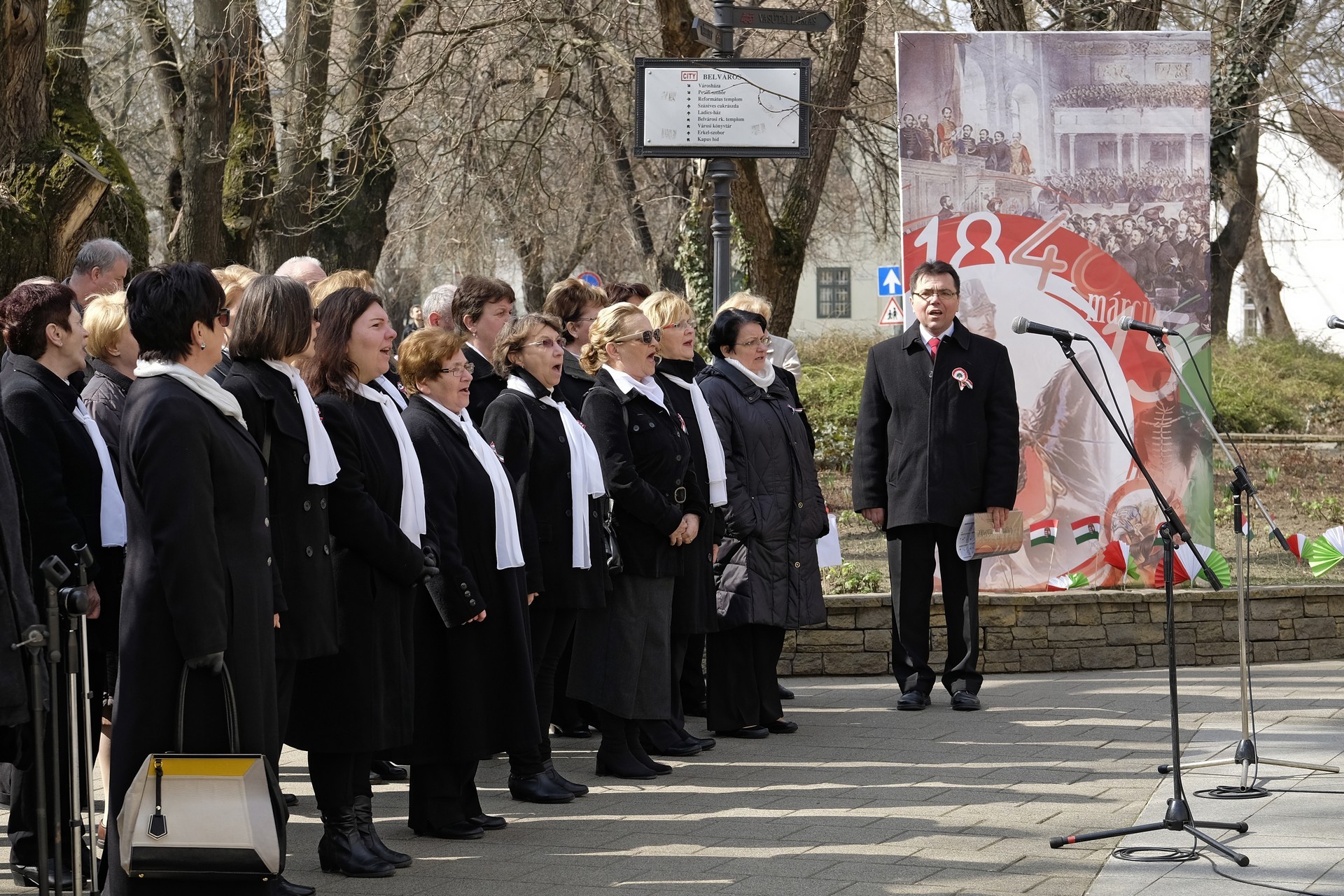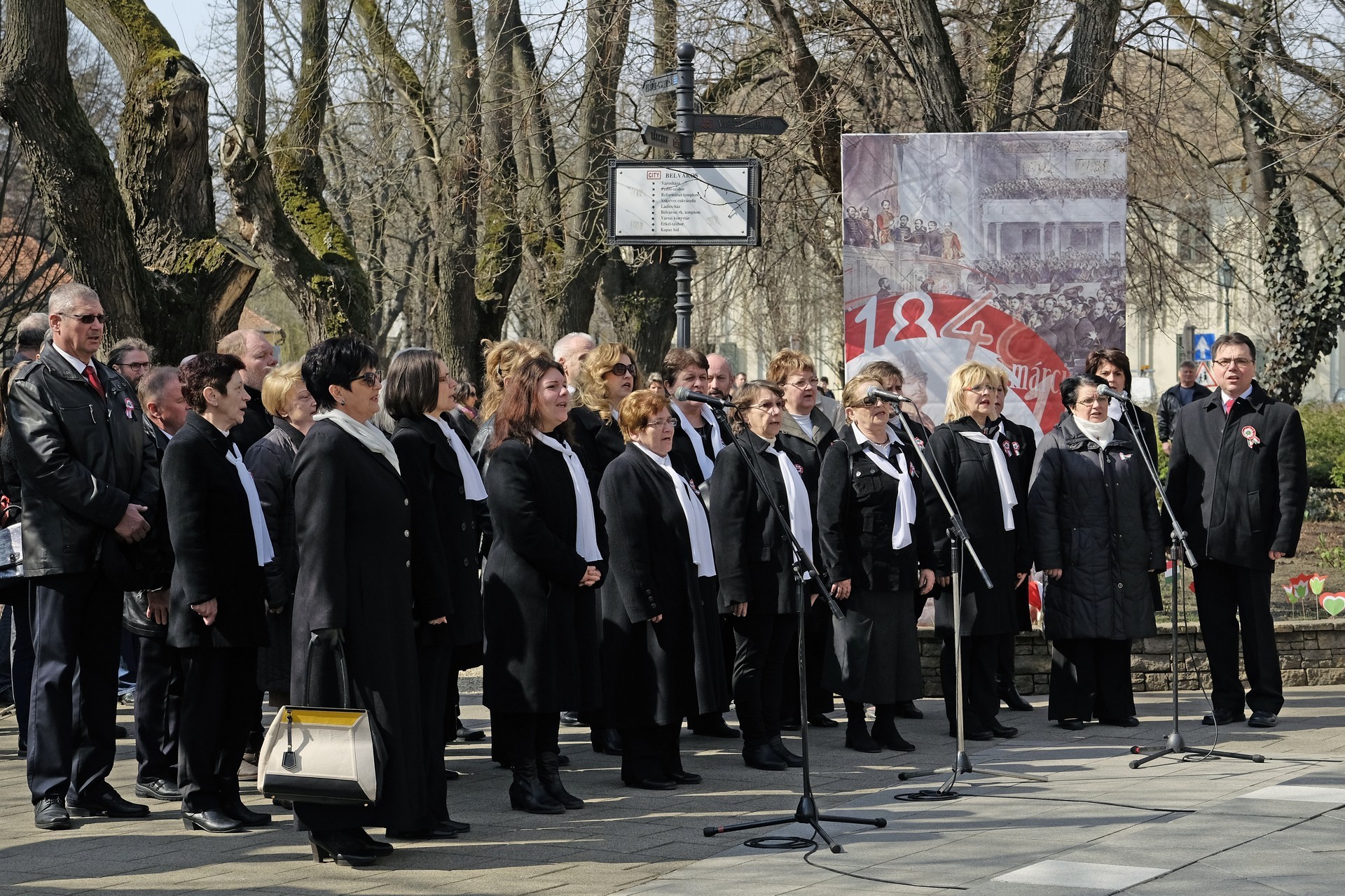 A város elöljárói, Görgényi Ernő polgármester, Kónya István és Alt Norbert alpolgármesterek mellett számos civil ünneplő is tiszteletét fejezte ki nemzetünk nagyjai előtt az 1848–49-es forradalom és szabadságharc 169. gyulai évfordulóján a Petőfi-szobornál, ahol az Erkel Ferenc Vegyeskar adta elő a Himnuszt.