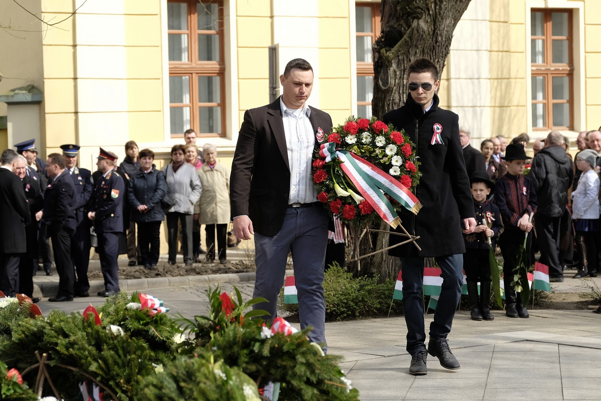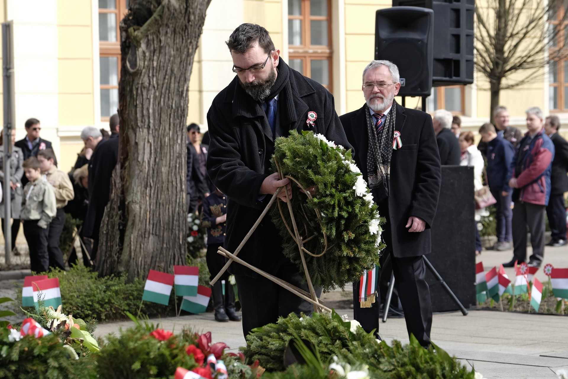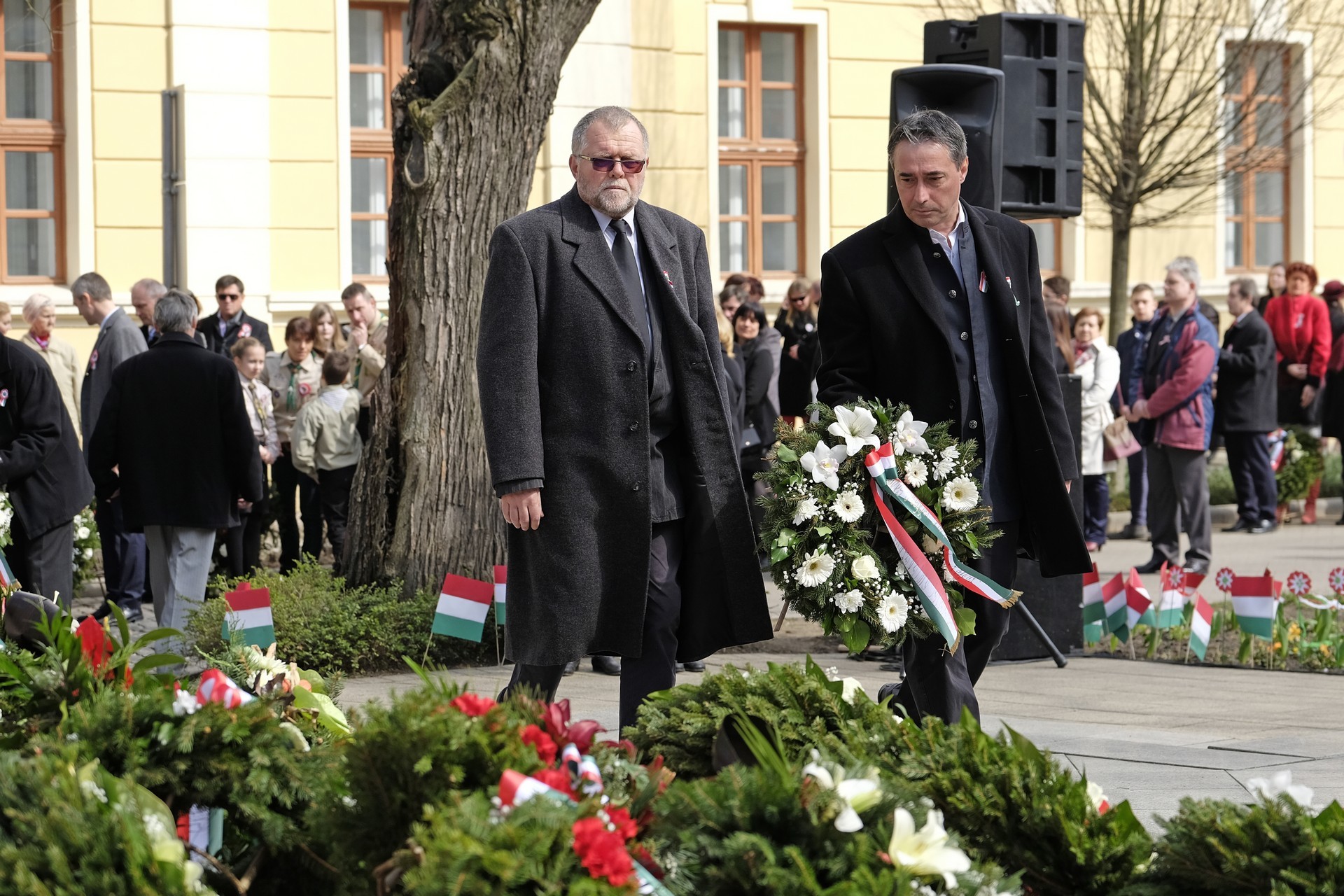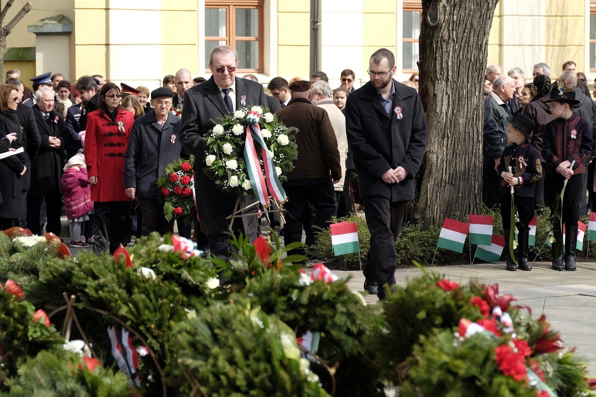 Viseljük büszkén azt az eszmét, amit a márciusi ifjak ránk hagyományoztak – hangsúlyozta ünnepi beszédében Hajdú András felvidéki hadtörténész Gyula város önkormányzatának Petőfi térre szervezett megemlékezésén.