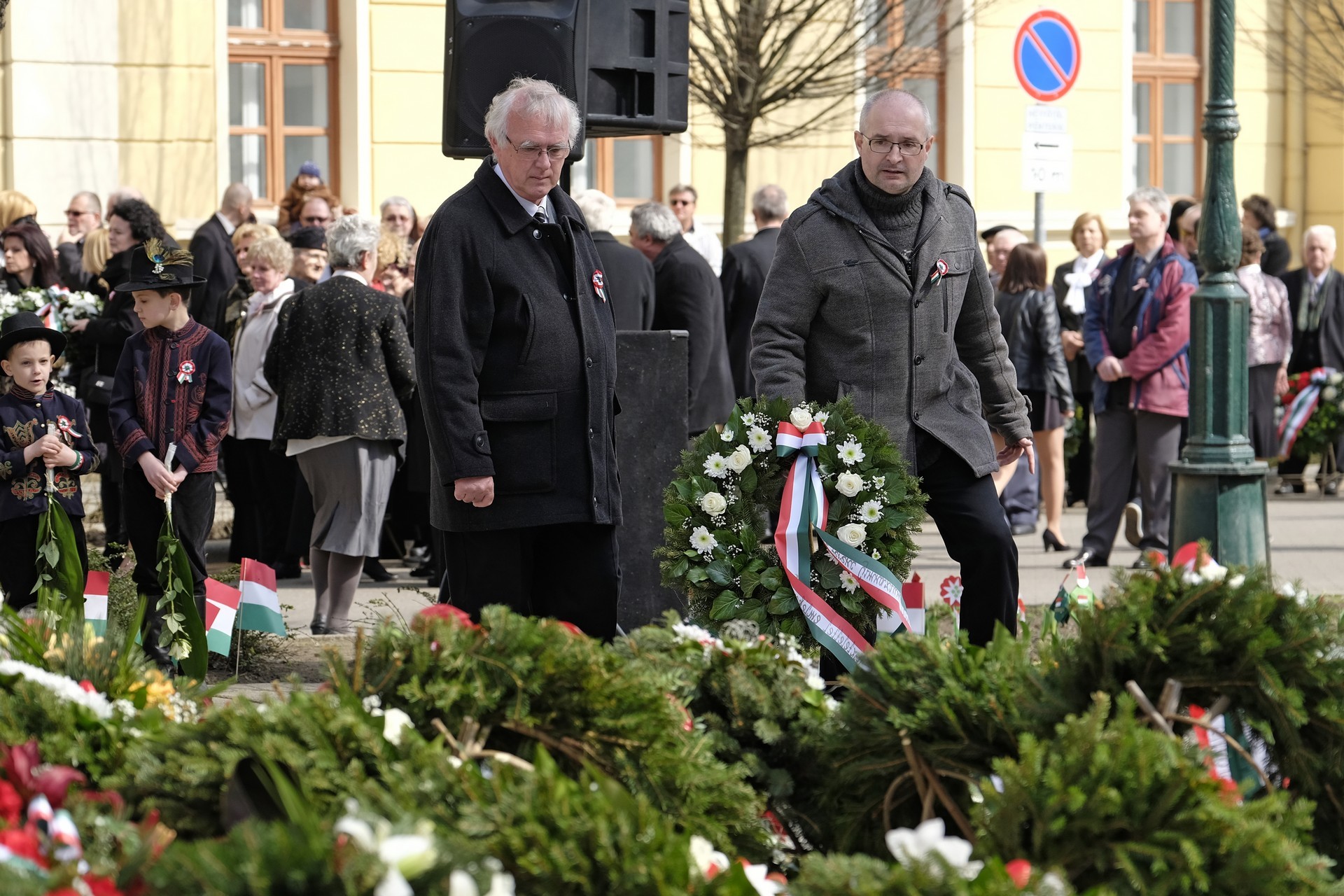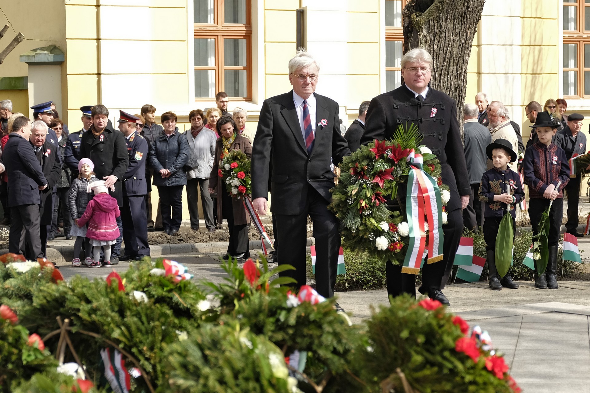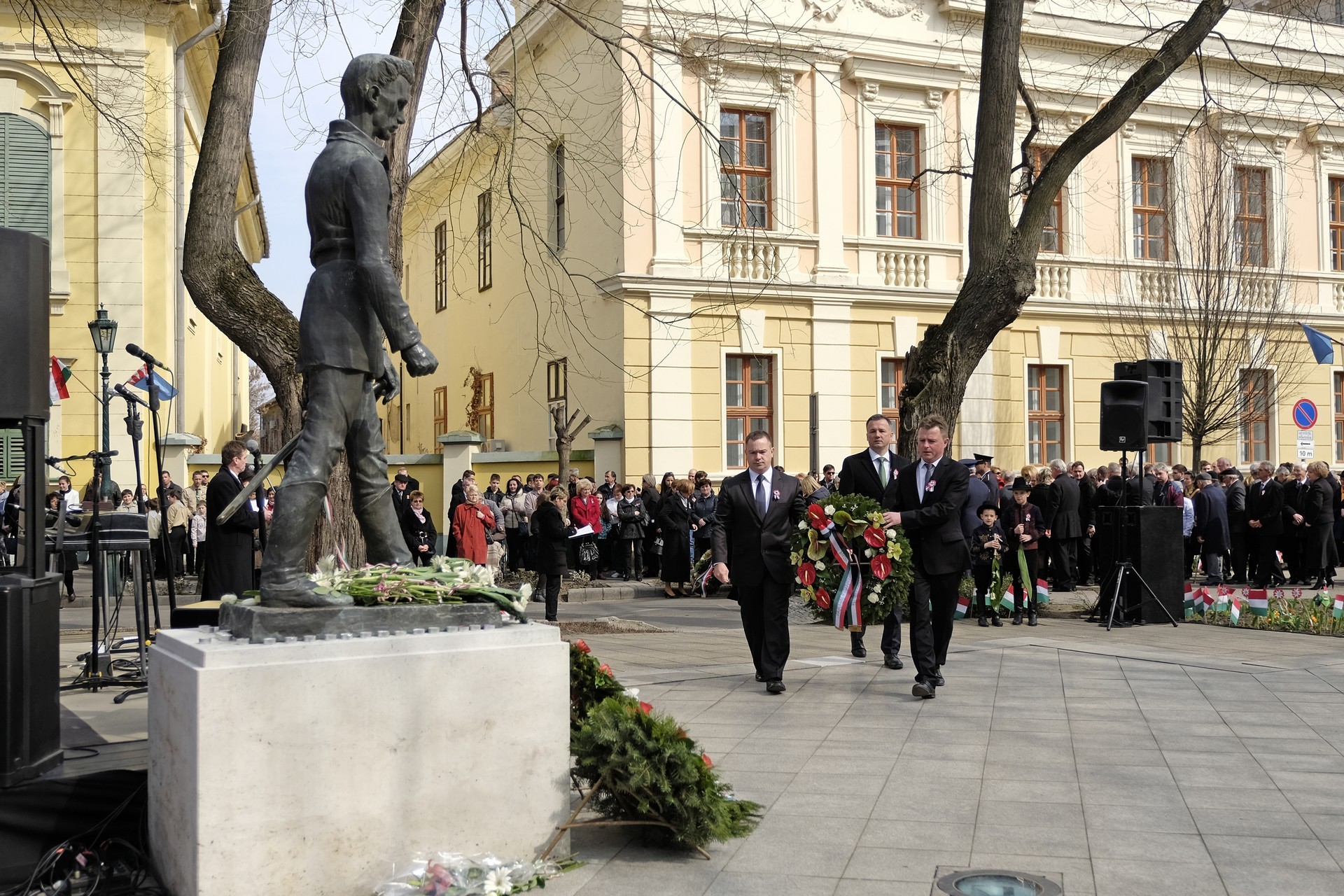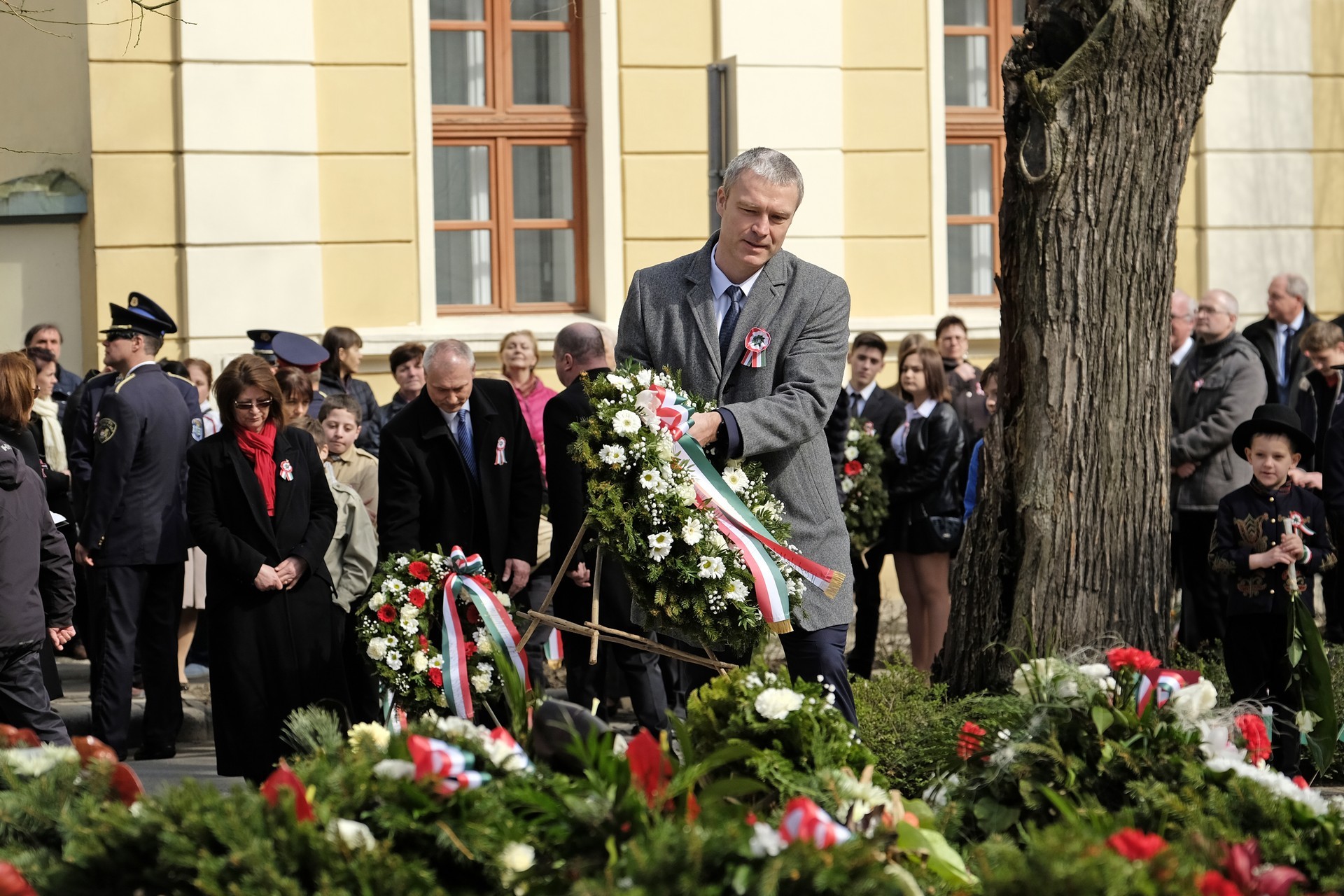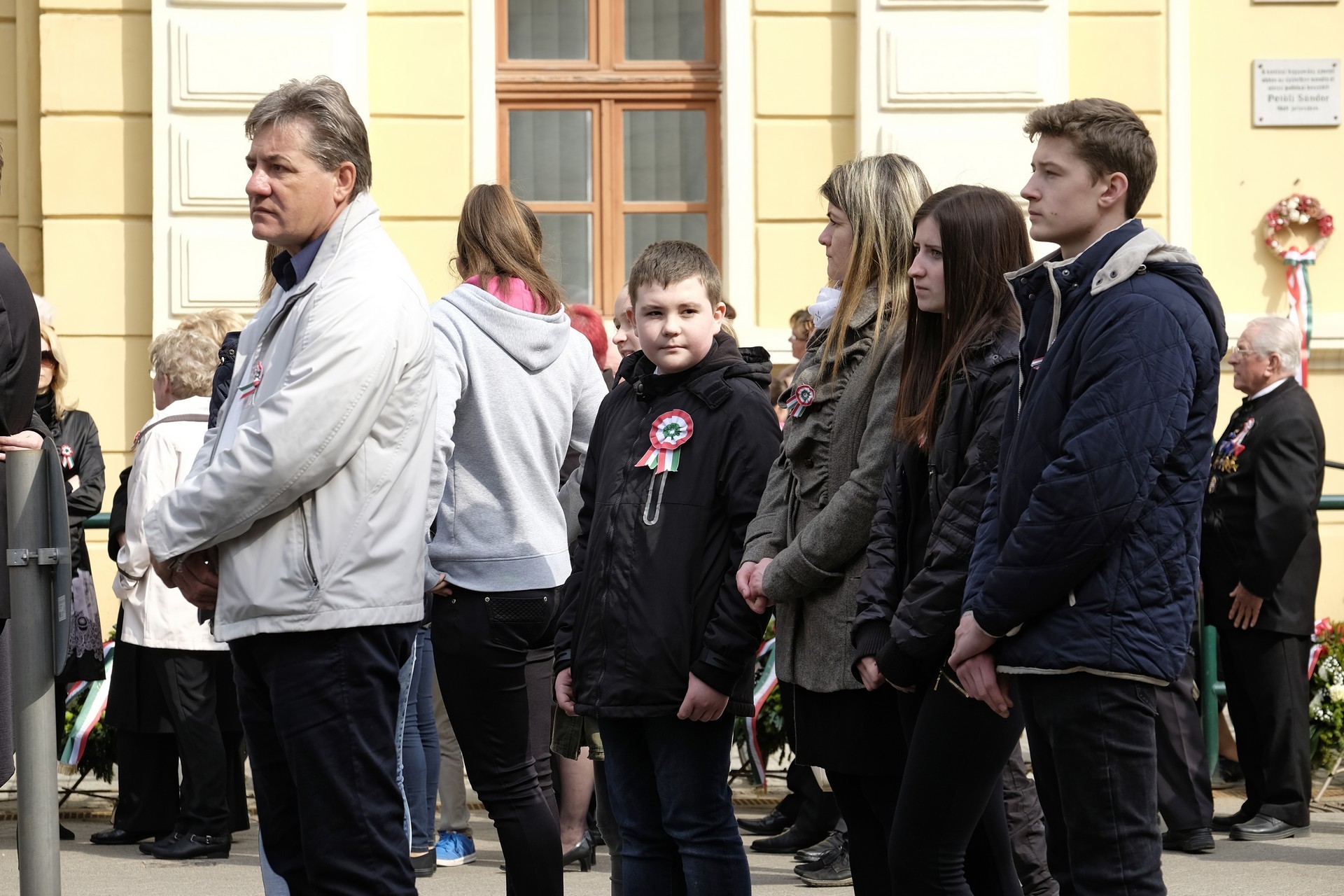 Viseljük büszkén azt az eszmét, amit a márciusi ifjak ránk hagyományoztak – hangsúlyozta ünnepi beszédében Hajdú András felvidéki hadtörténész Gyula város önkormányzatának Petőfi térre szervezett megemlékezésén.
