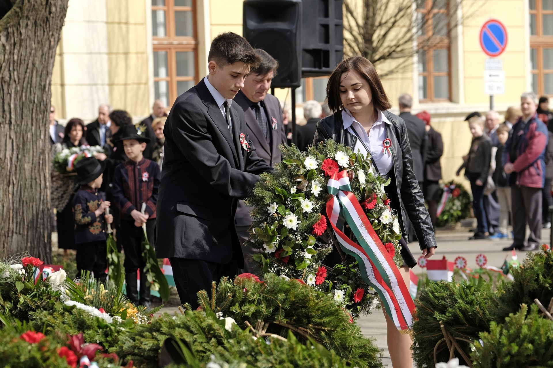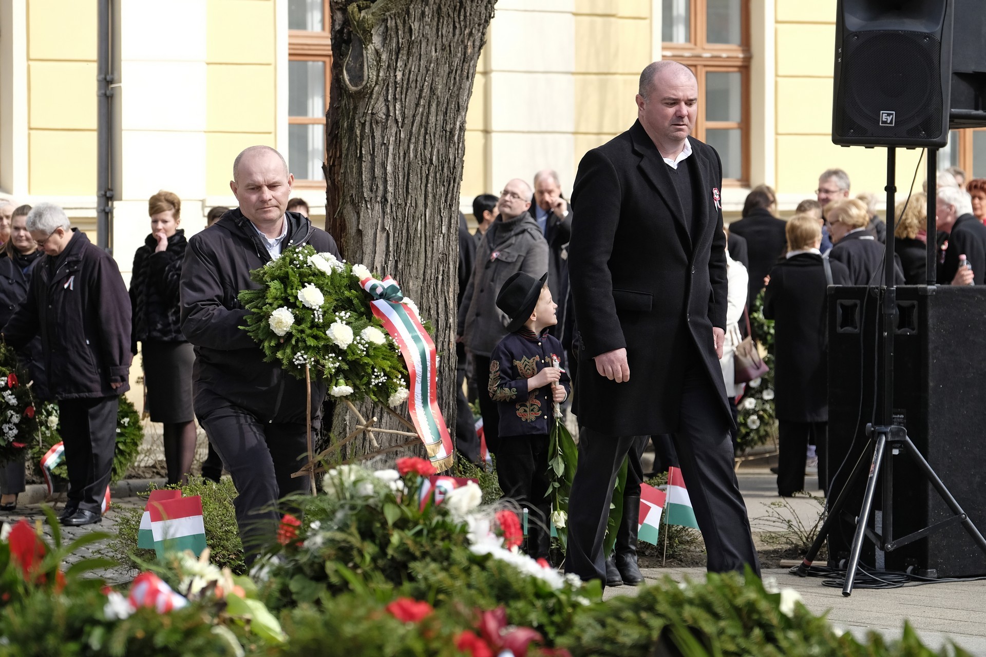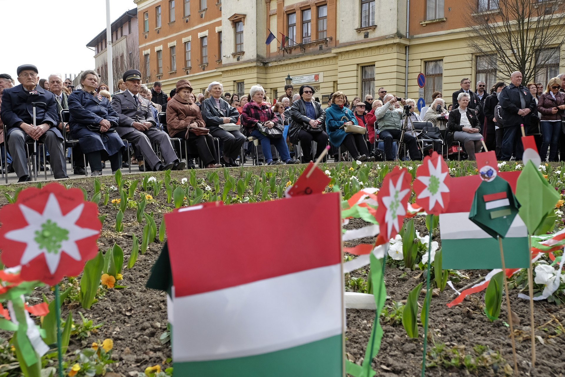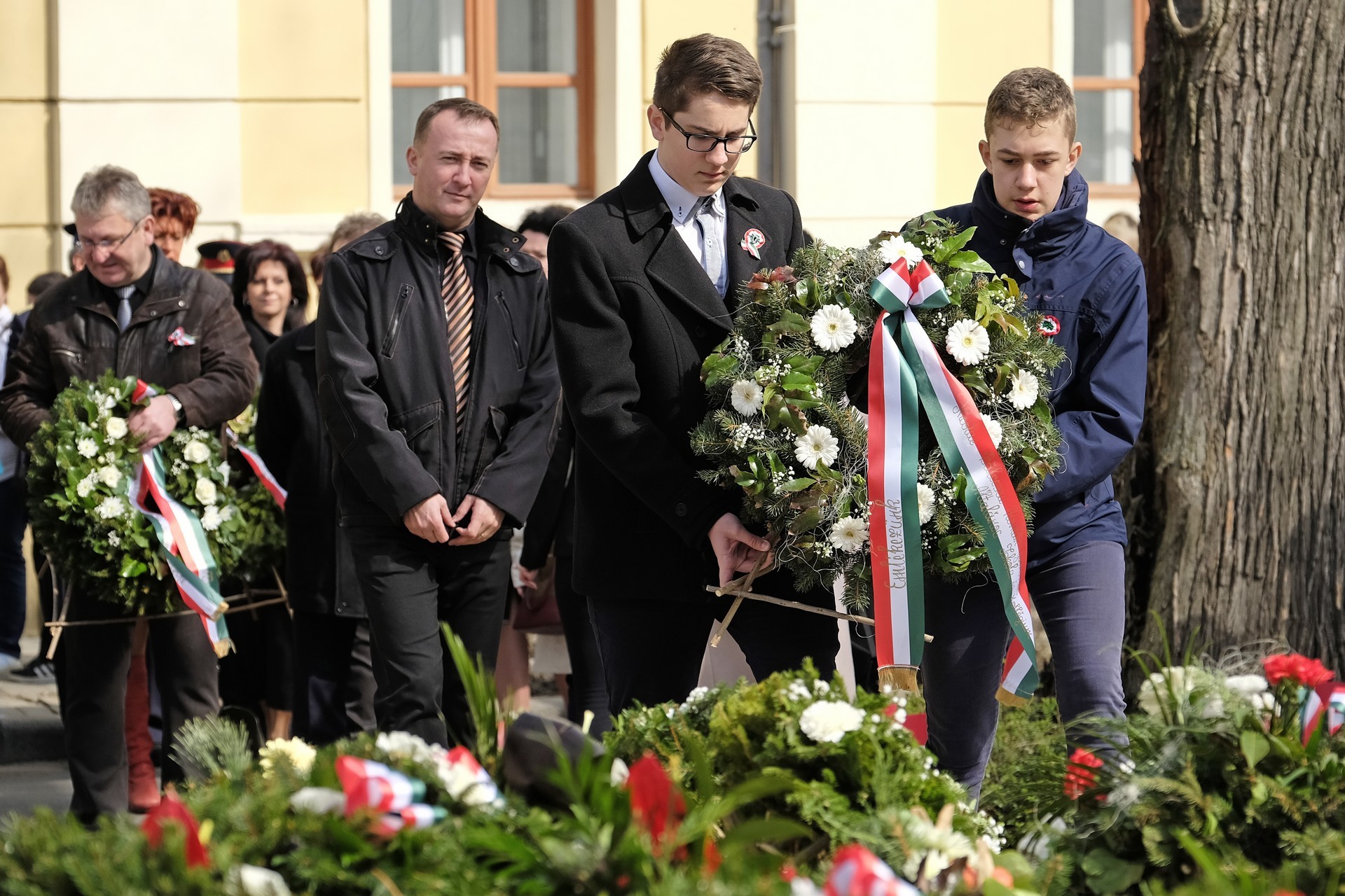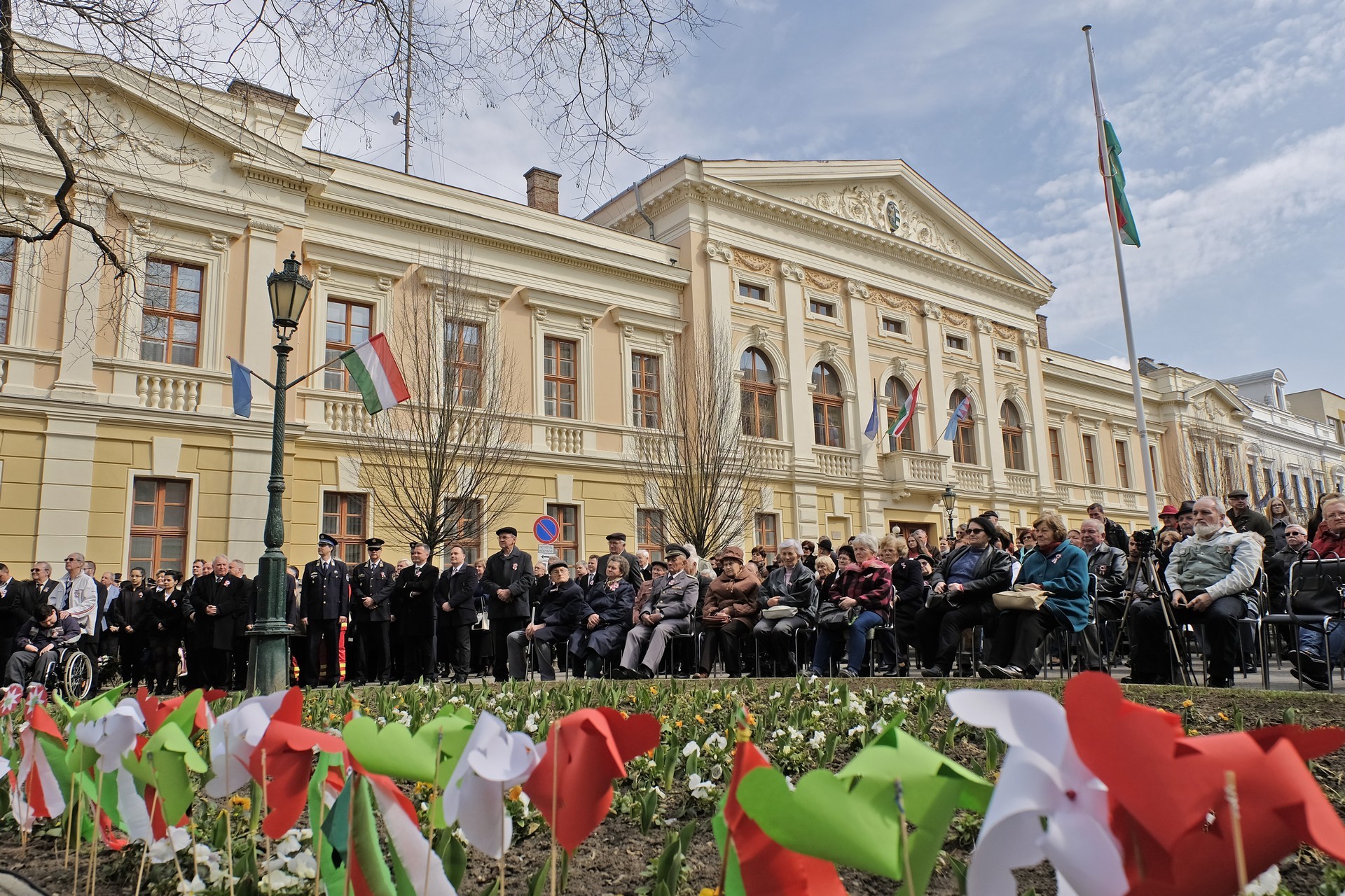 Viseljük büszkén azt az eszmét, amit a márciusi ifjak ránk hagyományoztak – hangsúlyozta ünnepi beszédében Hajdú András felvidéki hadtörténész Gyula város önkormányzatának Petőfi térre szervezett megemlékezésén.
