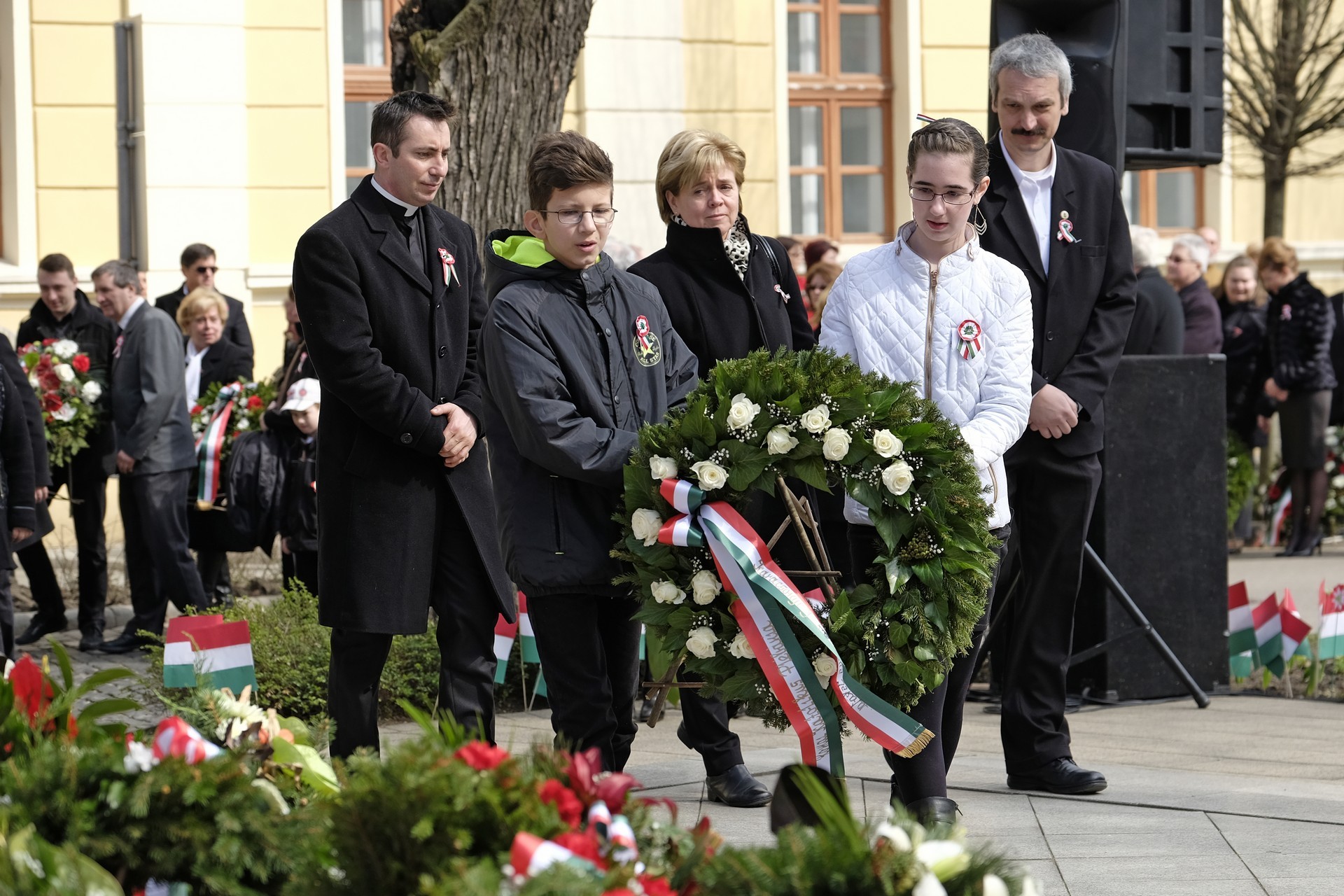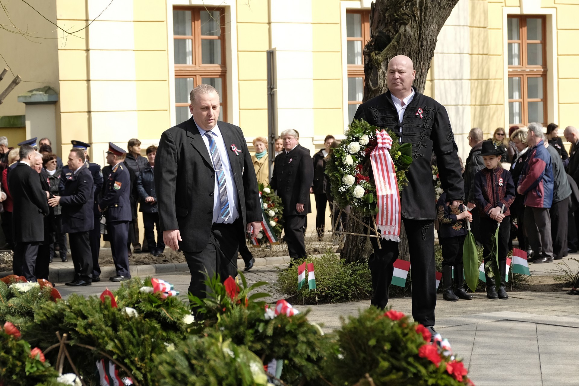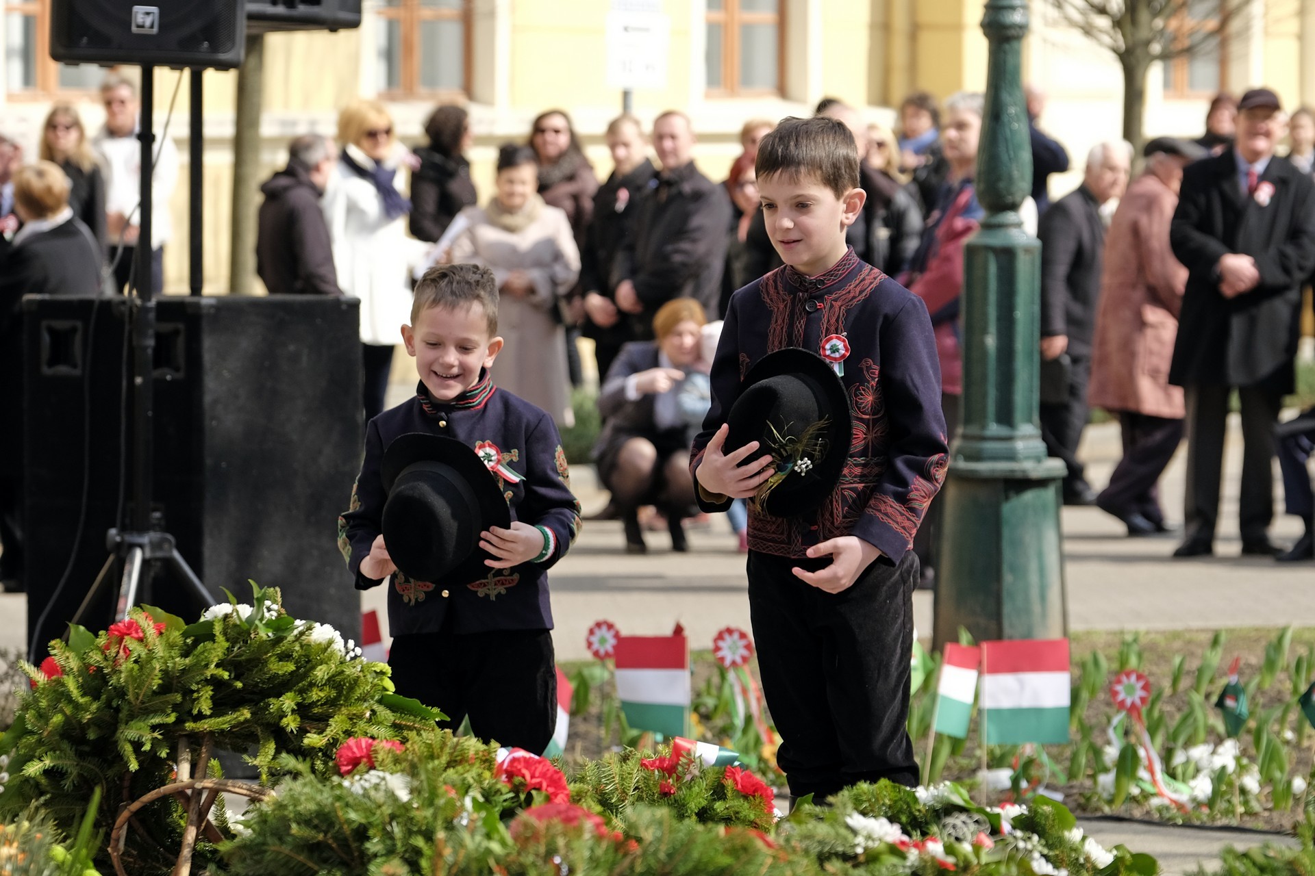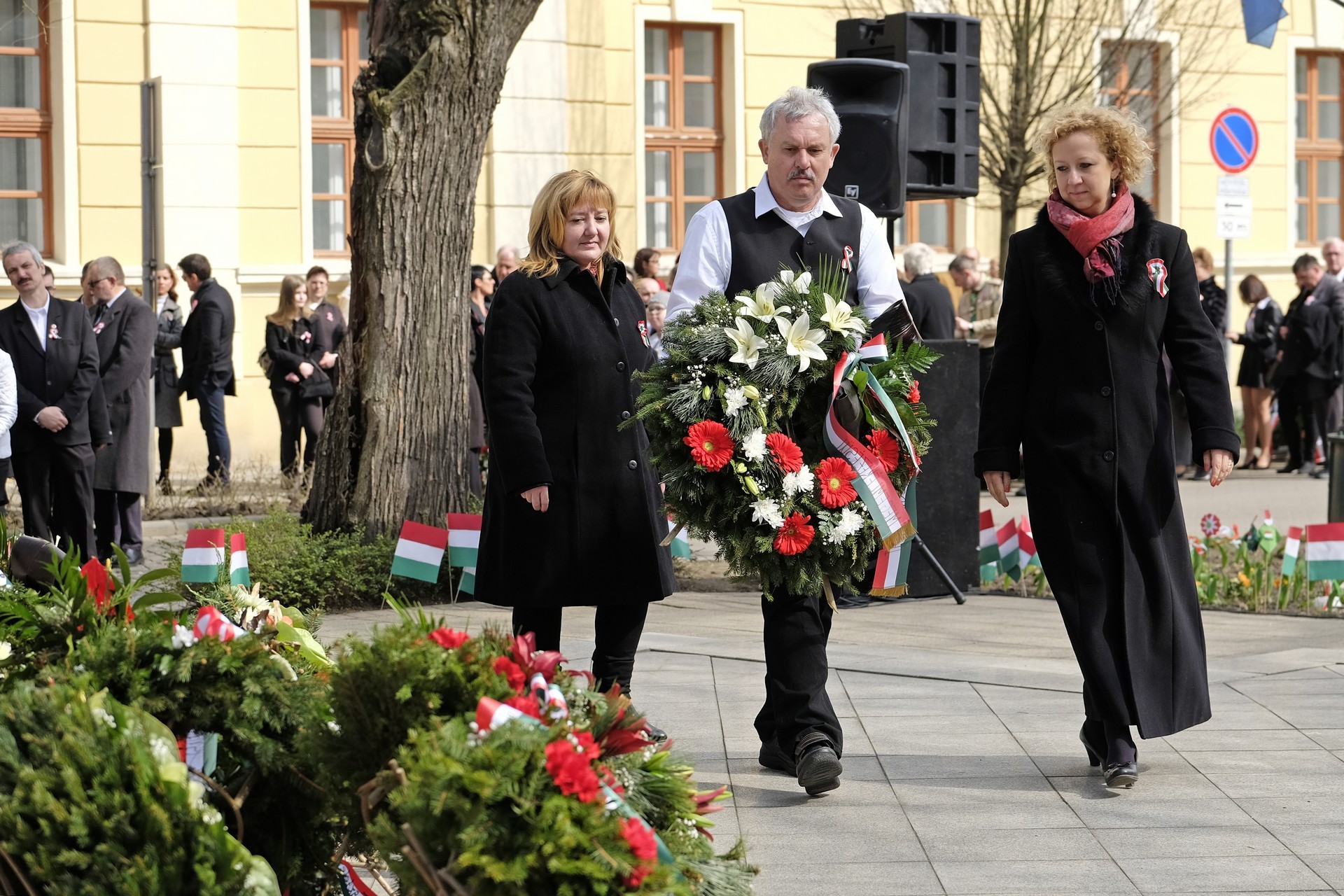 Viseljük büszkén azt az eszmét, amit a márciusi ifjak ránk hagyományoztak – hangsúlyozta ünnepi beszédében Hajdú András felvidéki hadtörténész Gyula város önkormányzatának Petőfi térre szervezett megemlékezésén.