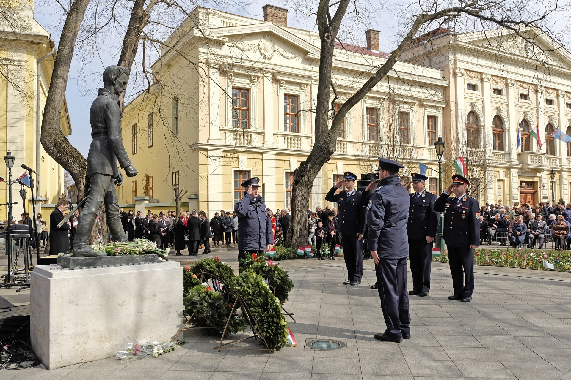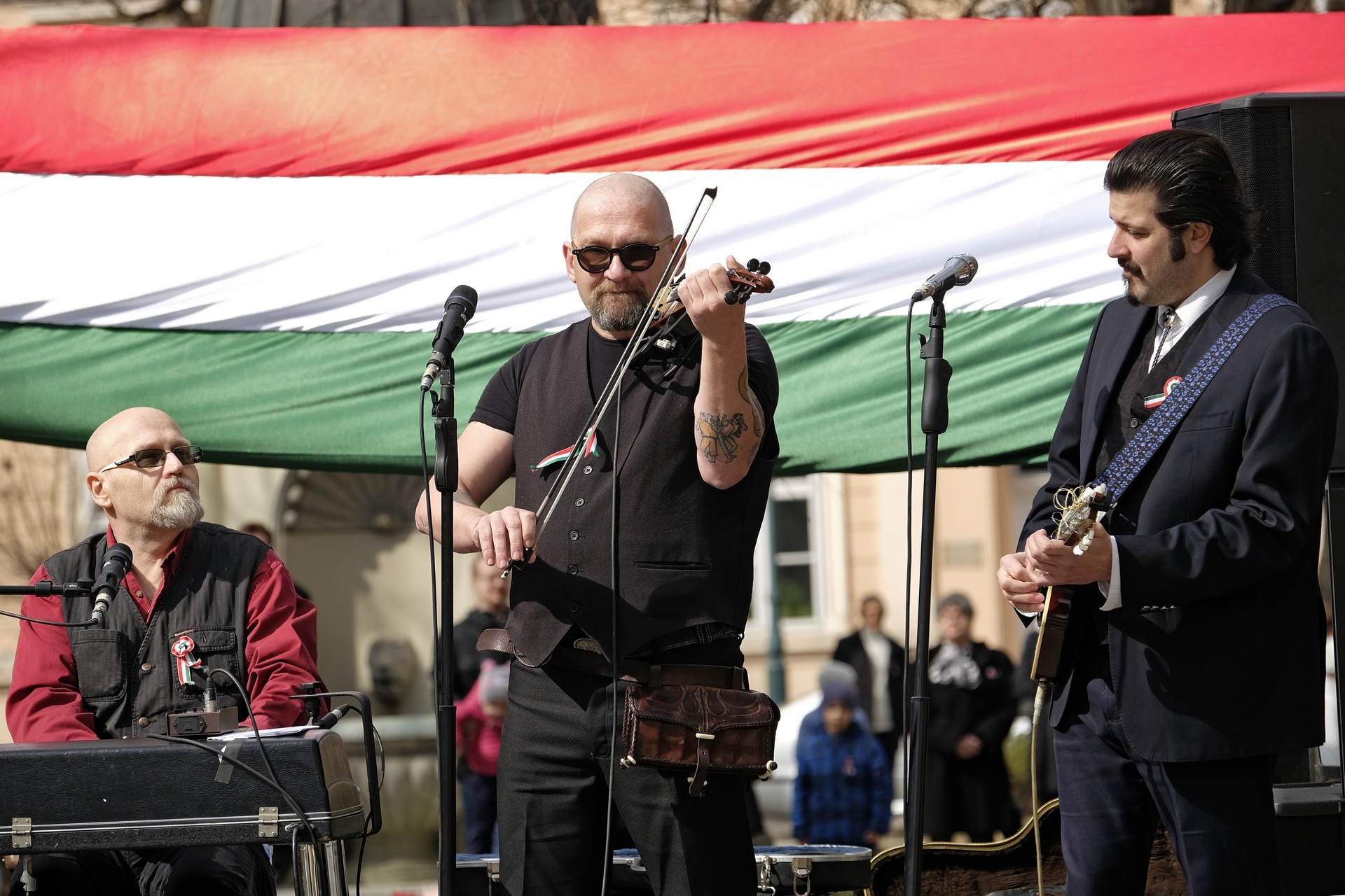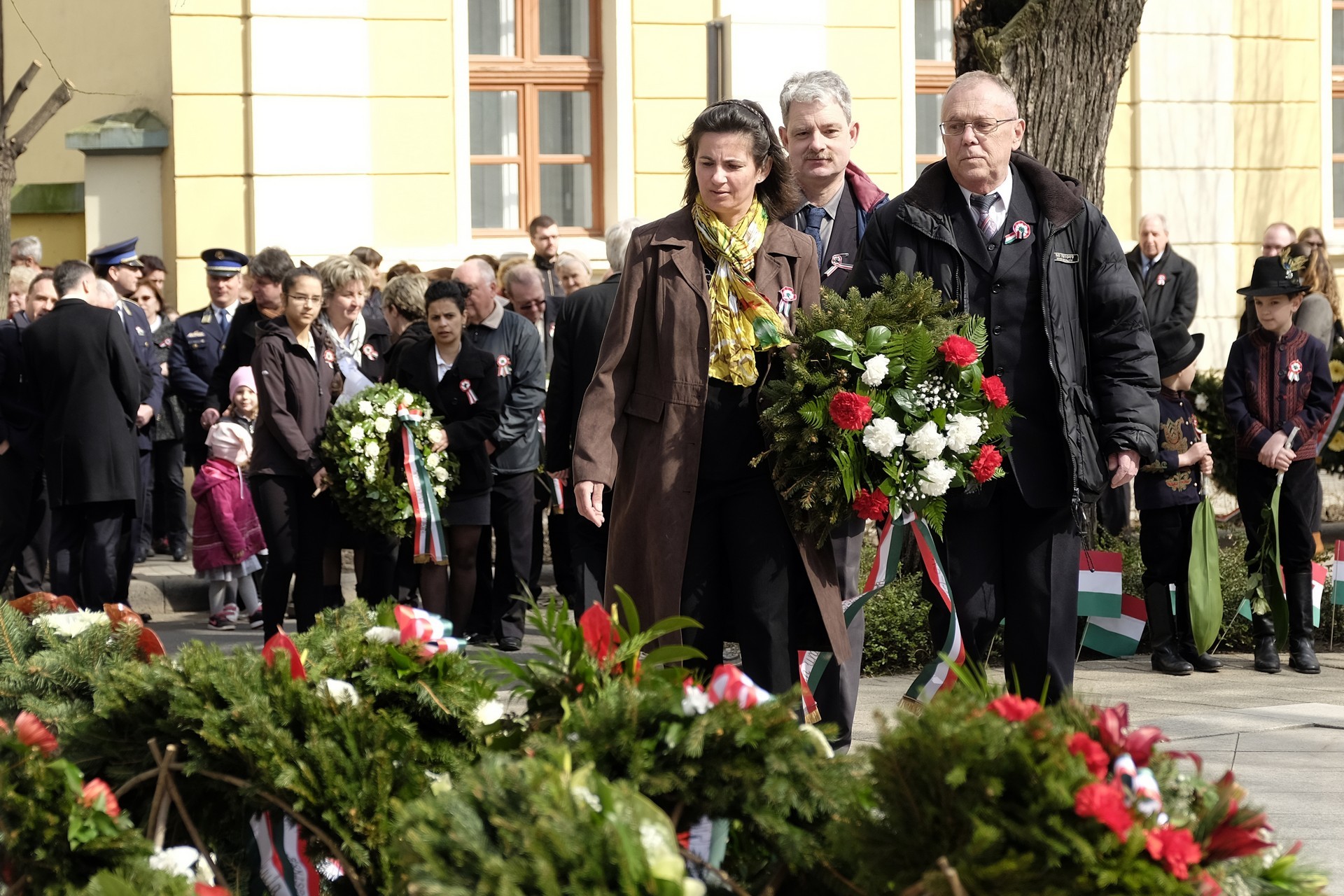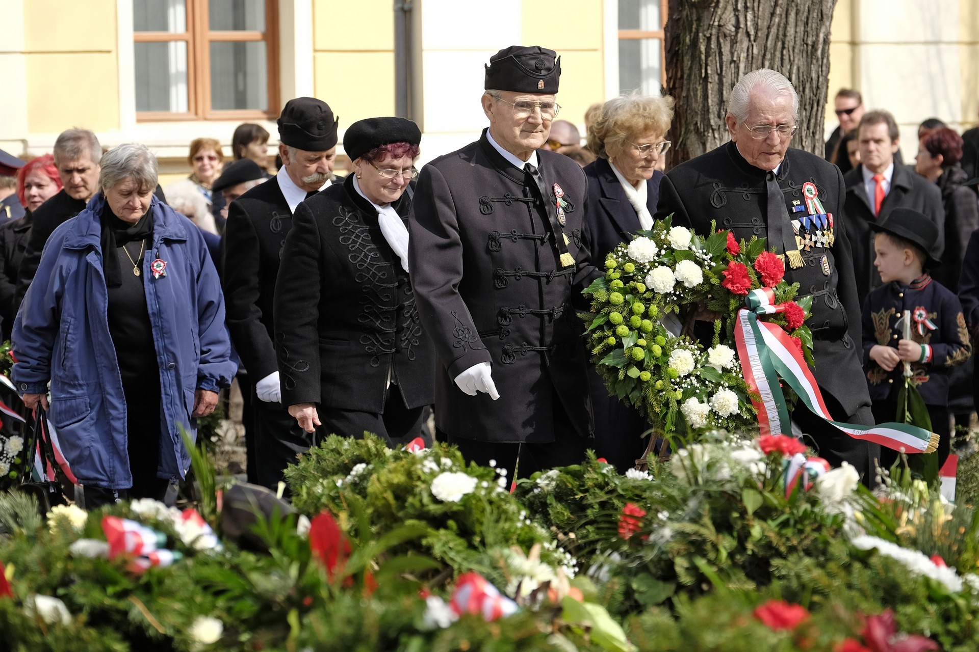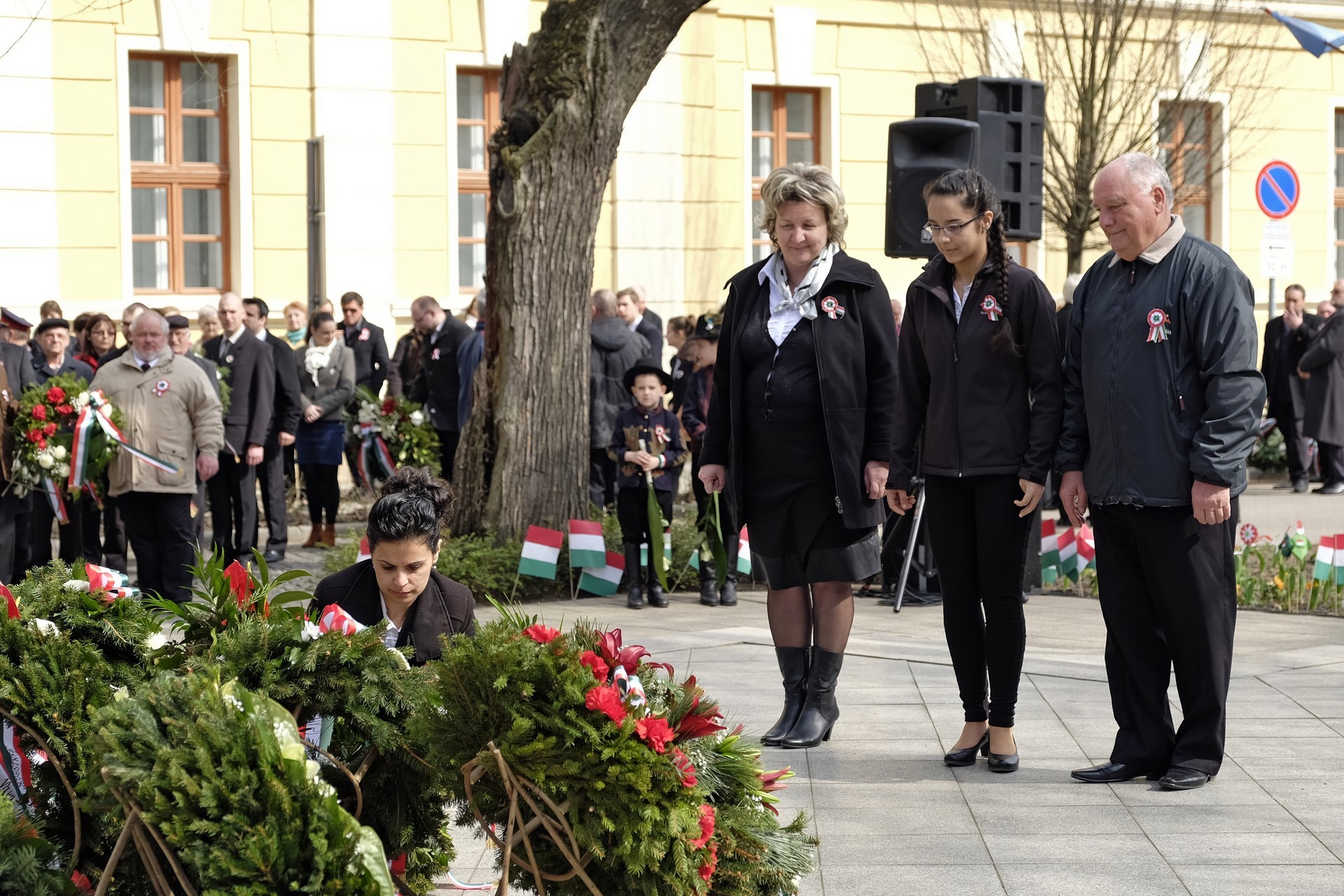 Viseljük büszkén azt az eszmét, amit a márciusi ifjak ránk hagyományoztak – hangsúlyozta ünnepi beszédében Hajdú András felvidéki hadtörténész Gyula város önkormányzatának Petőfi térre szervezett megemlékezésén.