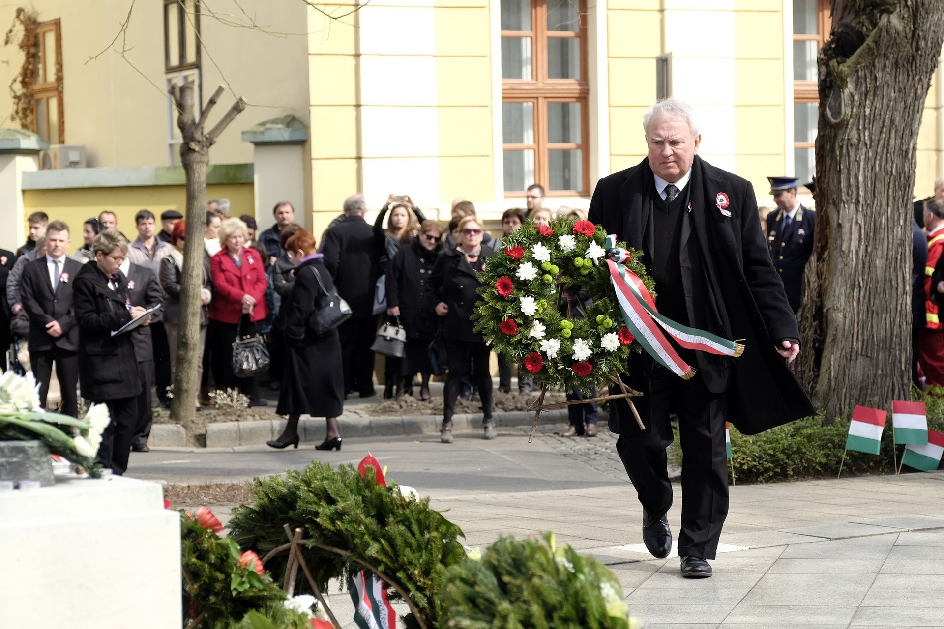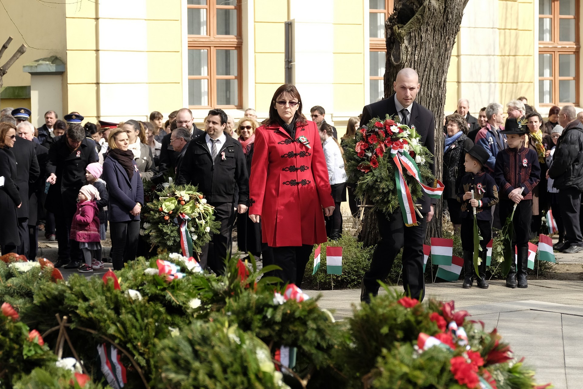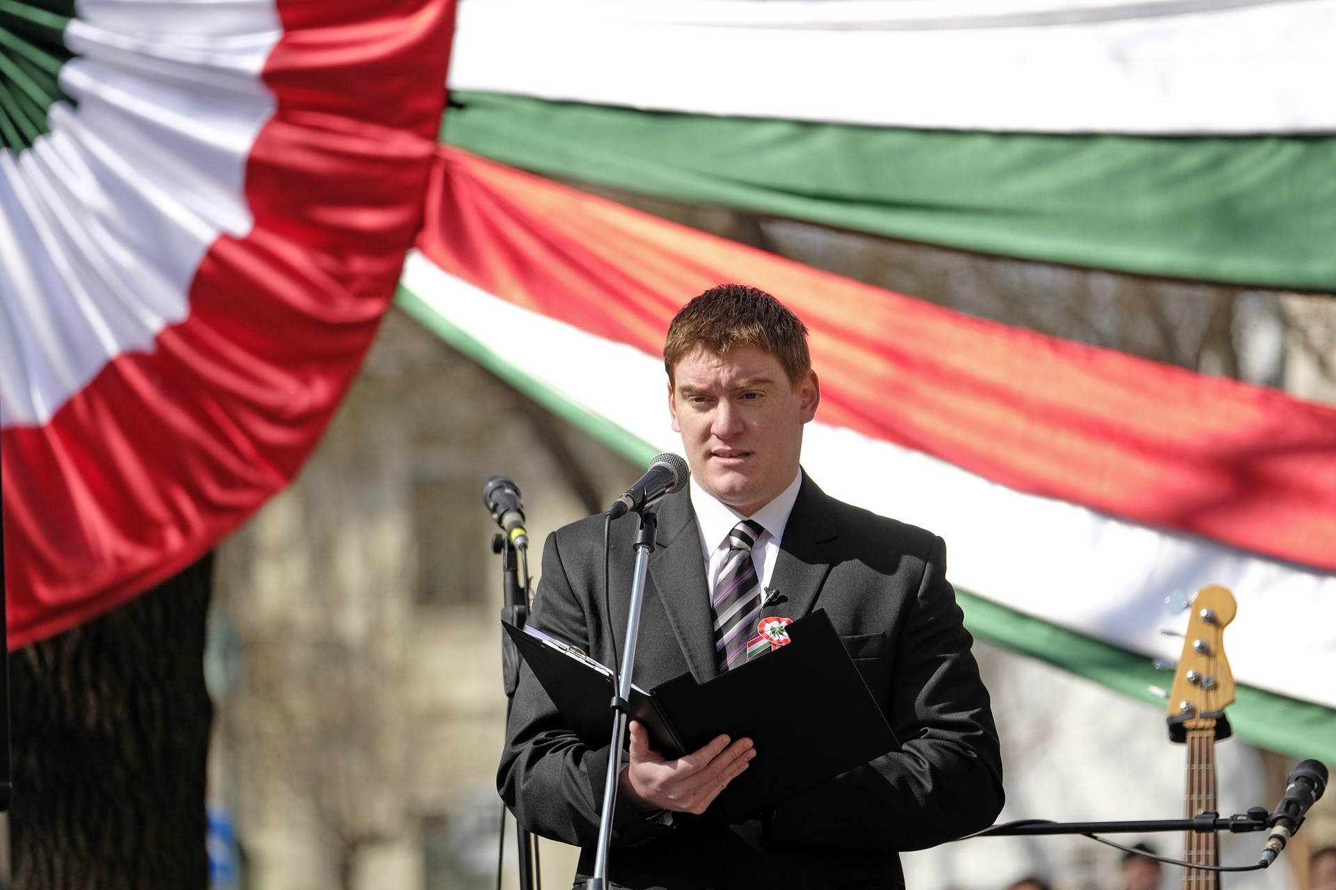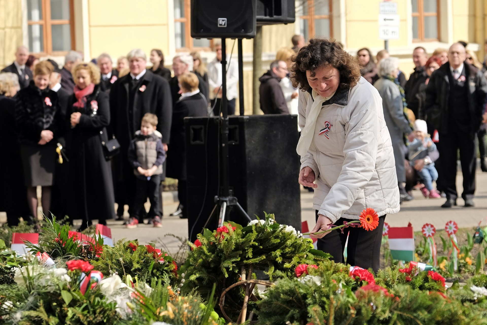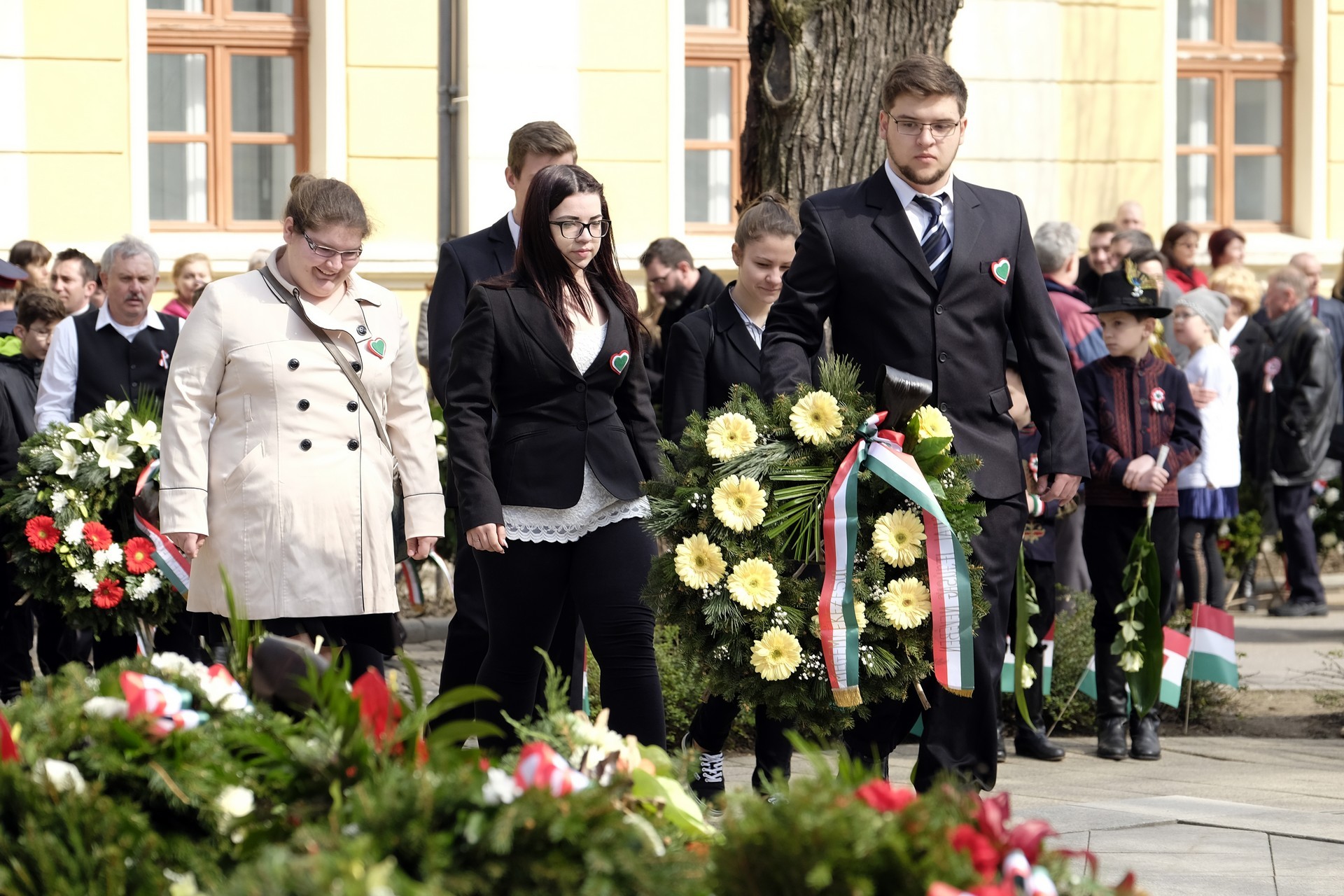 Viseljük büszkén azt az eszmét, amit a márciusi ifjak ránk hagyományoztak – hangsúlyozta ünnepi beszédében Hajdú András felvidéki hadtörténész Gyula város önkormányzatának Petőfi térre szervezett megemlékezésén.