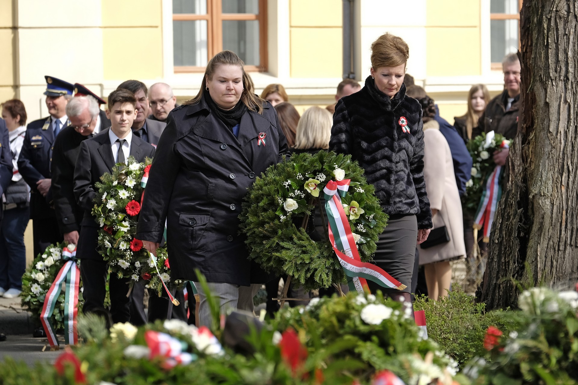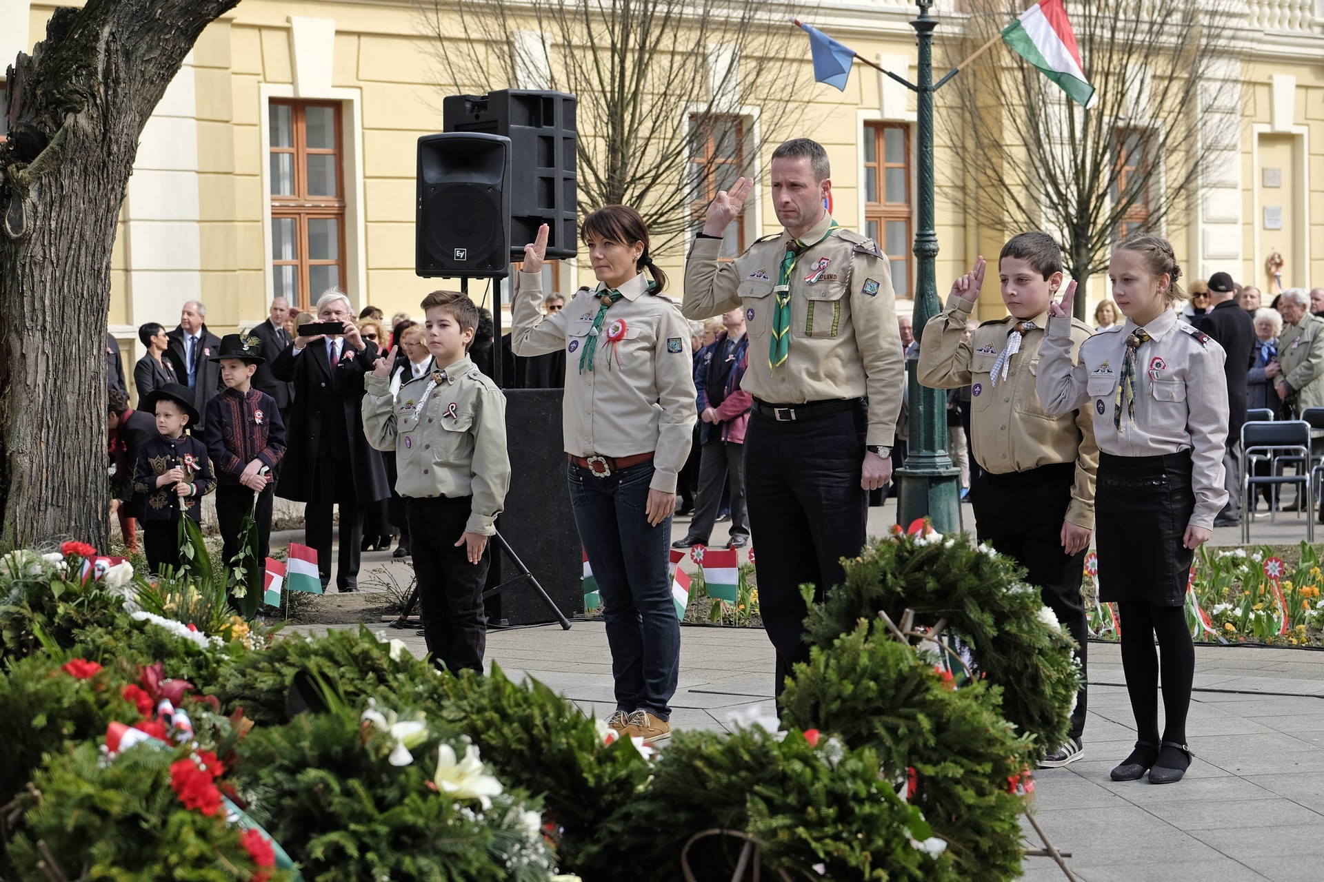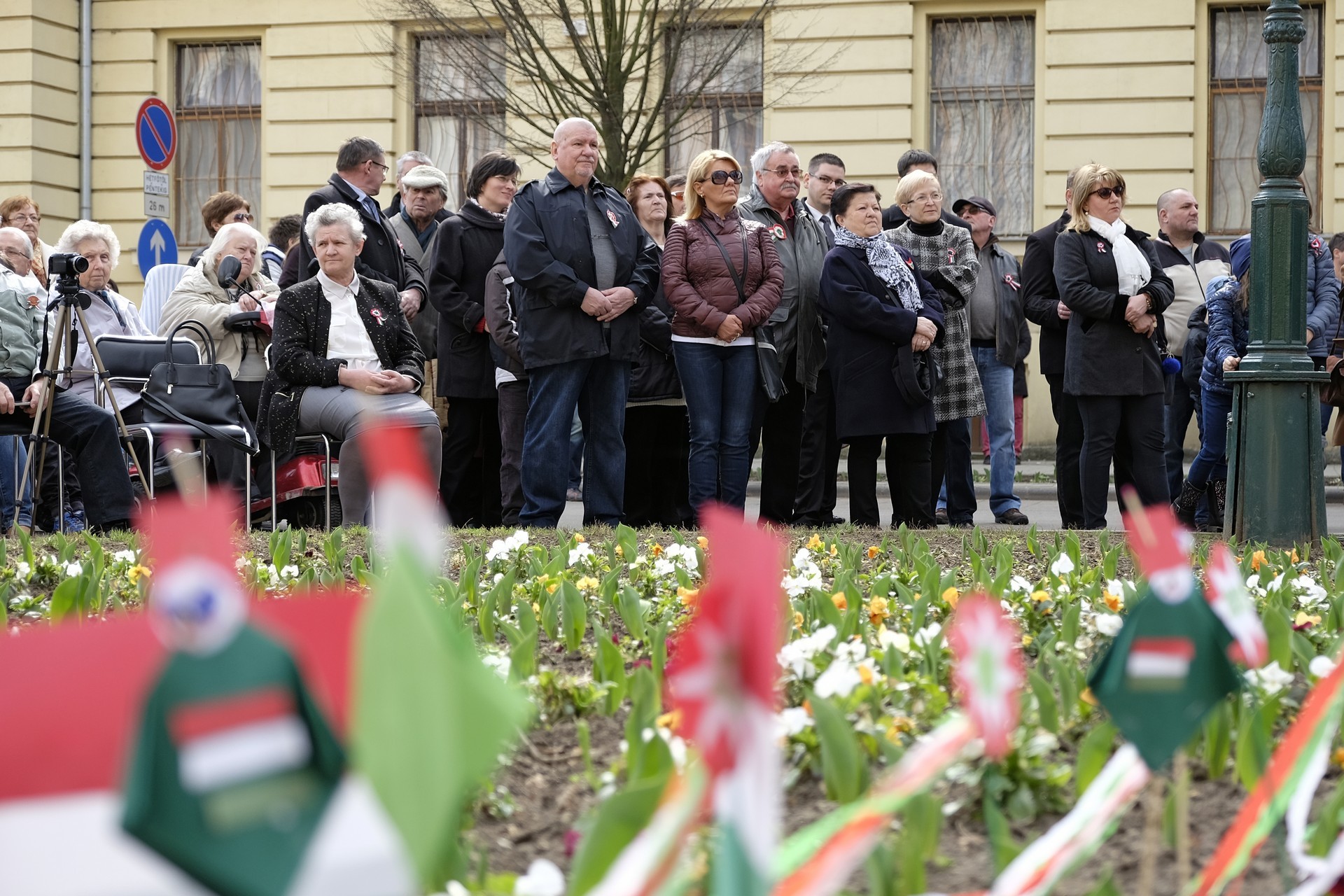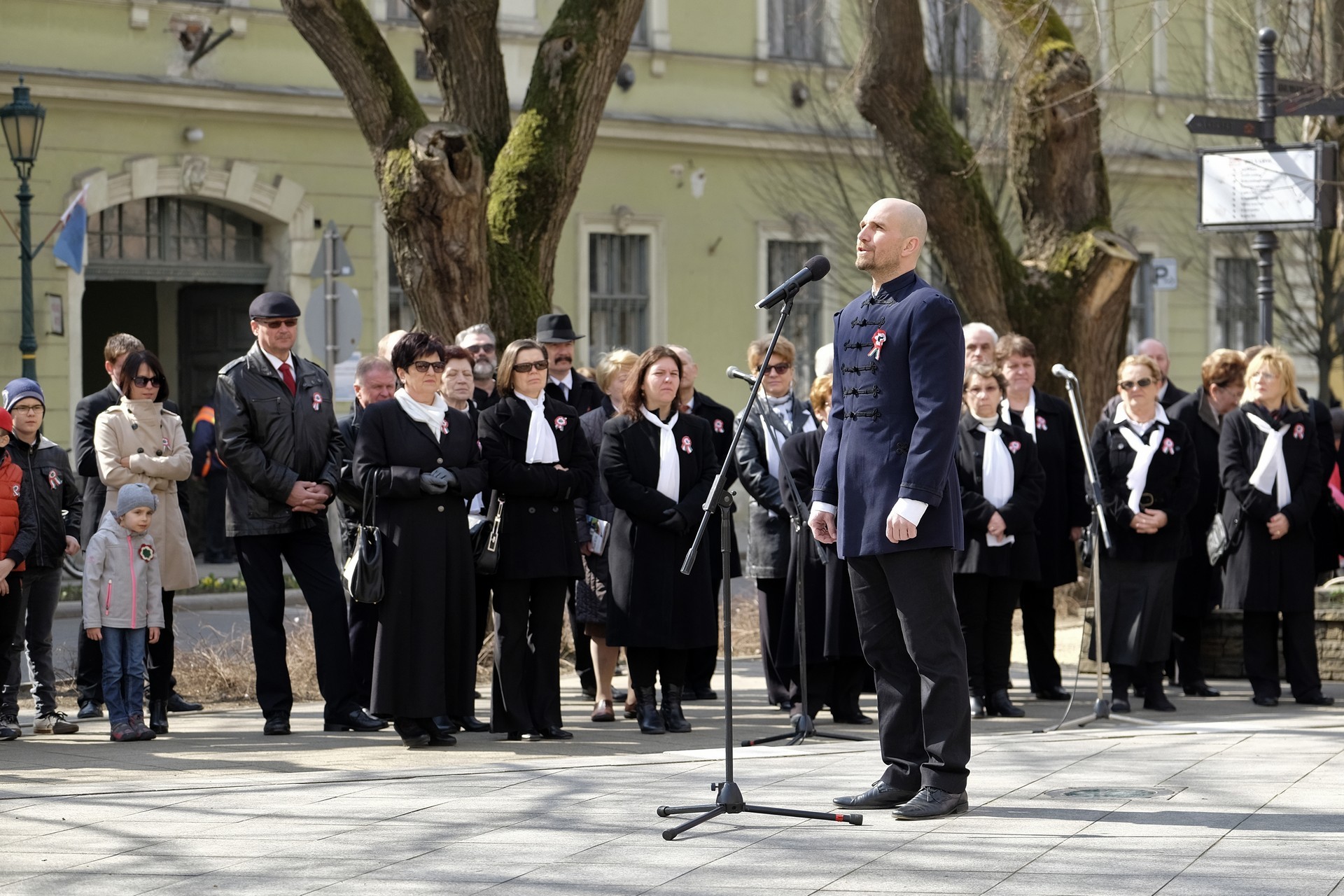Viseljük büszkén azt az eszmét, amit a márciusi ifjak ránk hagyományoztak – hangsúlyozta ünnepi beszédében Hajdú András felvidéki hadtörténész Gyula város önkormányzatának Petőfi térre szervezett megemlékezésén.