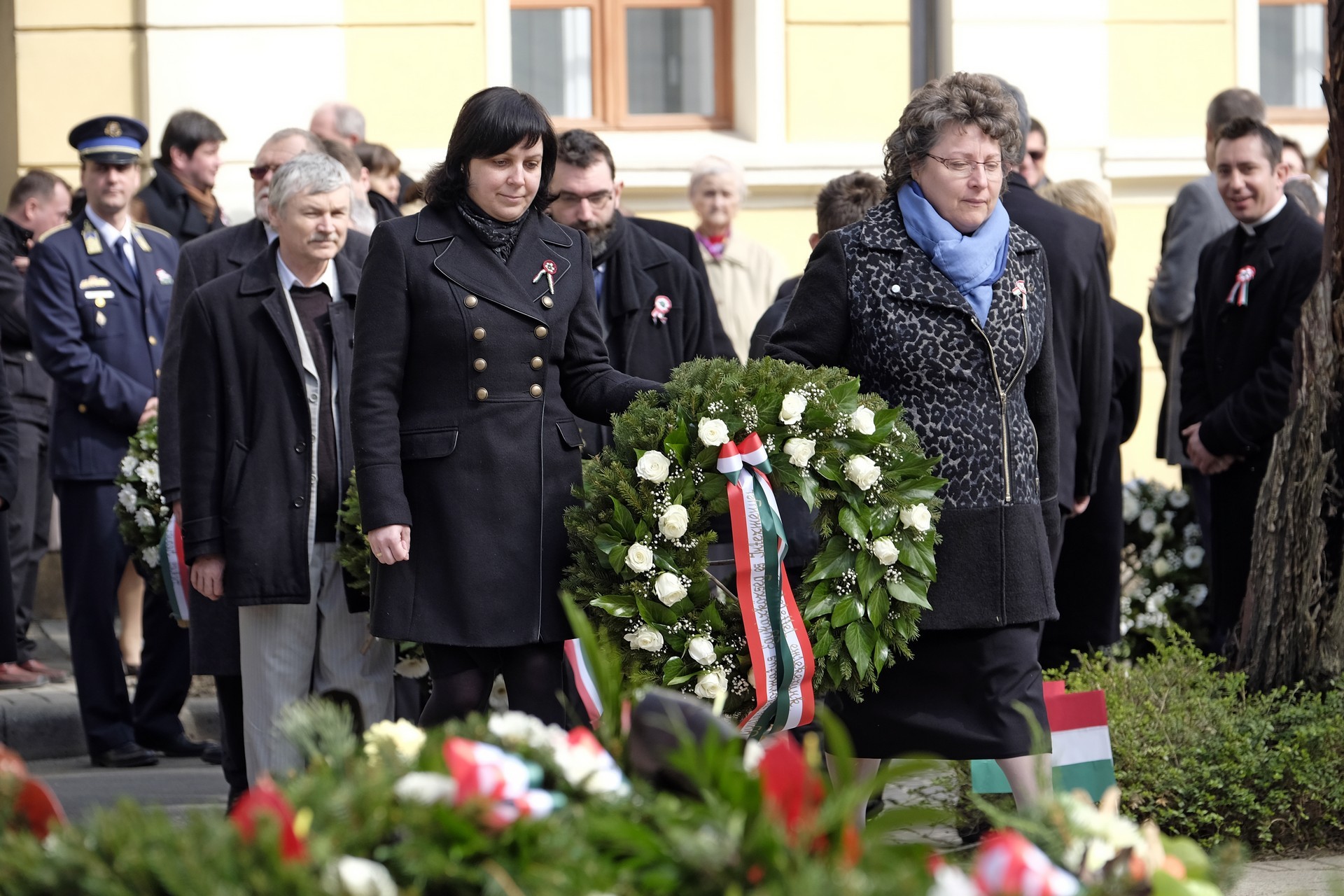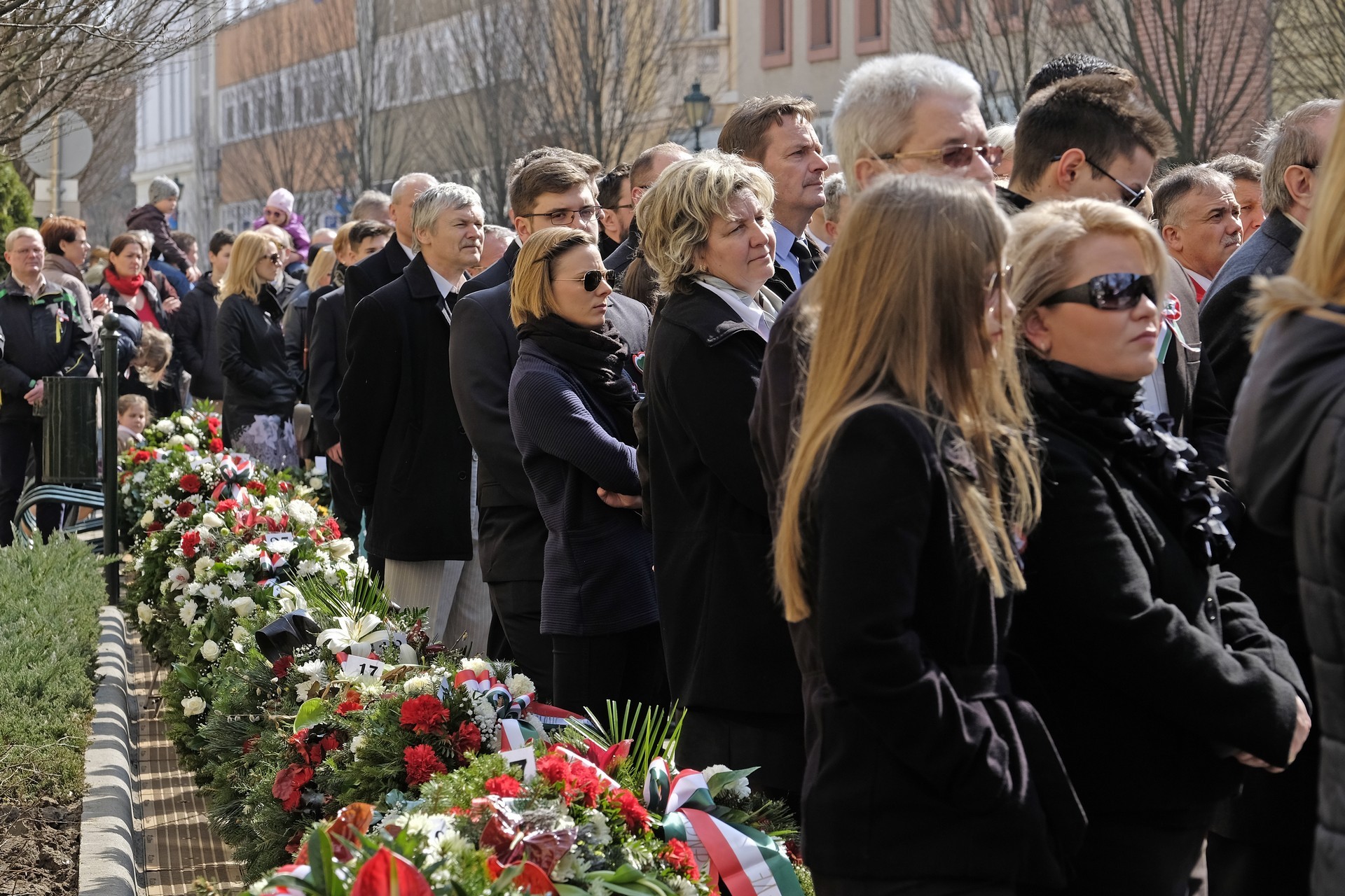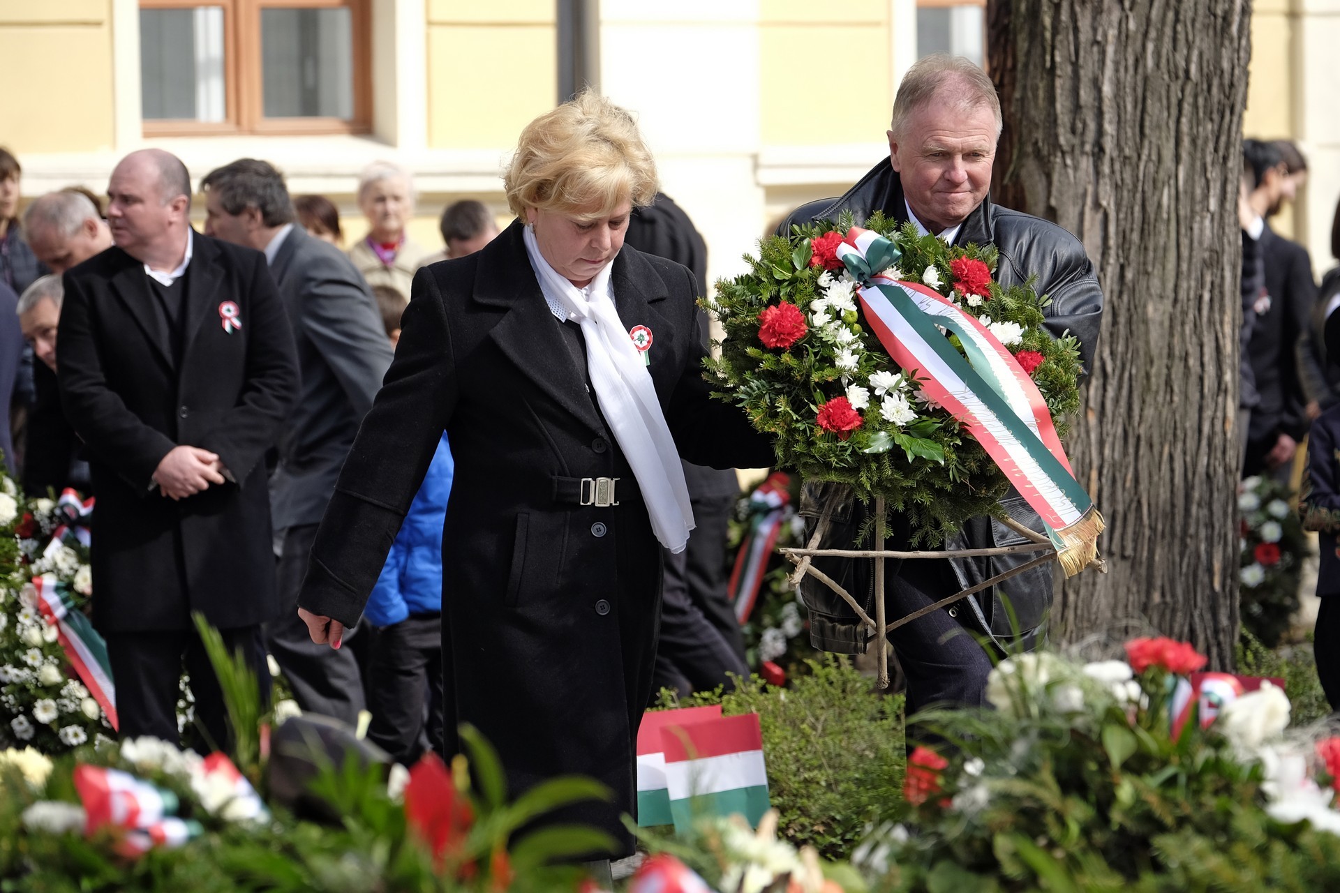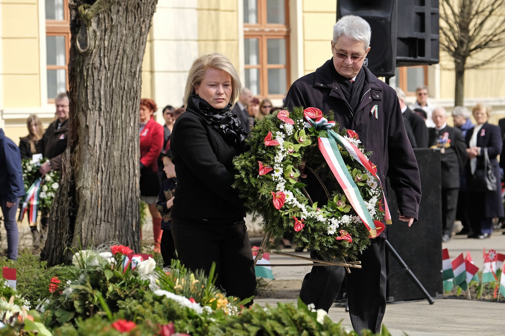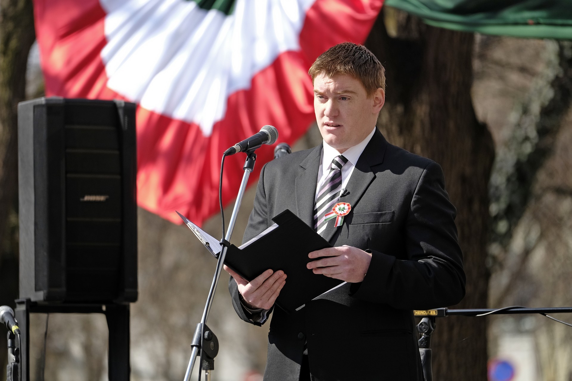 Viseljük büszkén azt az eszmét, amit a márciusi ifjak ránk hagyományoztak – hangsúlyozta ünnepi beszédében Hajdú András felvidéki hadtörténész Gyula város önkormányzatának Petőfi térre szervezett megemlékezésén.