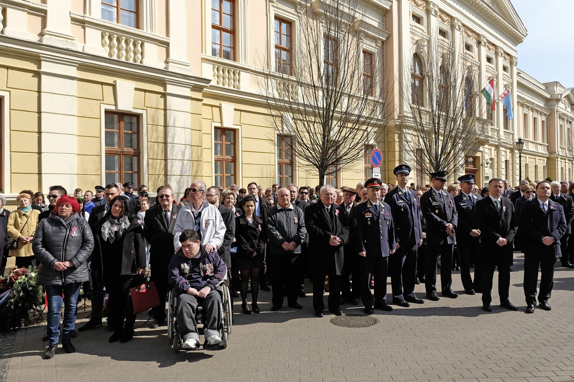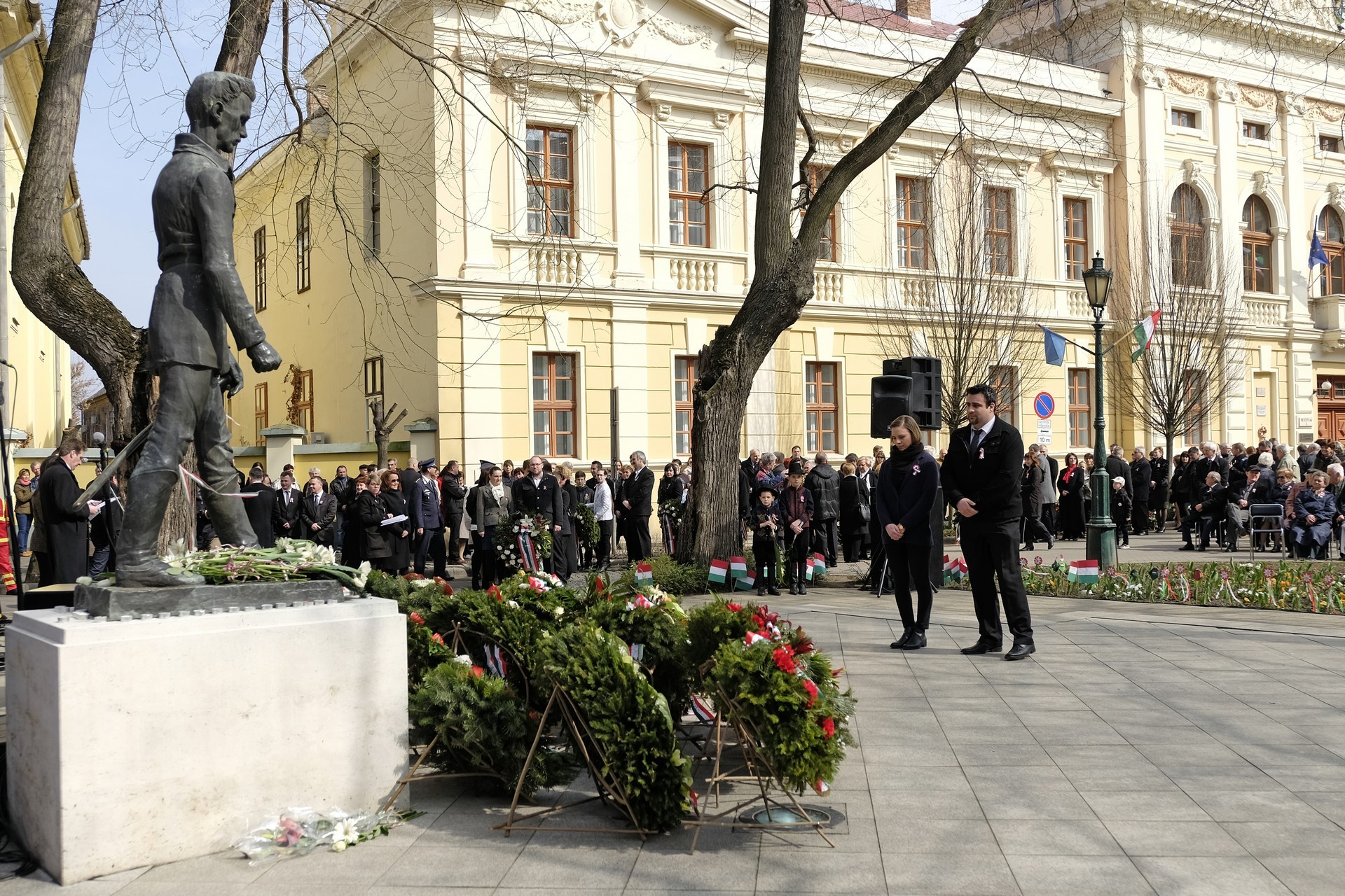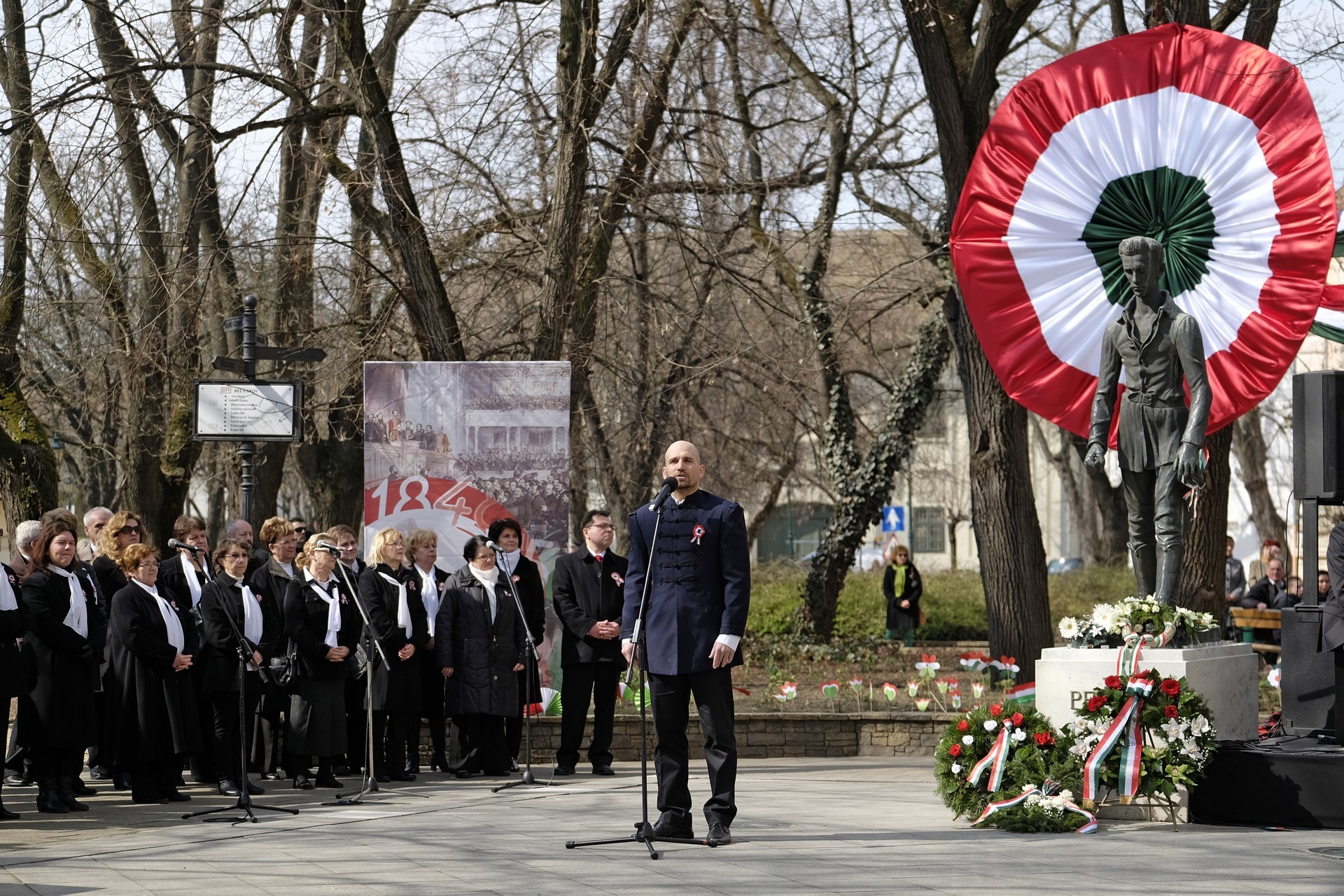 Kiemelte: az 1848-ban megfogalmazódott célok Magyarország összes nemzetiségének érdekeit egyenlő arányban képviselték, ezért mindnyájan a sajátjaiknak érezték, és ezt a forradalomban való részvételükkel ki is fejezték. „Szerencsések vagyunk, hogy ma szabadon ünnepelhetünk, hisz nem volt ez mindig így” – hangsúlyozta Hajdú András, a Nemzeti Közszolgálati Egyetem doktorandusza, visszautalva ezzel a magyar történelem vészkorszakaira.