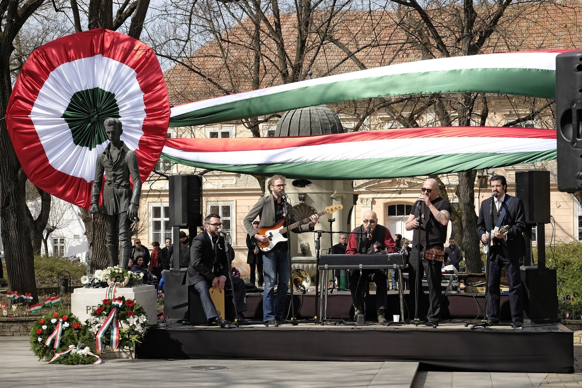 Ferenczy György és a Rackajam zenekar ünnepi műsora a magyar népdalkincsből merített, és alkalomhoz illően a vers és a forradalom kapcsolatára épült fel. A produkciót Beszterczey Attila színművész szavalatai foglalták keretbe. Petőfi szobránál a város valamennyi közhivatalának, egyesületének, egyházának és oktatási intézményének képviselői elhelyezték koszorúikat.