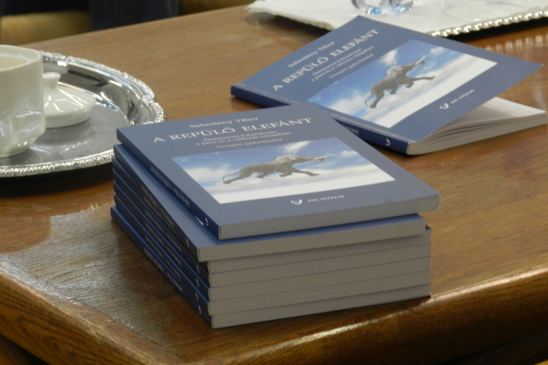 Ezen a ponton érkeztünk el a könyv címadásához, amely A repülő elefánt lett. Sebestény Tibor elmagyarázta, hogy Indiában fához kötözik a kiselefántokat, hogy ne szökjenek el, ezáltal nyilván korlátozott mozgásterük van. Érdekelné őket a „láncon túli” világ, próbálnák is eltépni azt, de csalódások érik őket, amikor nem sikerül, és egy idő után feladják a próbálkozást. Nekünk, embereknek is van egy vélt határunk, amelyet a pszichológia tanult tehetetlenségnek hív.