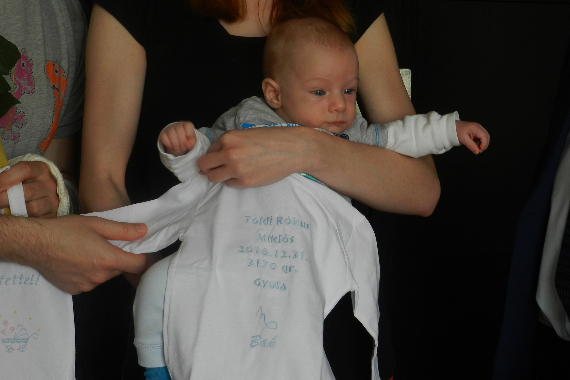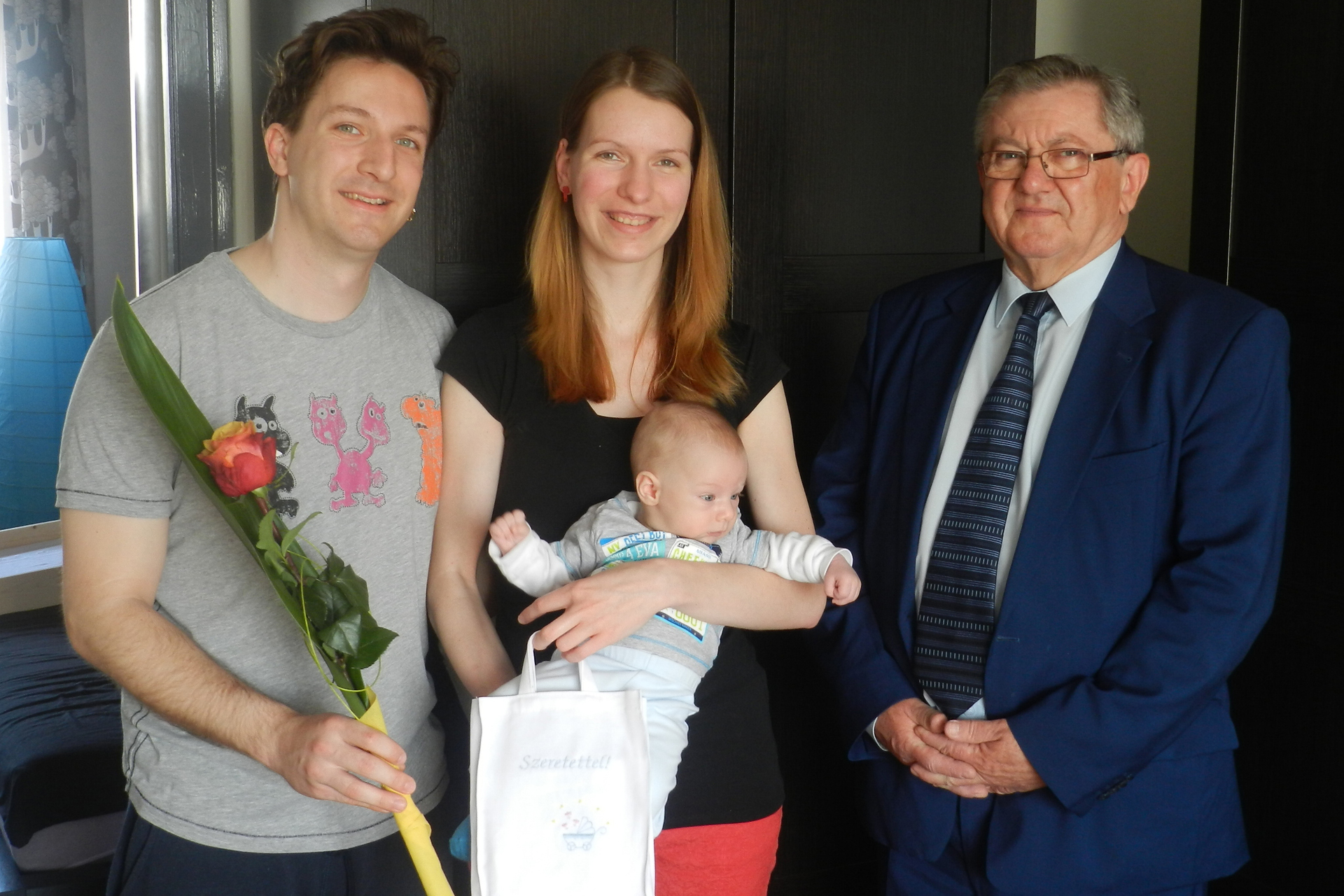 A gyermeket és édesanyját Galbács Mihály, a körzet képviselője köszöntötte. A szokásoknak megfelelően egy csokor virág, egy Póka György-festmény, valamint egy kisruha volt az ajándékcsomagban, amelyen szerepelnek a kisfiúk adatai.