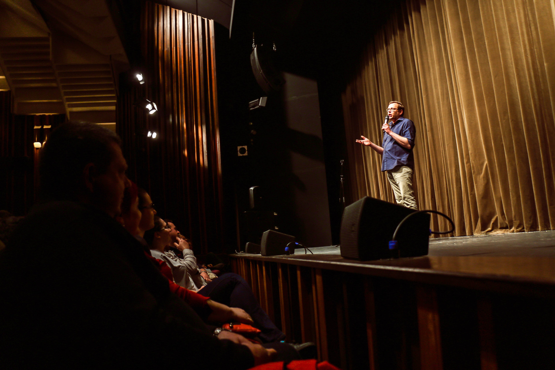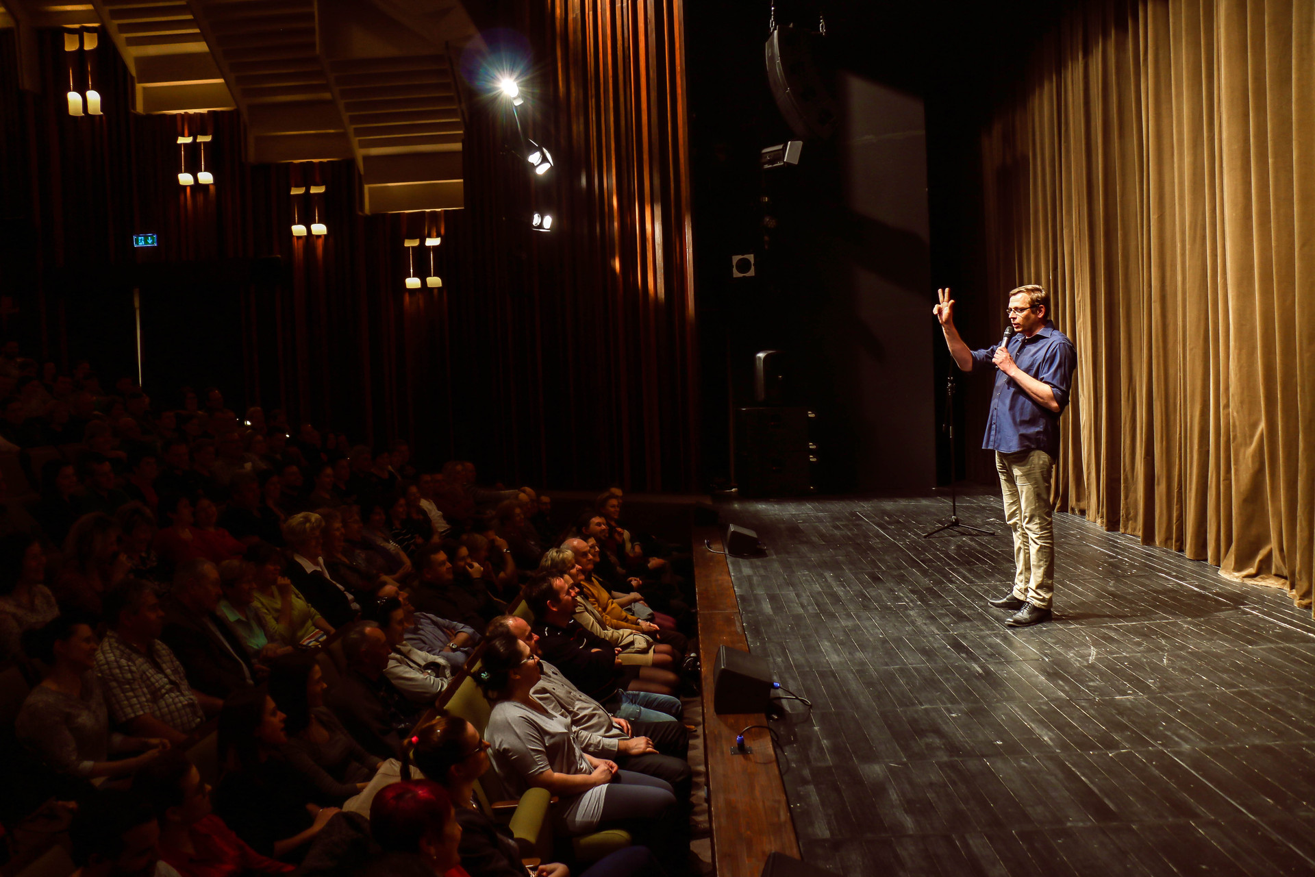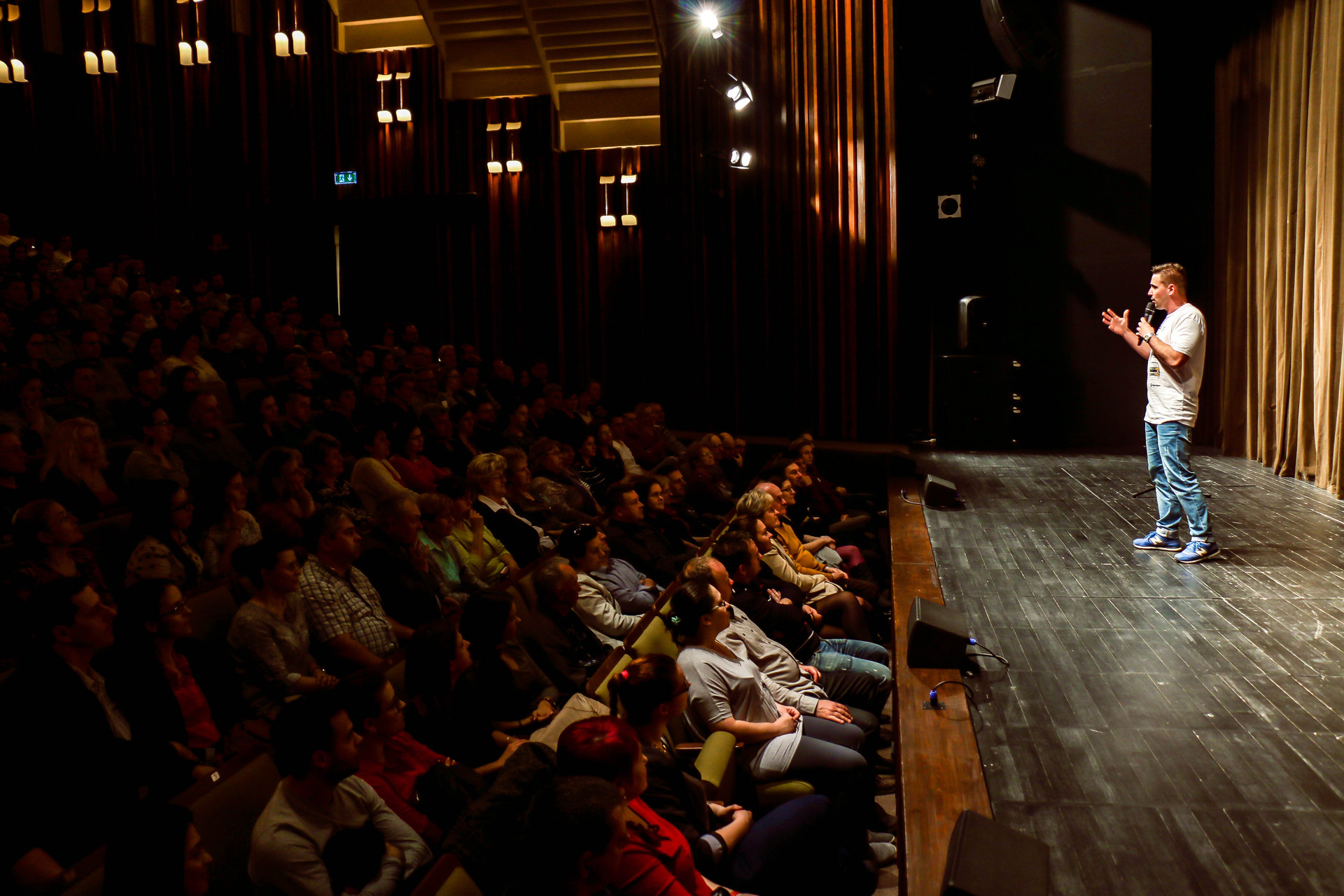 A terem zsúfolásig megtelt az előadás alkalmából, de a legjobban azt a 3-4 úriembert irigyeltem, akik minden bizonnyal az összes Dumaszínházas történetet ismerik már, másképpen nehezen tudom elképzelni, miért lett volna érdekesebb telefonjaik nyomkodása. Sajnálom, hogy végül nem kínáltak meg a ropijukból, mert gondolom, a figyelemfelhívás volt a céljuk azzal, hogy 20 percen át csörgették a zacskókat.