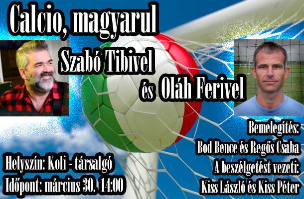 Az interaktívra tervezett egyórás beszélgetést a gimnázium két diákjának (Bod Bence, Regős Csaba) előadása vezeti be, hogy aztán a futballdélután két vendége, a Várfürdő-Gyulai Termál FC vezetőedzője, Oláh Ferenc és a Magna Cum Laude gitáros-dalszerzője, Szabó Tibor vegye át a szót, valljon arról, mit jelent számára a foci, és főleg az olasz foci, s várhatóan lendületes szópárbajban eldöntse, melyik csapat a király Itáliában, a Juventus vagy az AS Roma. (Esetleg egy harmadik.)